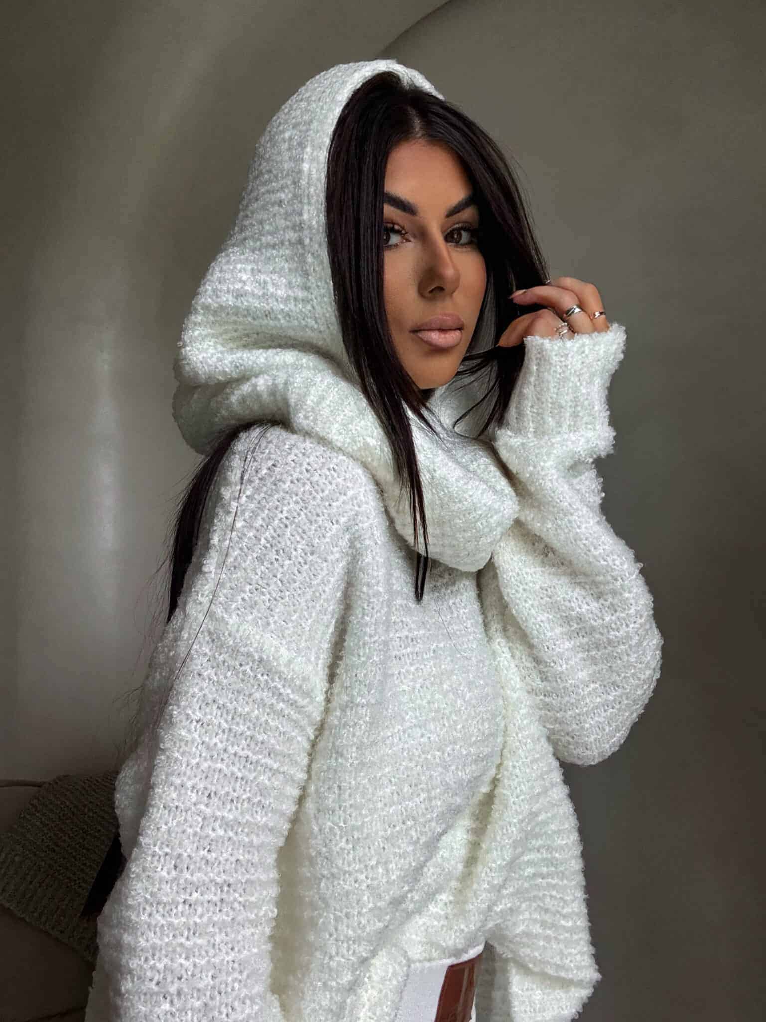 Wełniana, bezszwowa balaclava o prążkowanym splocie. Połączenie elegancji i komfortu, które idealnie wpisuje się w zimowe stylizacje.