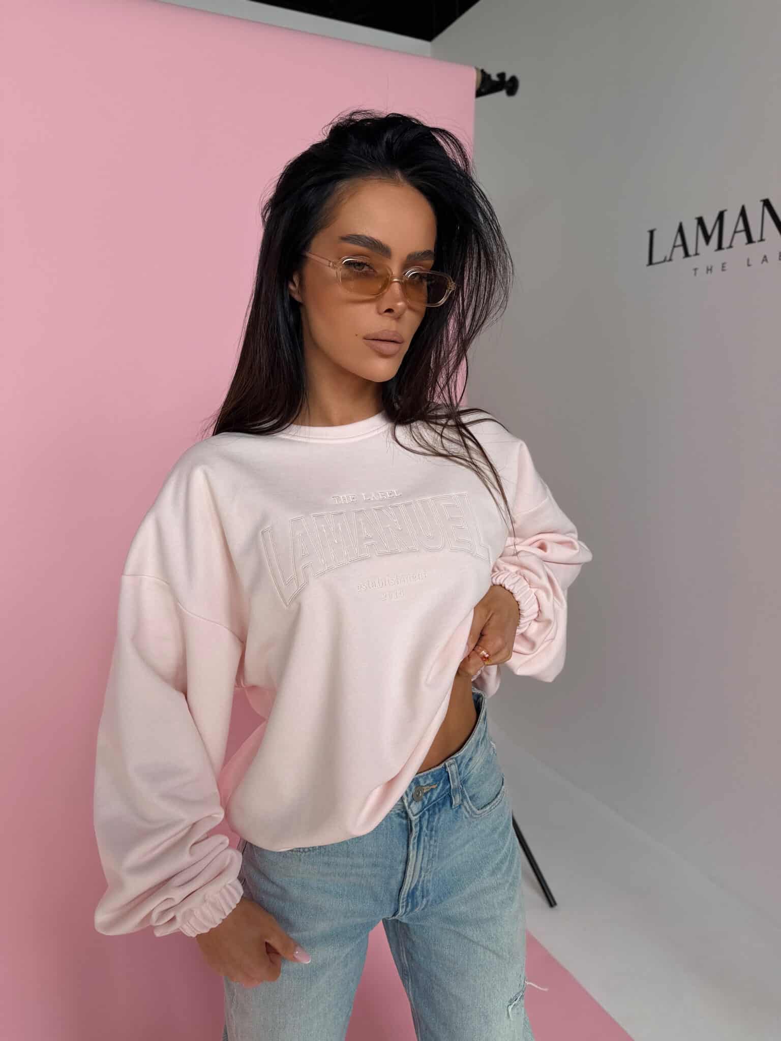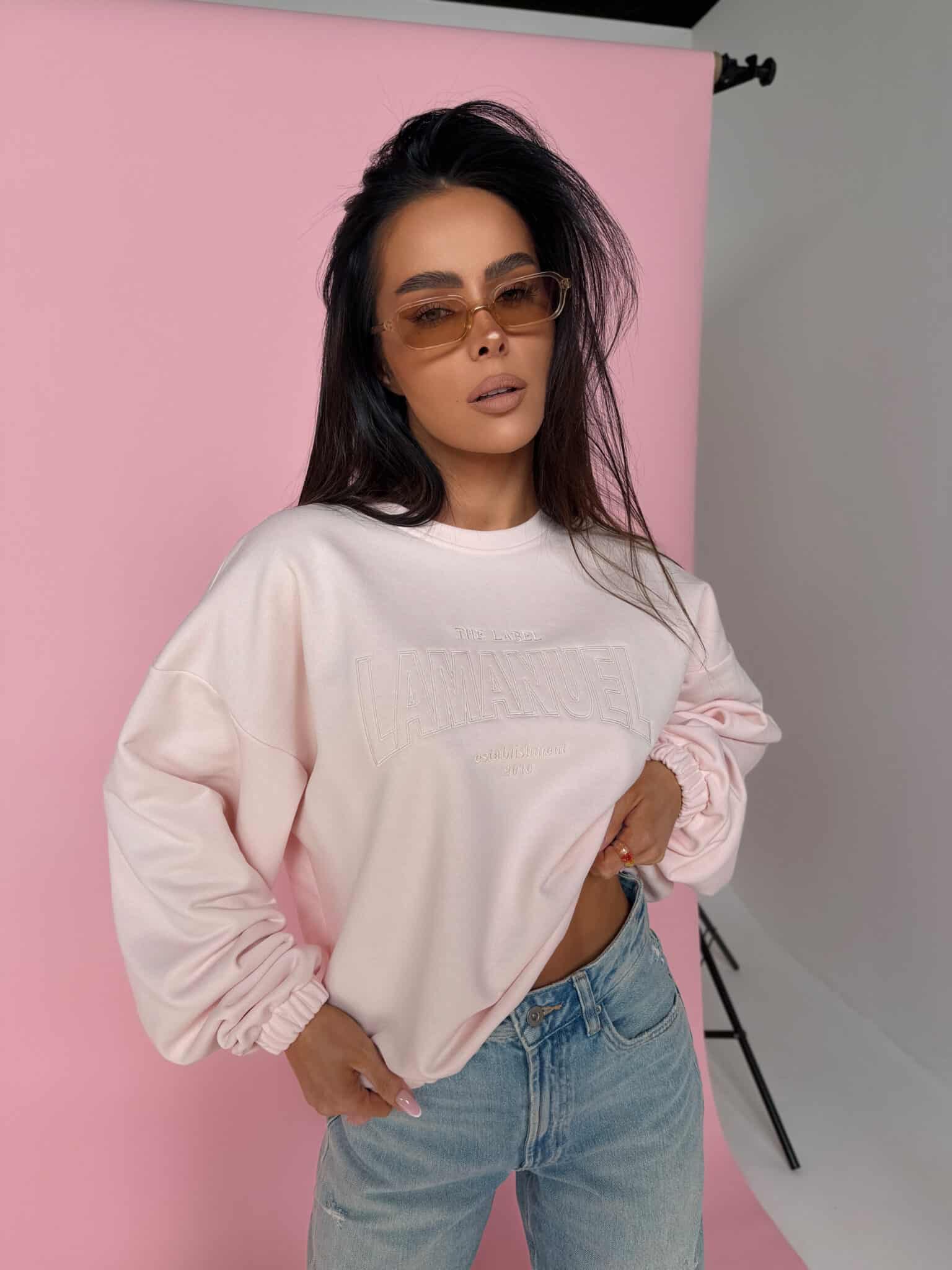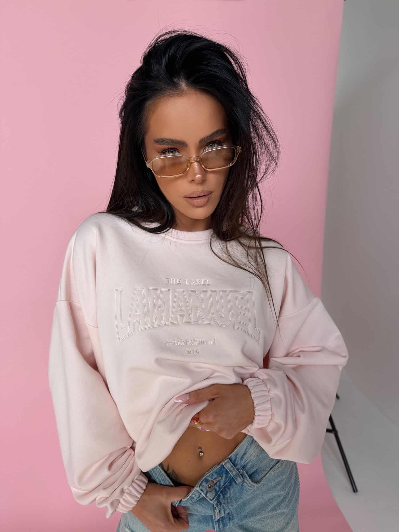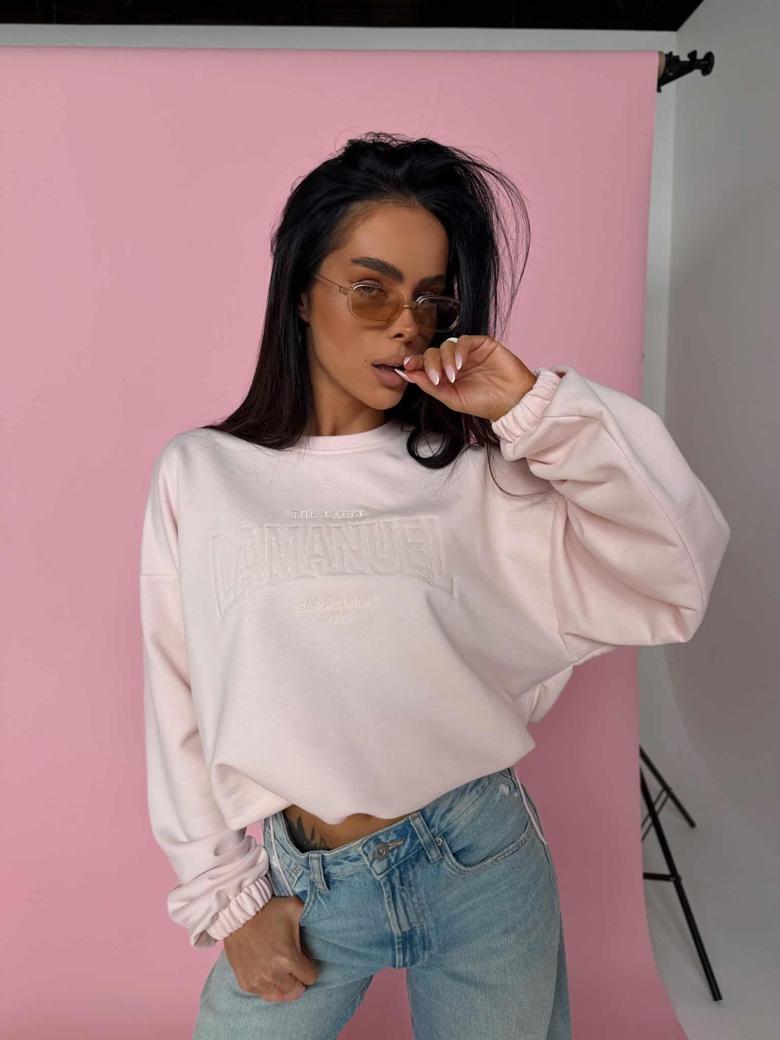 Bluza o dłuższym kroju z elastycznym ściągaczem u dołu, który pozwala regulować fason i podkreślić sylwetkę. Model z obniżoną linią ramion i luźniejszym rękawem zakończonym gumką. Na przodzie wyraźne, tłoczone logo nadające charakteru. Nowoczesna, wygodna forma idealna do codziennych stylizacji.Skład: 90% bawełna 10% poliester