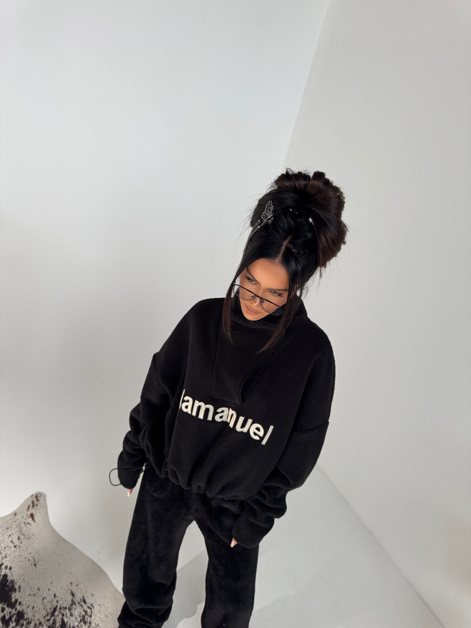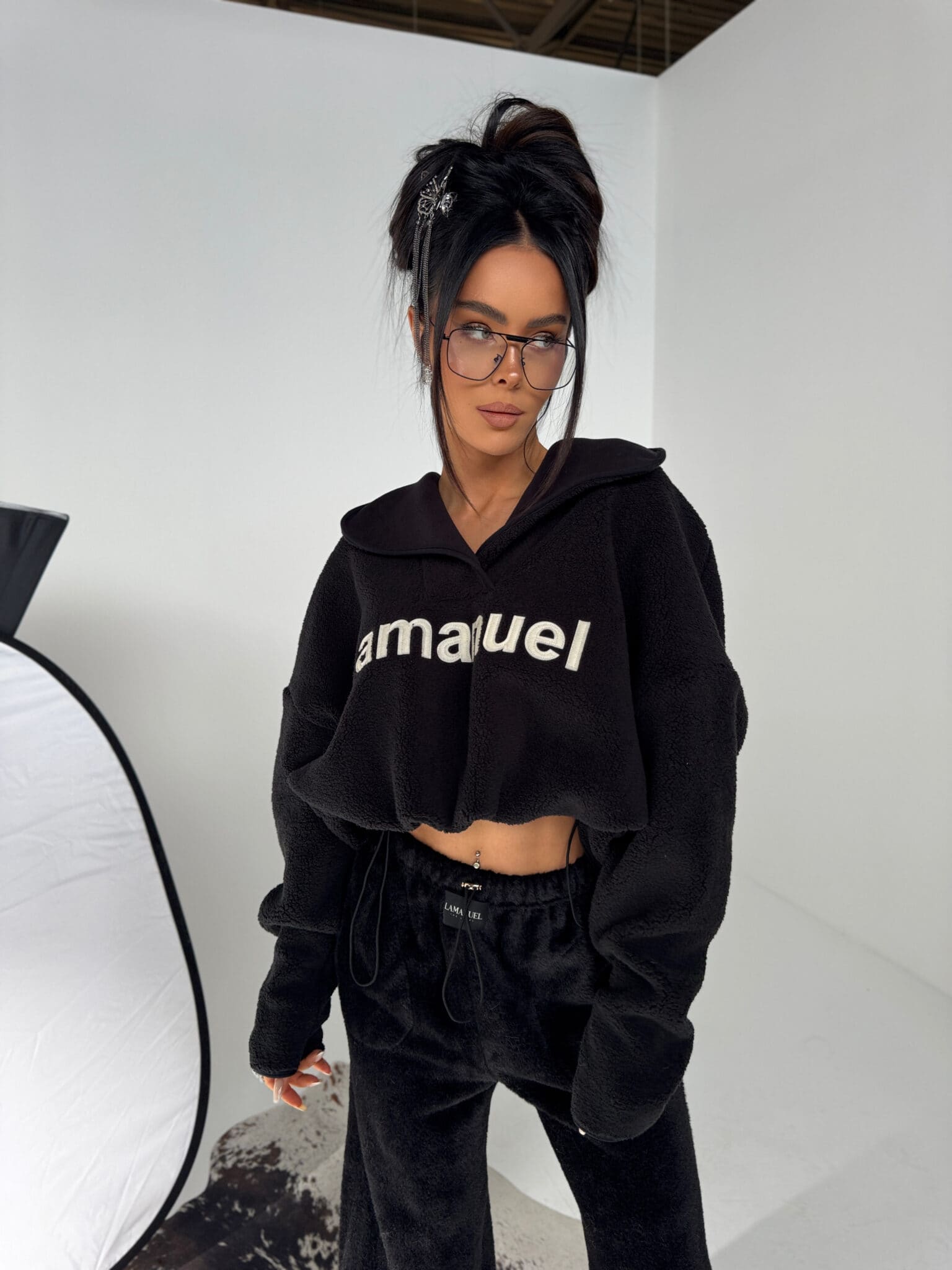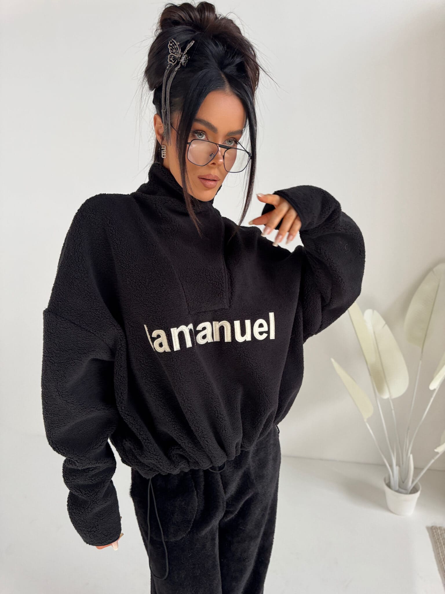 Miękka jak chmurka, ciepła jak koc i stylowa jak streetwear prosto z zimowego kurortu. Oversize’owa bluza z polarowego materiału, który nie tylko grzeje, ale też robi efekt wow dzięki wyrazistemu haftowi z logo La Manuel z przodu. Wysoka stójka z asymetrycznym zamkiem podkręca całość i nadaje modowego twistu w stylu après-ski. To bluza, którą założysz po całym dniu na stoku, na spacer po mroźnym mieście albo po prostu wtedy, gdy chcesz wyglądać świetnie i czuć się jeszcze lepiej. Świetnie gra z legginsami, puchówką, moonbootami albo klasycznymi dresami. Komfort, ciepło i styl w jednym — must-have sezonu zimowego.Skład: 95% poliester 5% elastan