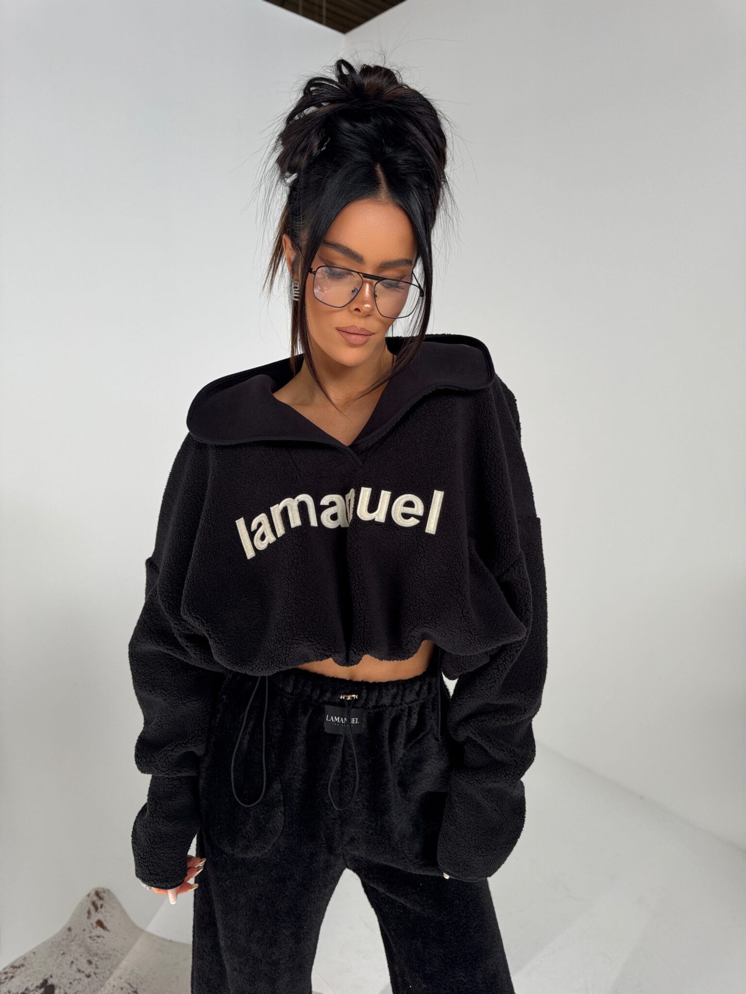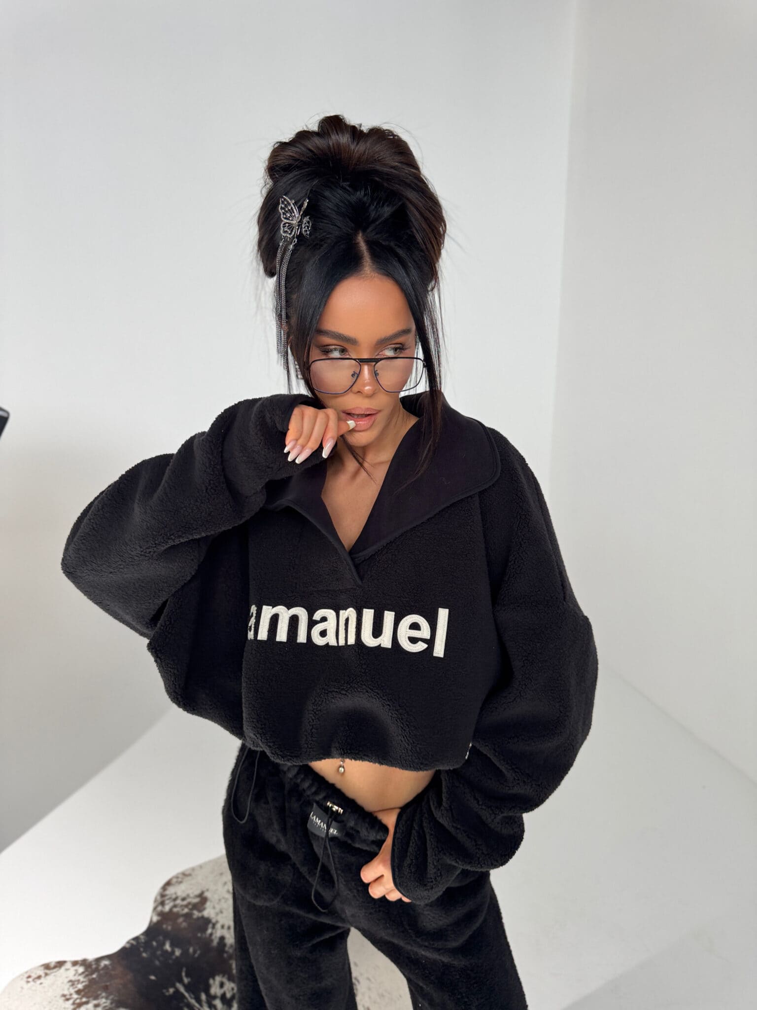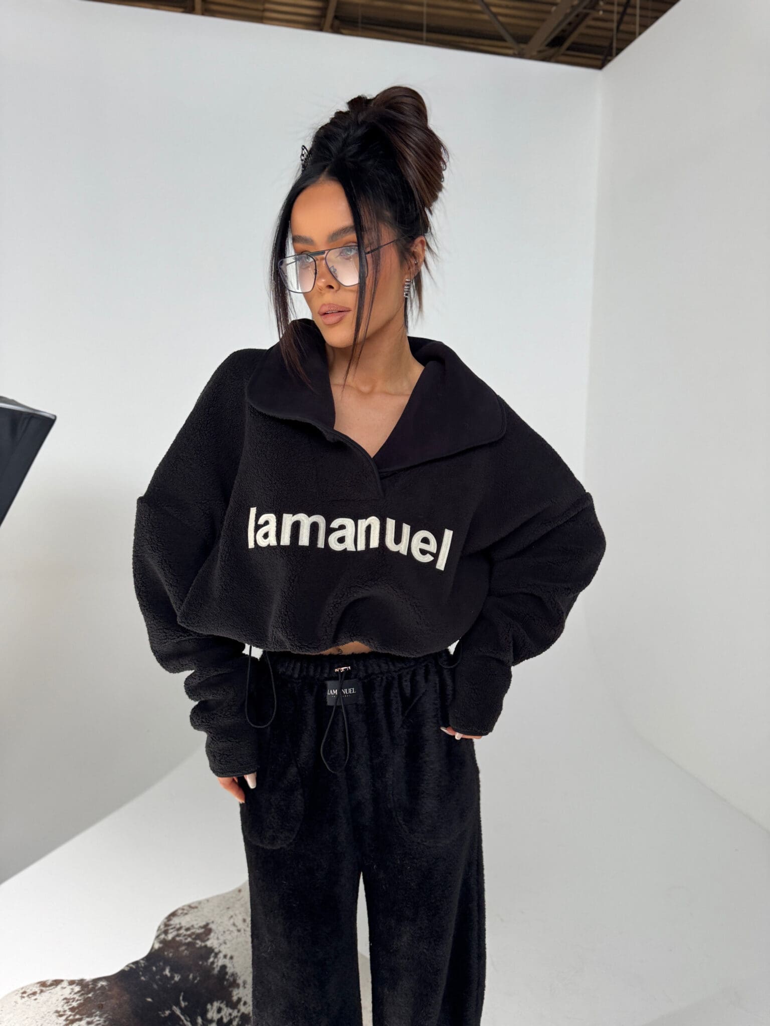 Miękka jak chmurka, ciepła jak koc i stylowa jak streetwear prosto z zimowego kurortu. Oversize’owa bluza z polarowego materiału, który nie tylko grzeje, ale też robi efekt wow dzięki wyrazistemu haftowi z logo La Manuel z przodu. Wysoka stójka z asymetrycznym zamkiem podkręca całość i nadaje modowego twistu w stylu après-ski. To bluza, którą założysz po całym dniu na stoku, na spacer po mroźnym mieście albo po prostu wtedy, gdy chcesz wyglądać świetnie i czuć się jeszcze lepiej. Świetnie gra z legginsami, puchówką, moonbootami albo klasycznymi dresami. Komfort, ciepło i styl w jednym — must-have sezonu zimowego.Skład: 95% poliester 5% elastan