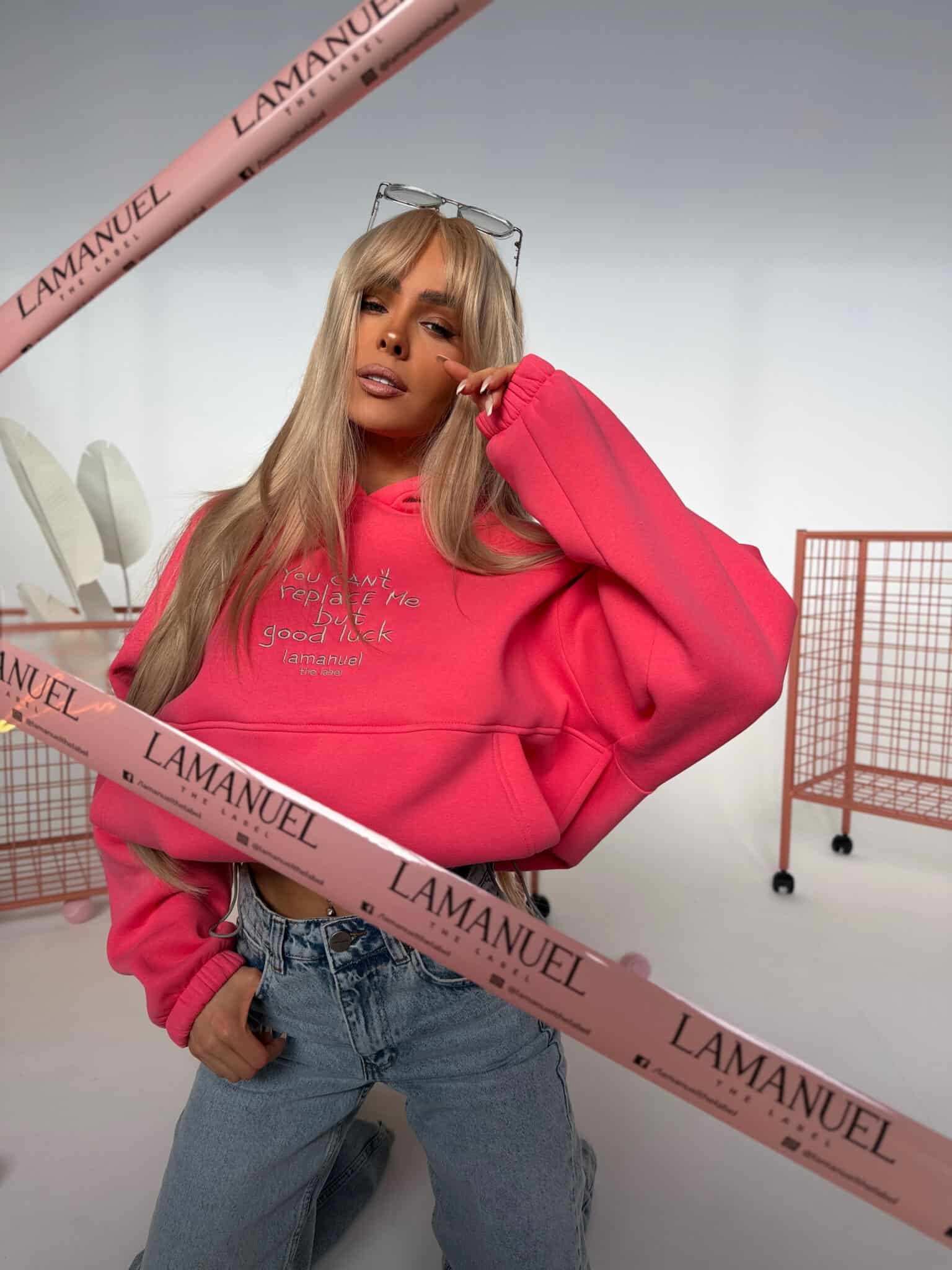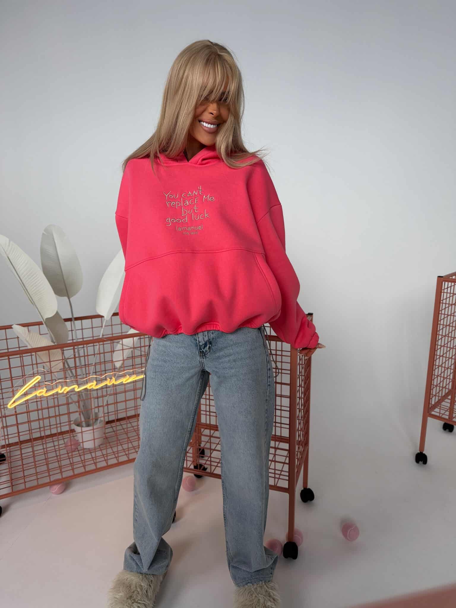 Bluza z haftem, regulacją i nietypową kieszeniąGrubsza dzianina drapana – miękka, puszysta od spodu, trzymająca formę. Krój oversize z szerokim rękawem i dużym kapturem. Haft z przodu z przekazem, który nie wymaga tłumaczenia. Kieszeń typu kangurka – wszyta niestandardowo, schowana, z czystą linią. Dół bluzy regulowany – możesz nosić ją krócej, z efektem bombki, albo opuścić niżej i puścić luzem. Jeden fason, dwa zupełnie różne efekty.Skład: 90% bawełna 10% poliester