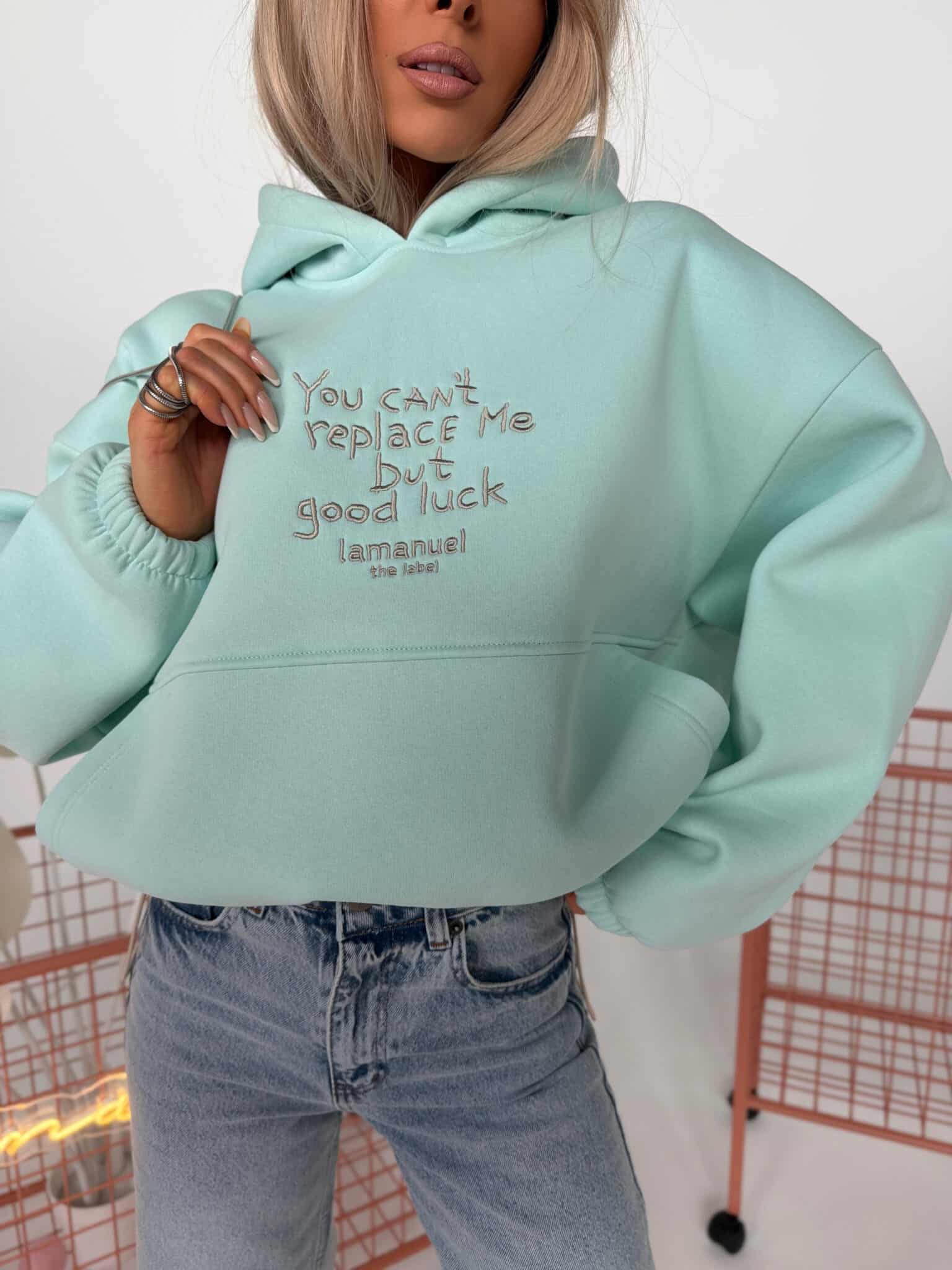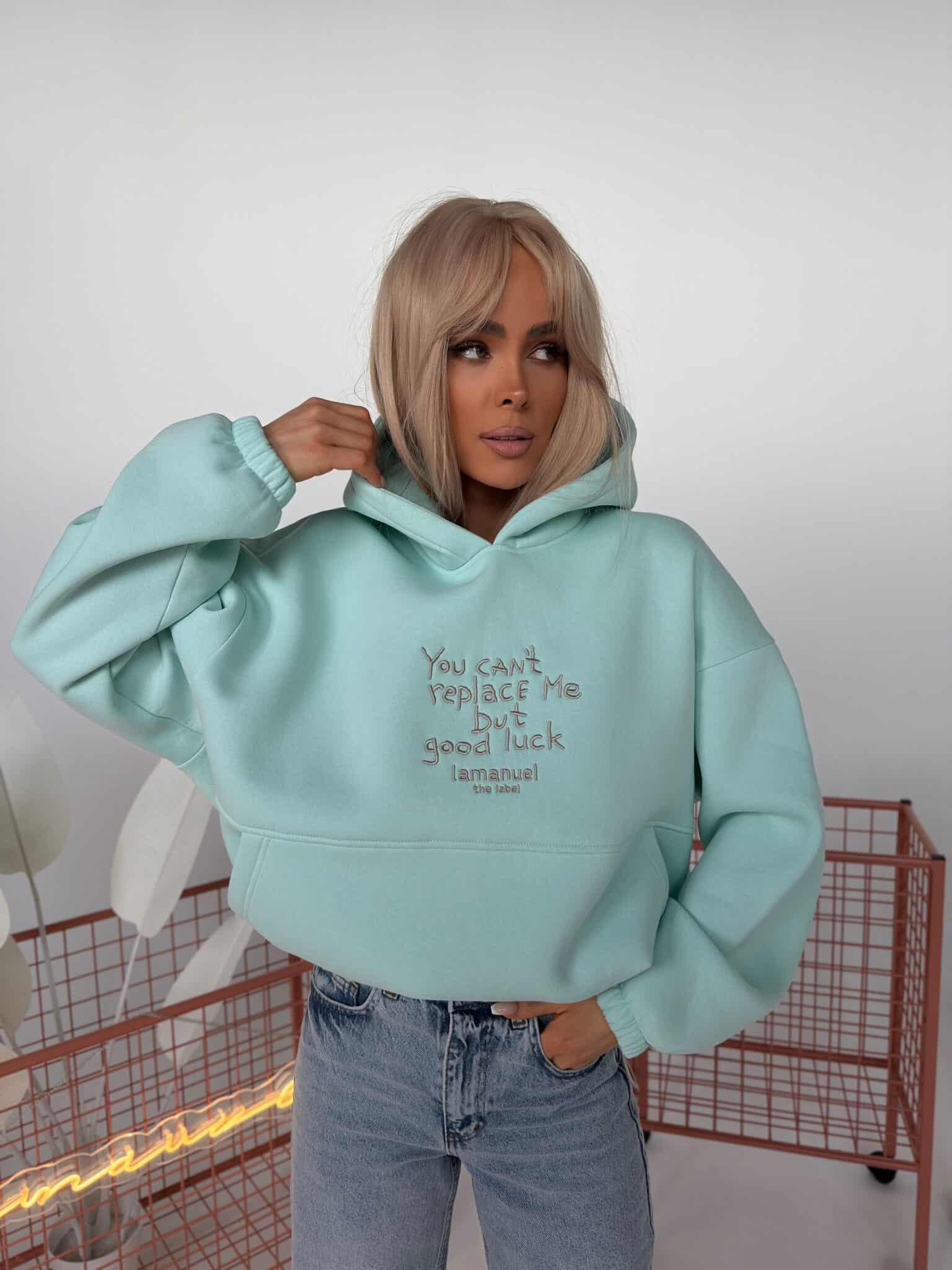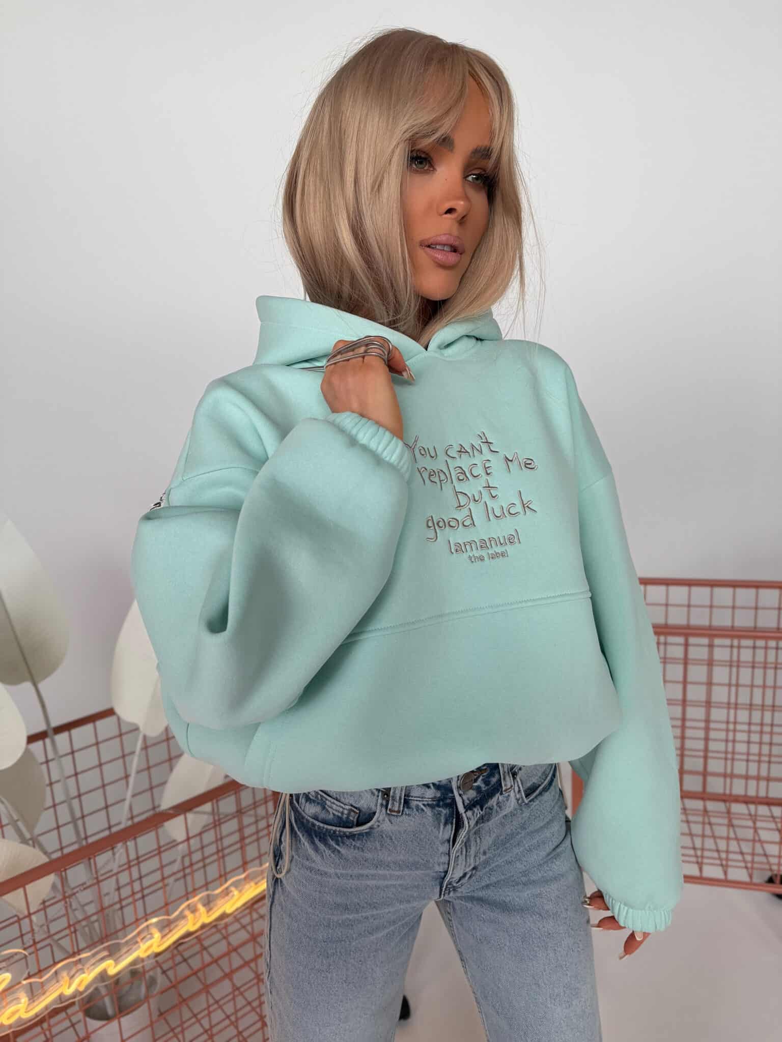Bluza z haftem, regulacją i nietypową kieszeniąKOLOR LIMITOWANY!!!Grubsza dzianina drapana – miękka, puszysta od spodu, trzymająca formę. Krój oversize z szerokim rękawem i dużym kapturem. Haft z przodu z przekazem, który nie wymaga tłumaczenia. Kieszeń typu kangurka – wszyta niestandardowo, schowana, z czystą linią. Dół bluzy regulowany – możesz nosić ją krócej, z efektem bombki, albo opuścić niżej i puścić luzem. Jeden fason, dwa zupełnie różne efekty.Skład: 90% bawełna 10% poliester