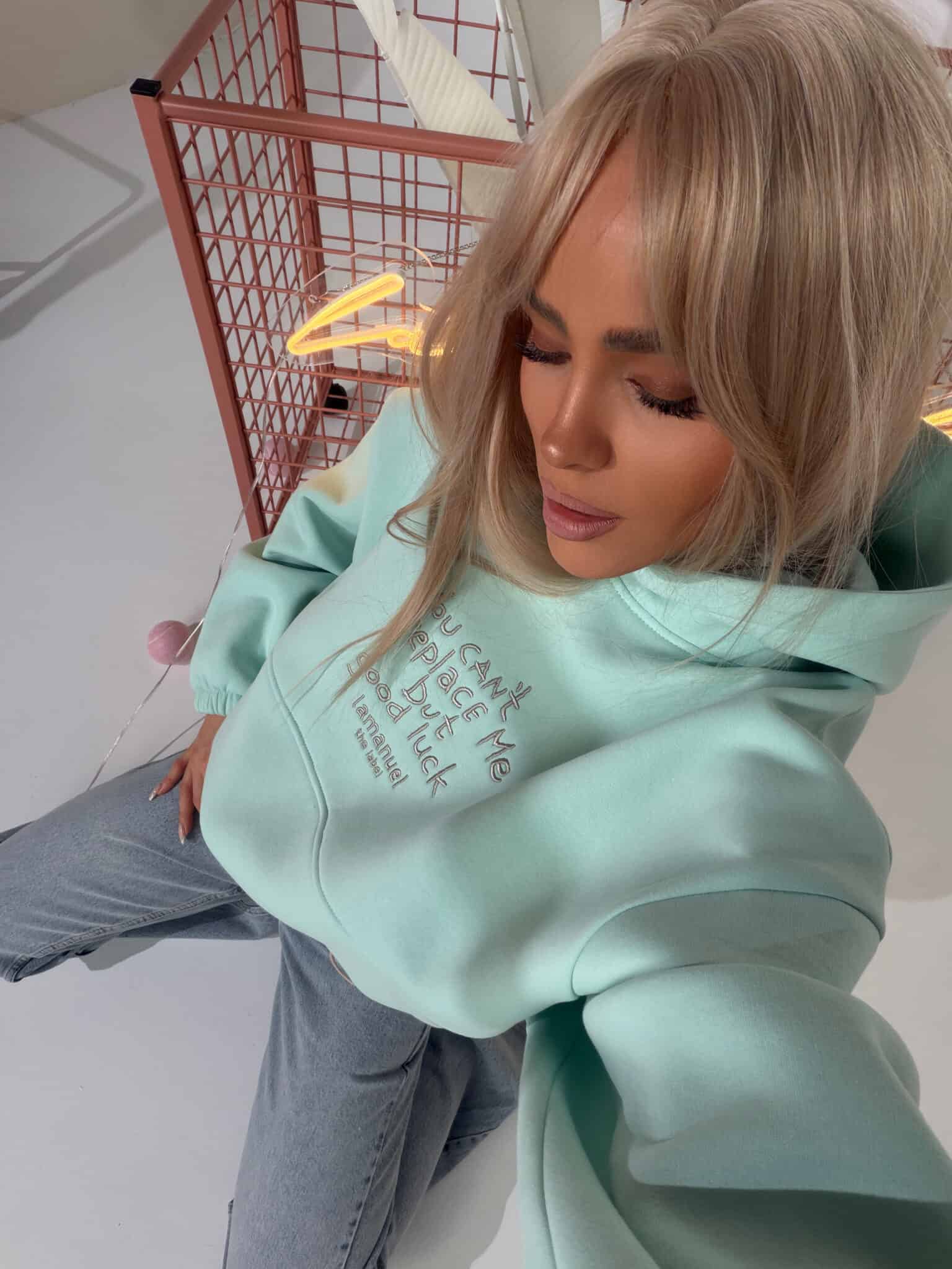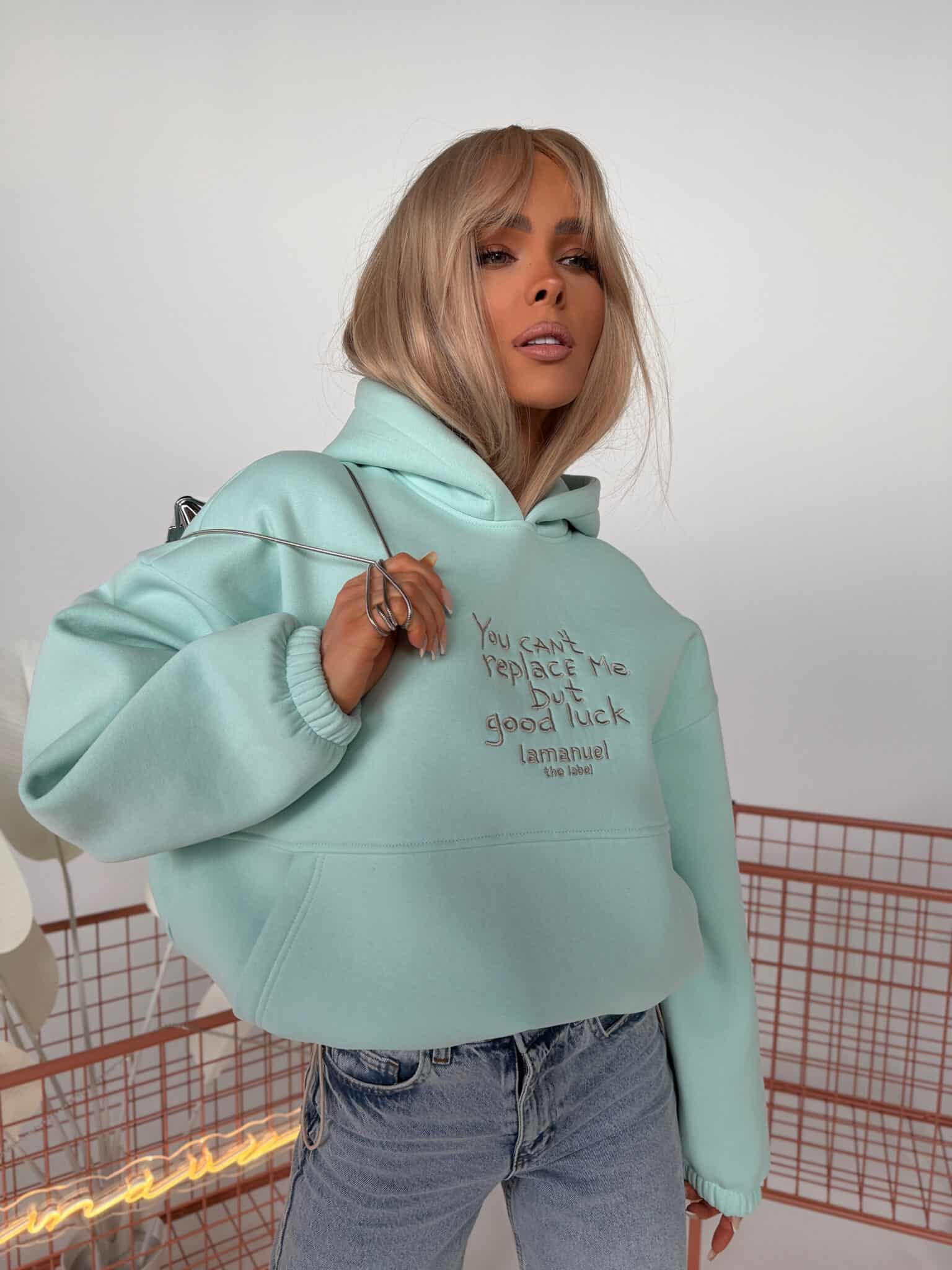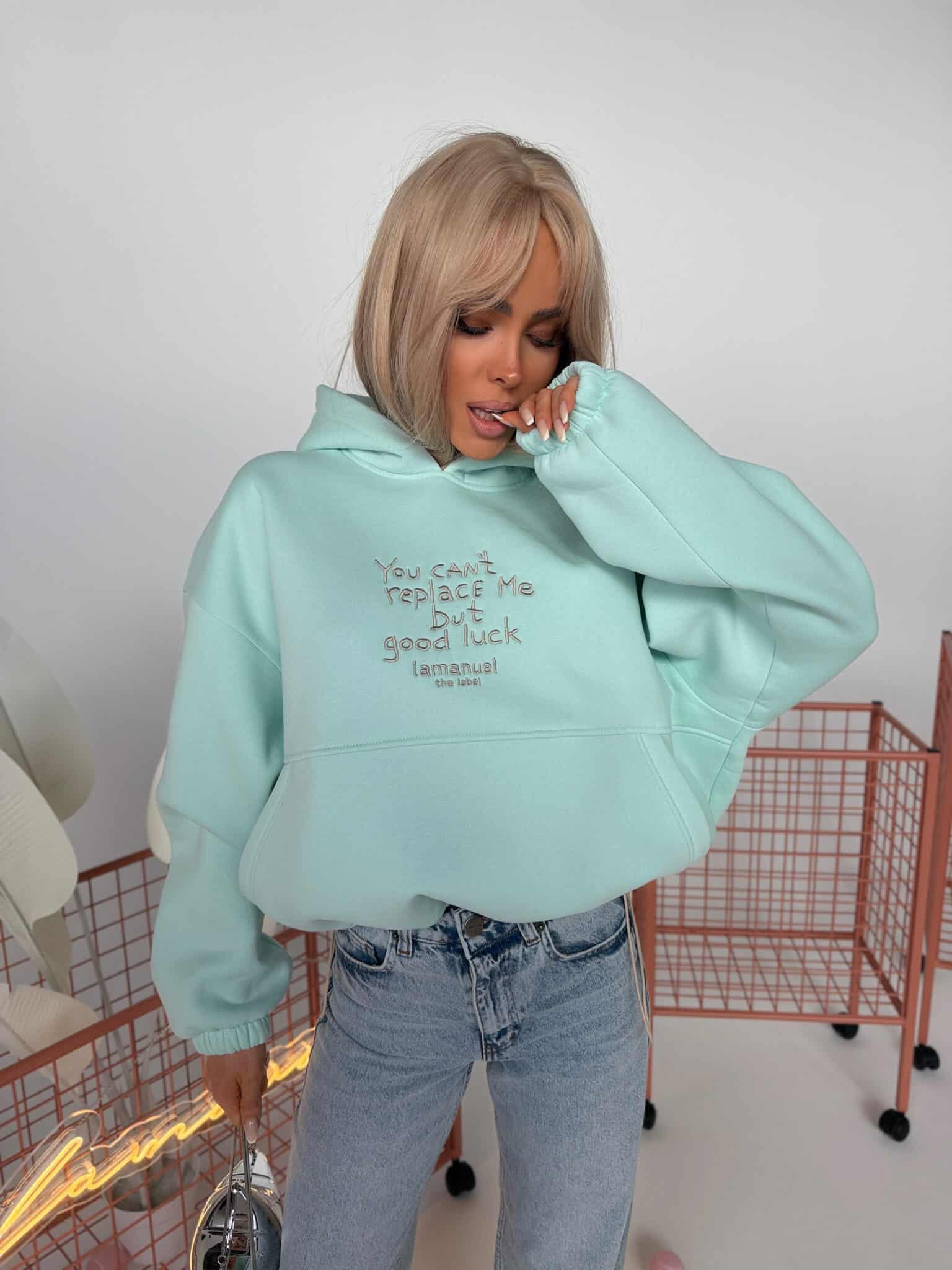 Bluza z haftem, regulacją i nietypową kieszeniąKOLOR LIMITOWANY!!!Grubsza dzianina drapana – miękka, puszysta od spodu, trzymająca formę. Krój oversize z szerokim rękawem i dużym kapturem. Haft z przodu z przekazem, który nie wymaga tłumaczenia. Kieszeń typu kangurka – wszyta niestandardowo, schowana, z czystą linią. Dół bluzy regulowany – możesz nosić ją krócej, z efektem bombki, albo opuścić niżej i puścić luzem. Jeden fason, dwa zupełnie różne efekty.Skład: 90% bawełna 10% poliester