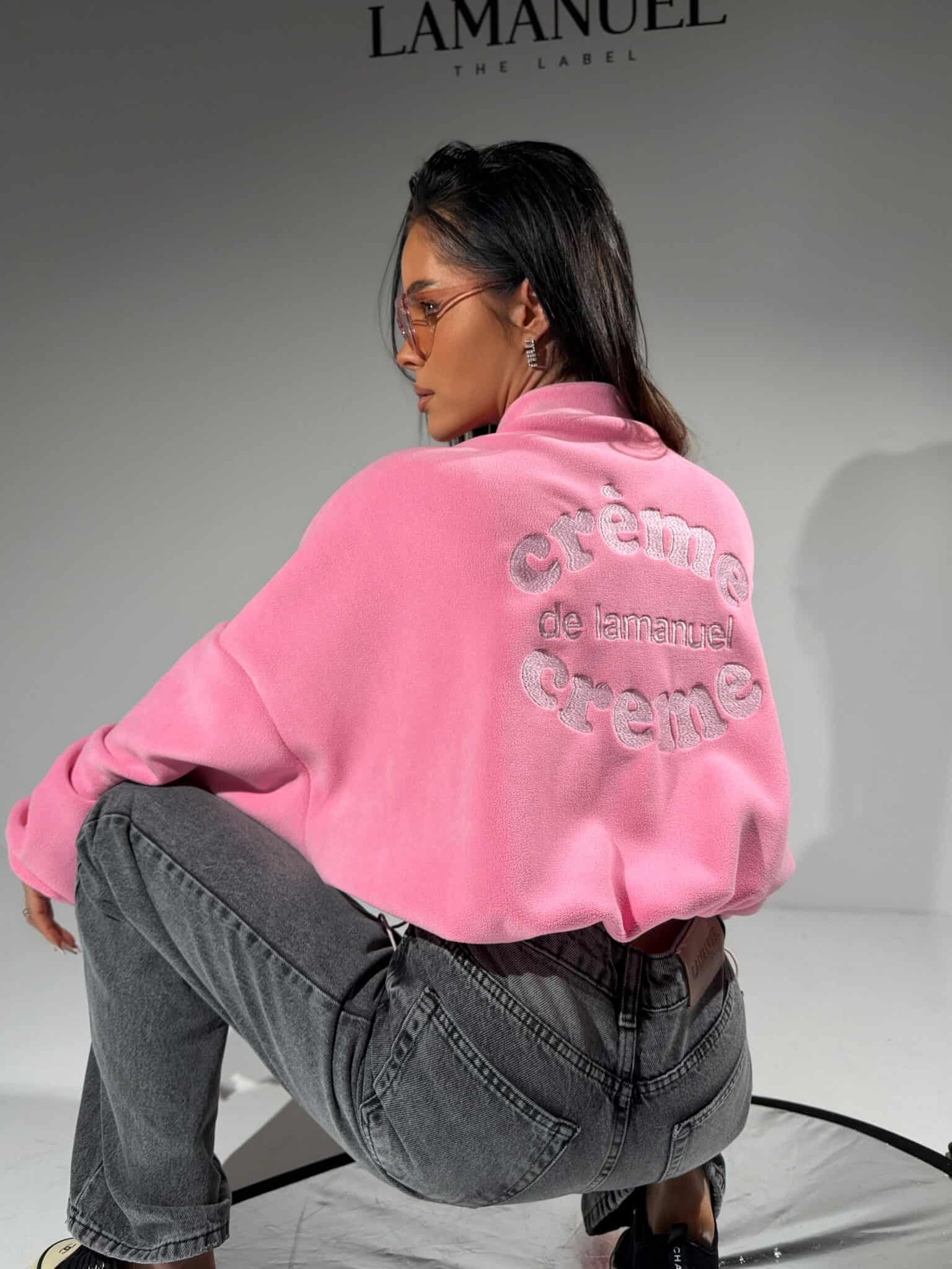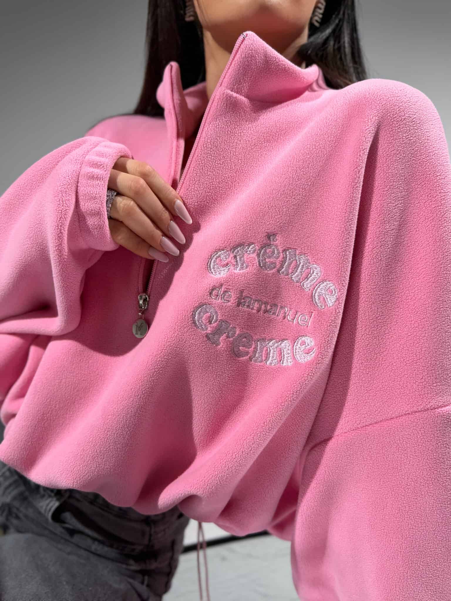 Nasz bestsellerowy krój powraca w nowej odsłonie – tym razem z haftowanym hasłem crème de lamanuel crème, które mówi samo za siebie. Polarowa bluza o oversize’owym kroju z półgolfem i krótkim suwakiem to kwintesencja luzu z paryskim twistem. Miękka, puszysta struktura materiału daje uczucie komfortu i otulenia, a regulowany dół pozwala dopasować fason do sylwetki – noś luźno albo ściągnij dla efektu crop. Ikoniczna, rozpoznawalna, wygodna – nie tylko dla fanek marki, ale dla wszystkich, które wiedzą, że less is more, a styl tkwi w detalach.Skład: 95% poliester 5% elastan