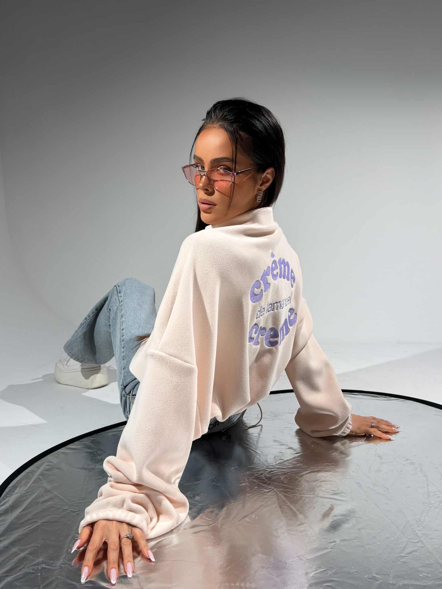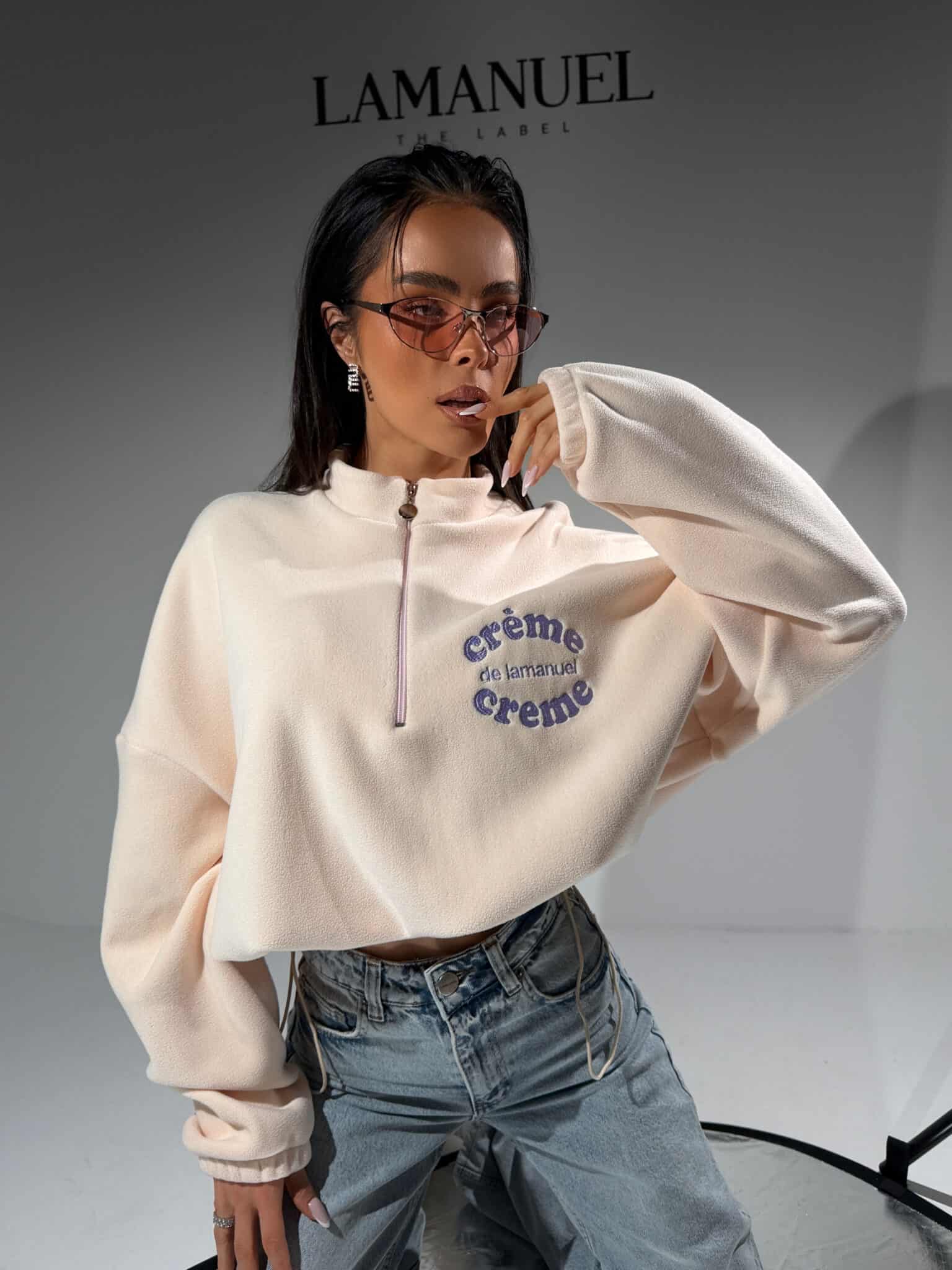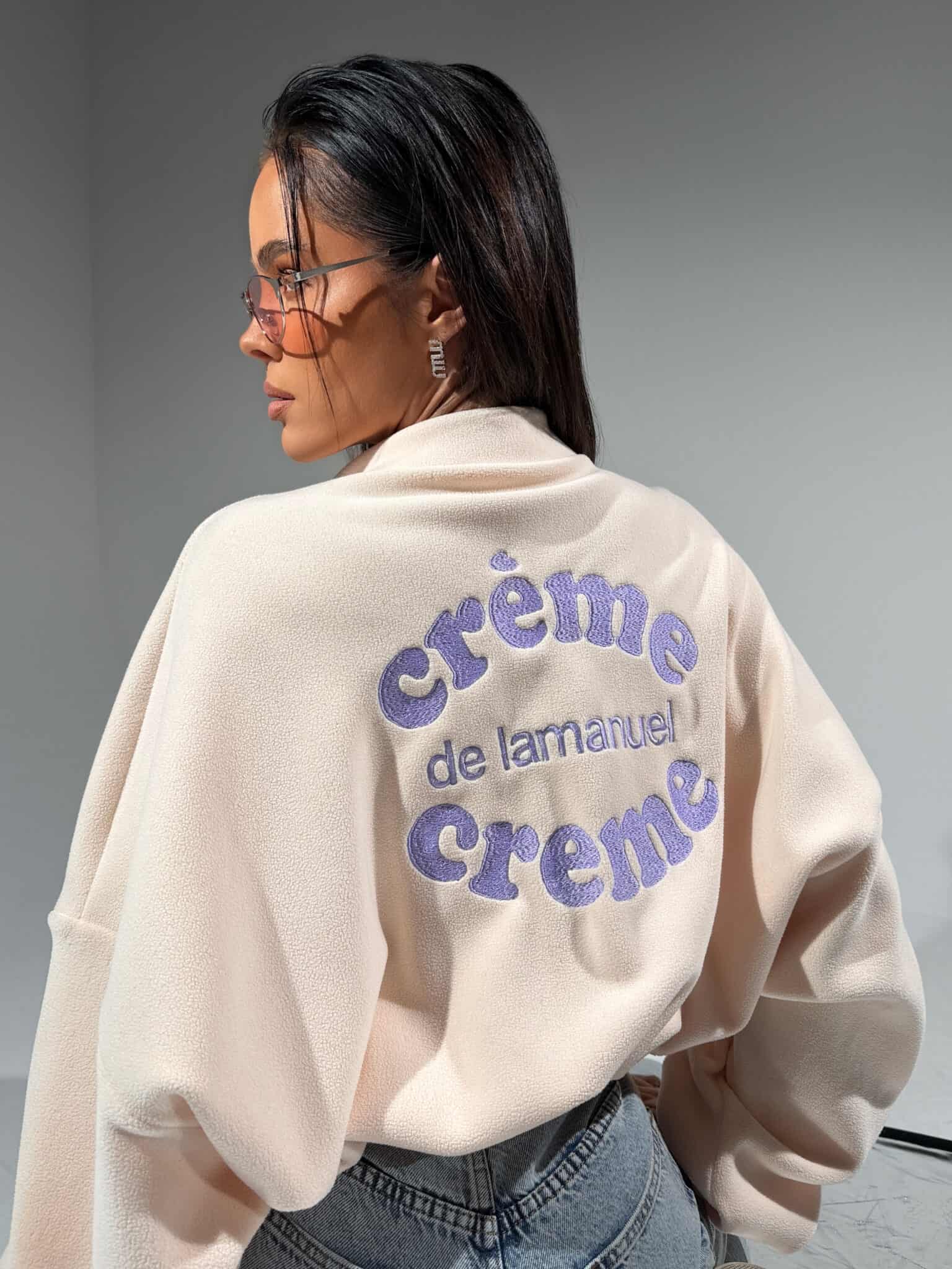 Nasz bestsellerowy krój powraca w nowej odsłonie – tym razem z haftowanym hasłem crème de lamanuel crème, które mówi samo za siebie. Polarowa bluza o oversize’owym kroju z półgolfem i krótkim suwakiem to kwintesencja luzu z paryskim twistem. Miękka, puszysta struktura materiału daje uczucie komfortu i otulenia, a regulowany dół pozwala dopasować fason do sylwetki – noś luźno albo ściągnij dla efektu crop. Ikoniczna, rozpoznawalna, wygodna – nie tylko dla fanek marki, ale dla wszystkich, które wiedzą, że less is more, a styl tkwi w detalach.Skład: 95% poliester 5% elastan