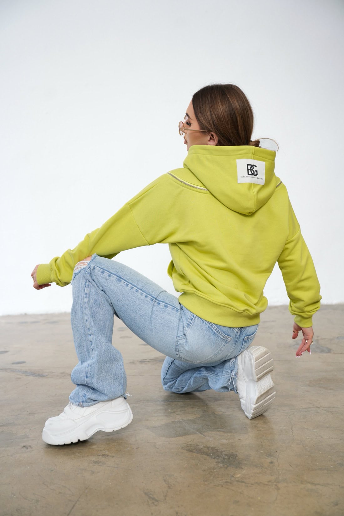 Opis produktu: Bluza damska BG BECKY z wysokiej jakości bawełny nieocieplanej. Bluza z kapturem z naszywką z logo marki BG Brandenburg Couture. Na plecach ozdobny suwak dwumaszynkowy z możliwością rozpięcia. Bluza wykończona ściągaczami.