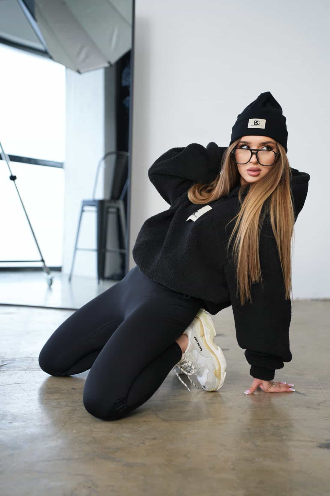 Opis produktu: Bluza damska BG WEST z miłego w dotyku polarowego misia. Bluza z kapturem, naszywka logowana marką BG na przodzie. Gumosznurek w dole do regulacji długości i szerokości bluzy. Model lekko oversize.