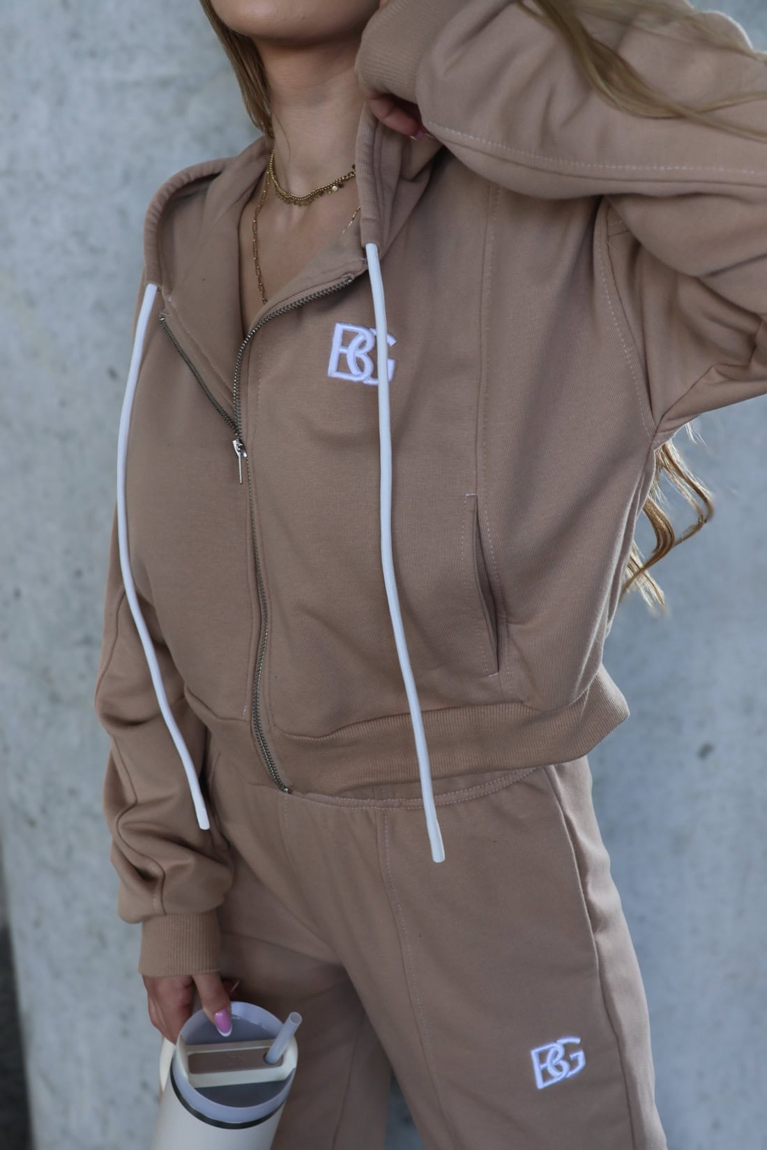 Opis produktu: Bluza damska BG WHITE z wysokiej jakości bawełny nieocieplanej. Bluza rozpinana z wyhaftowanym logo marki na piersi w kolorze białym. Bluza wykończona ściągaczami, zapinana na metalowy suwak. Posiada kieszenie oraz kaptur ze sznurkiem. Ozdobne białe przeszycia.