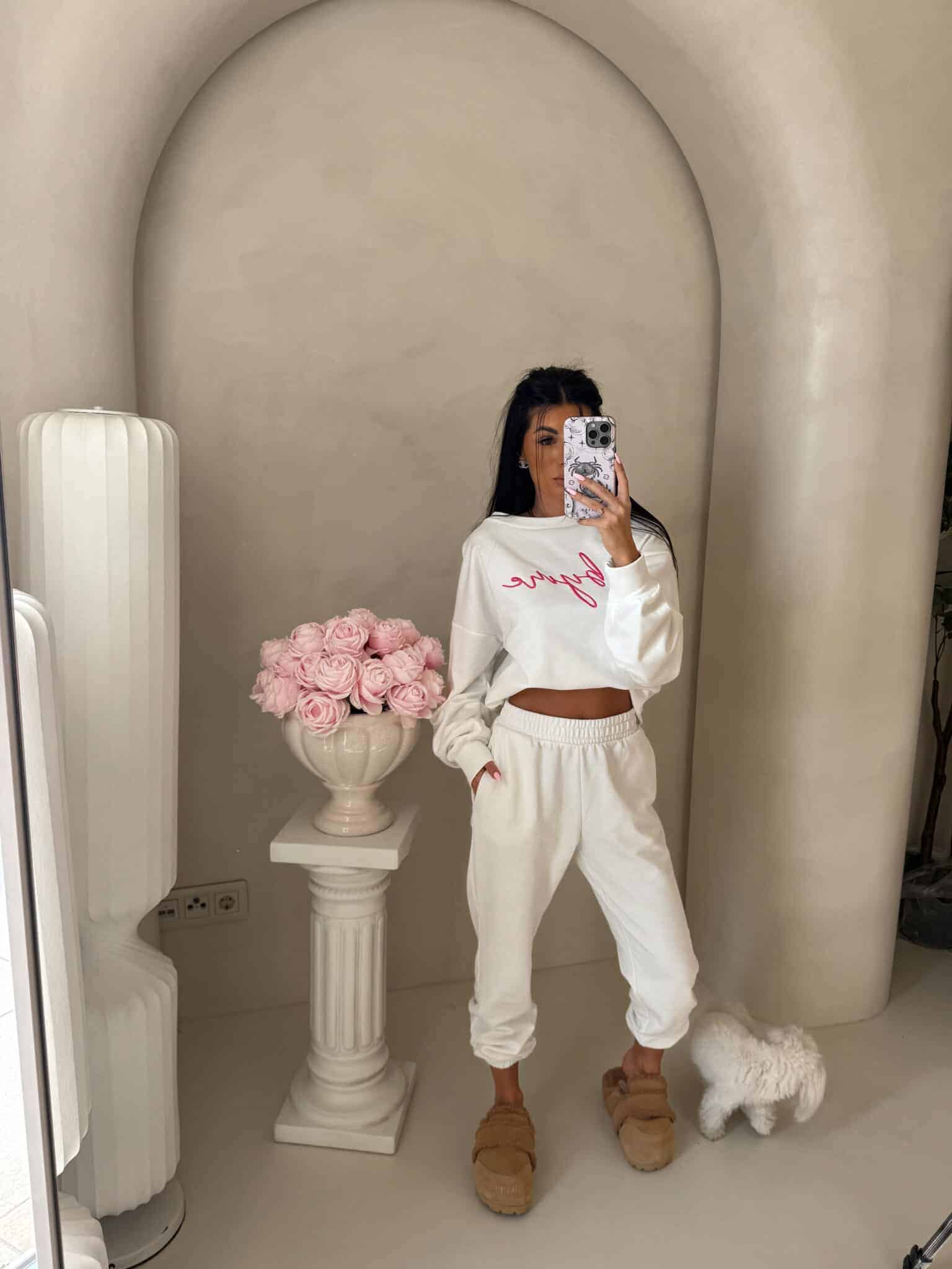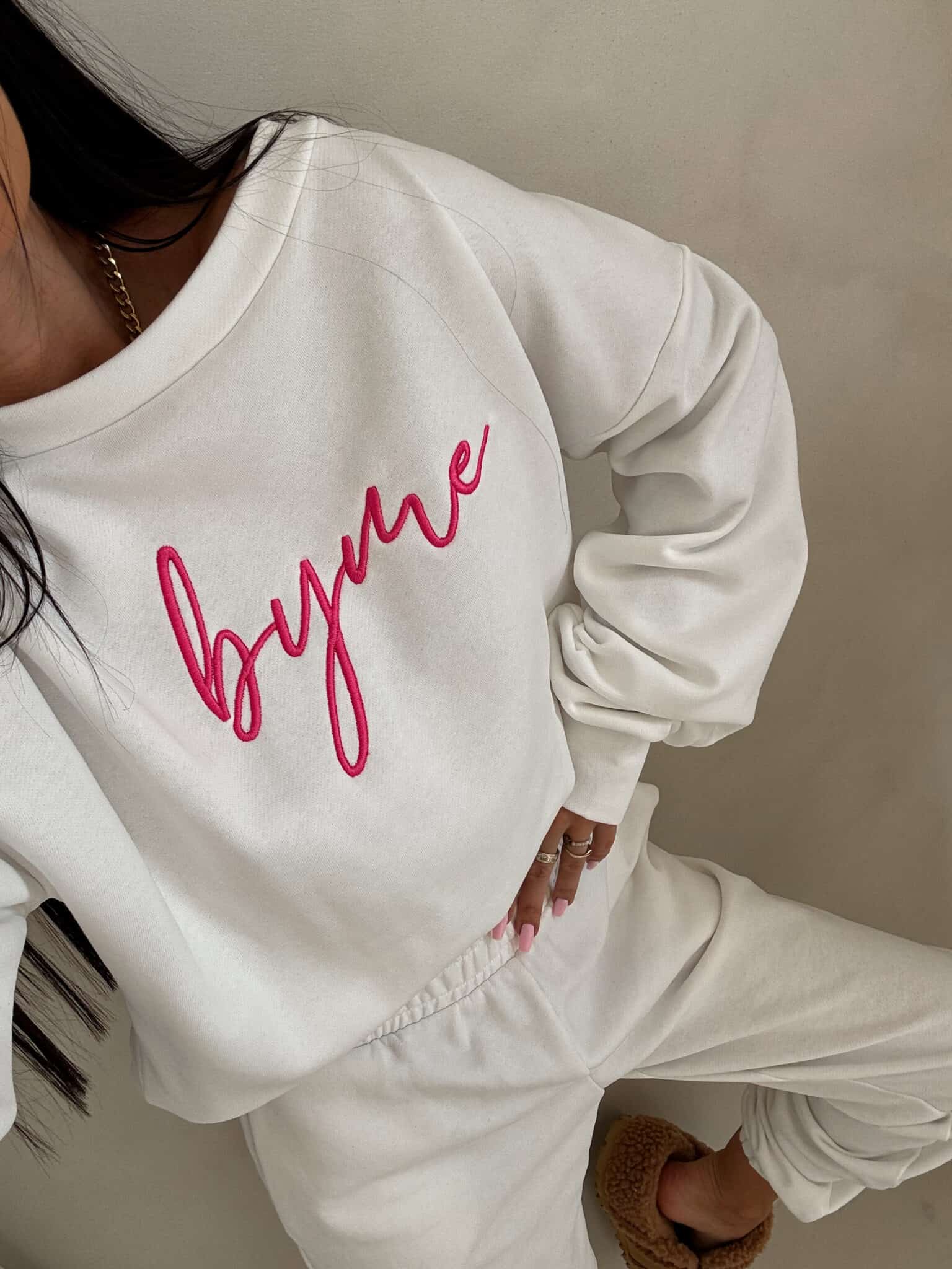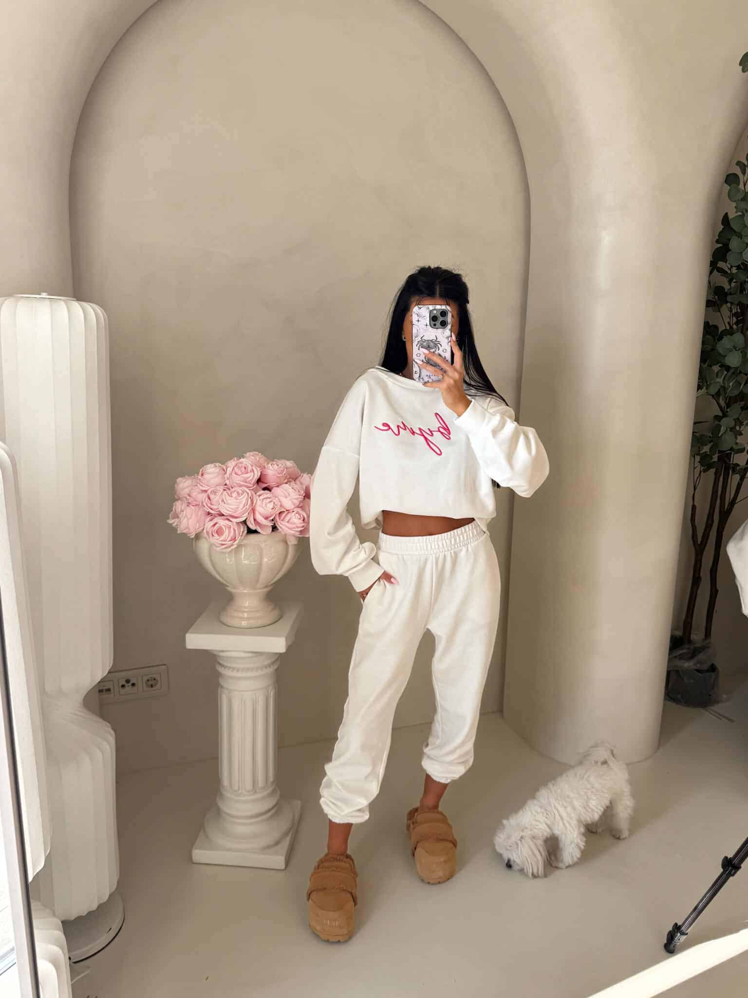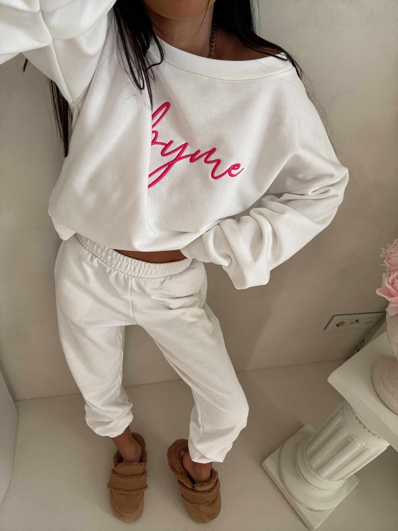 Bluza o prostym, luźnym kroju, z długim rękawem. Rękawy posiadają delikatne “szczypania”. Wkładana przez głowę. Na środku logowanie.