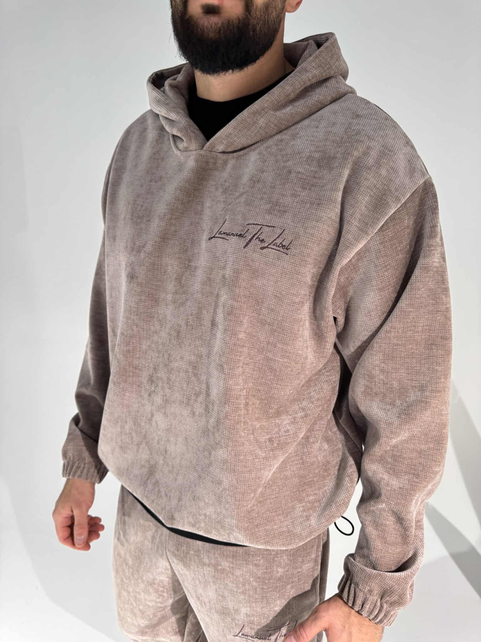 Welurowa bluza z kapturem, która pasuje do stylu après-ski, ale działa też w mieście. Miękka, ciepła, wygodna – zakładasz ją i czujesz, że jesteś dokładnie tam, gdzie powinieneś. Luźny krój, ściągacze, subtelny haft. Idealna po całym dniu na mrozie albo na spokojny wieczór z playlistą zimowych klimatów. Styl domowo-wyjazdowy z klasą.Skład: 95% poliester 5% elastan