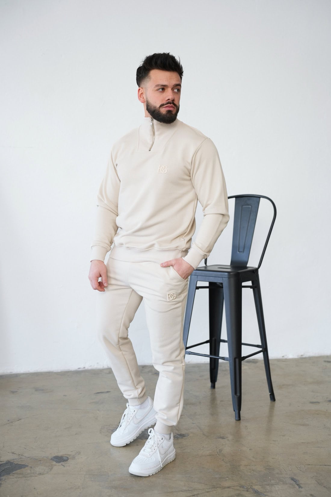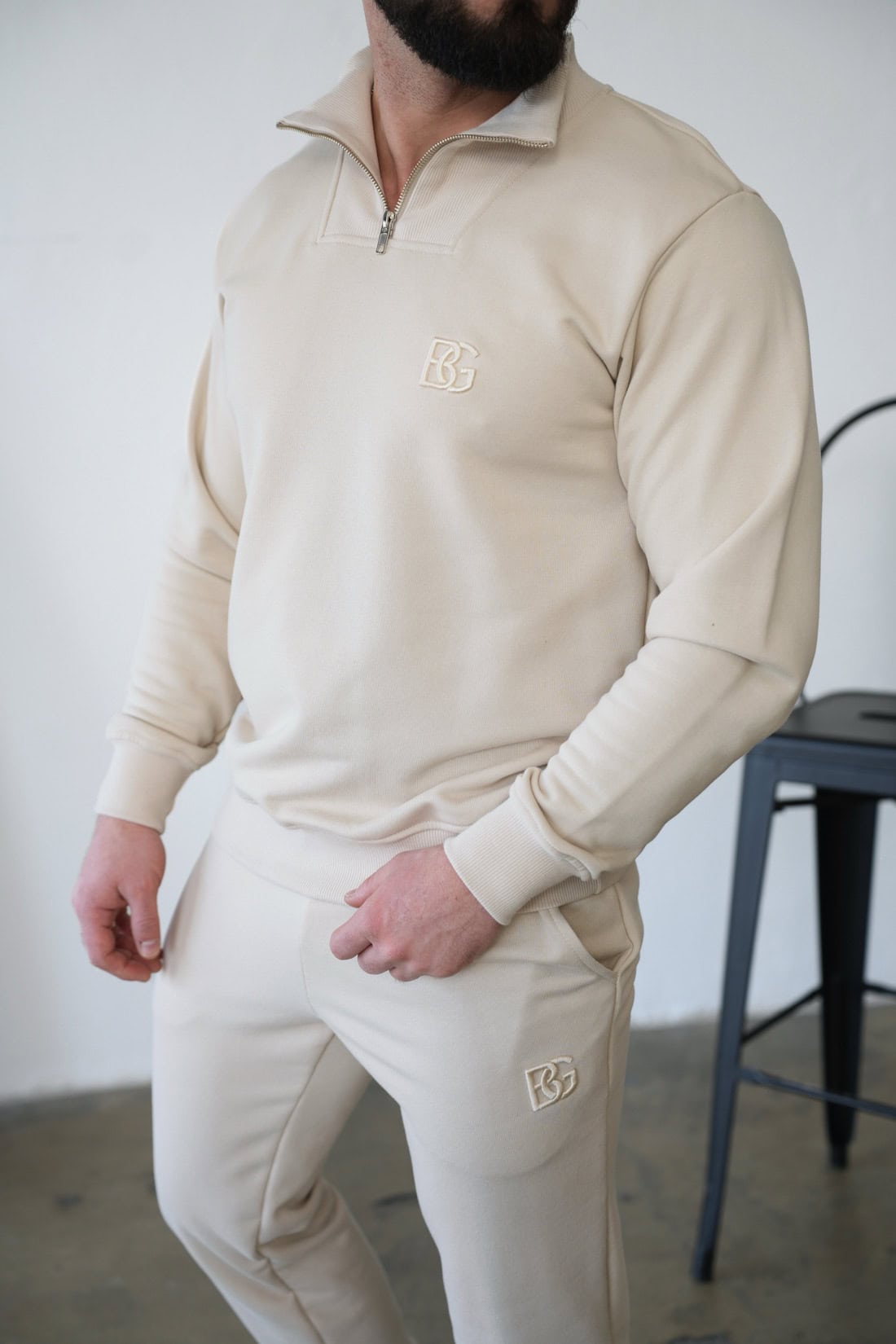 Opis produktu: Bluza męska BG BERLIN z wysokiej jakości bawełny nieocieplanej. Klasyczna bluza z wysoką stójką. Stójka na suwak, rozpinana. Na sercu wyhaftowane logo marki w tonacji materiału. Bluza wykończona ściągaczami.