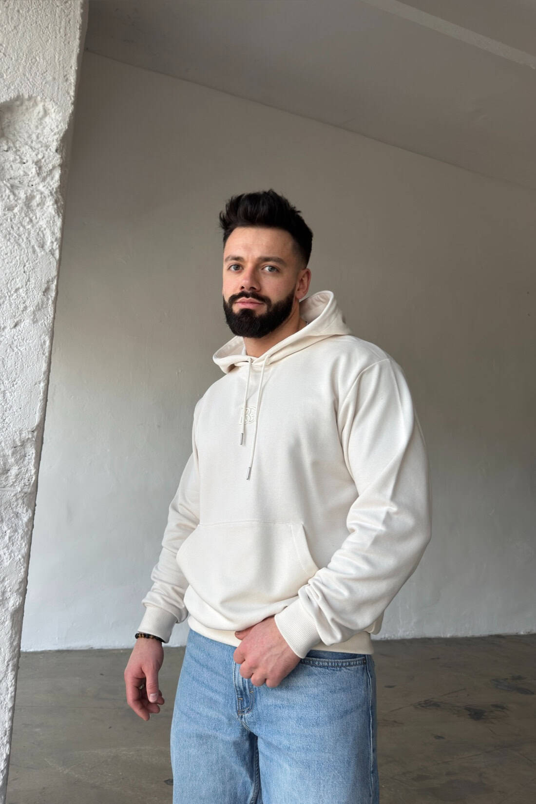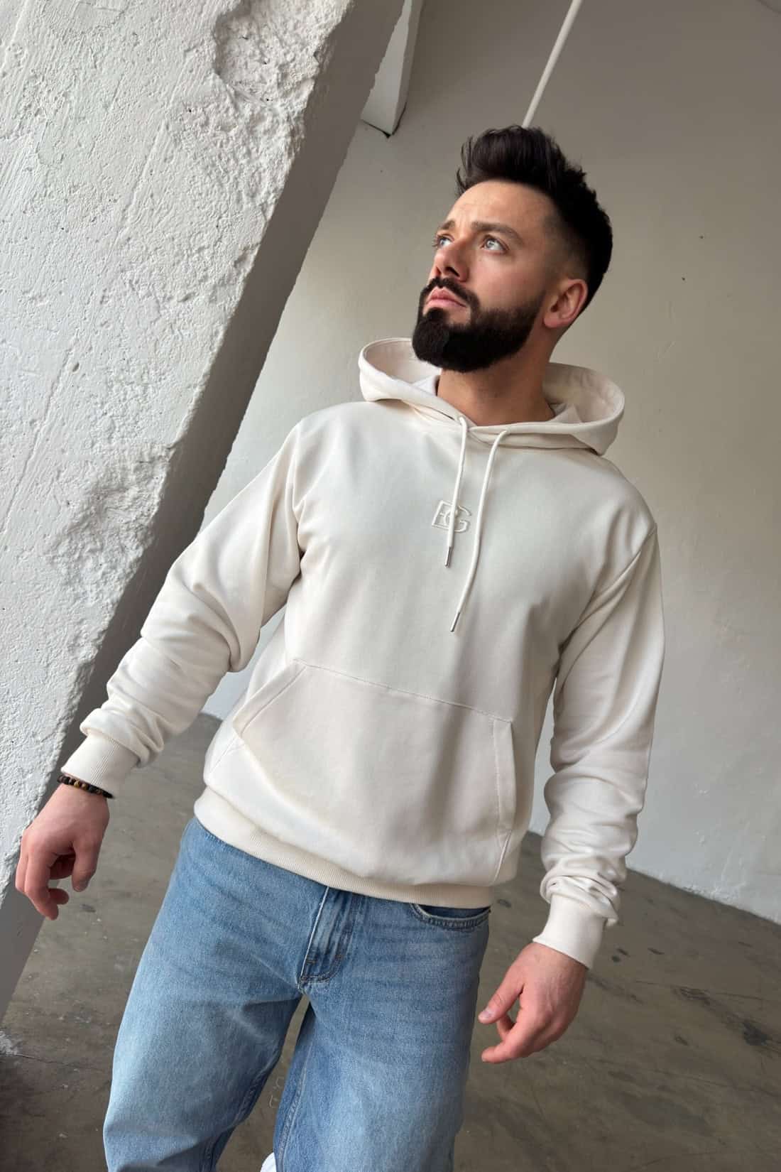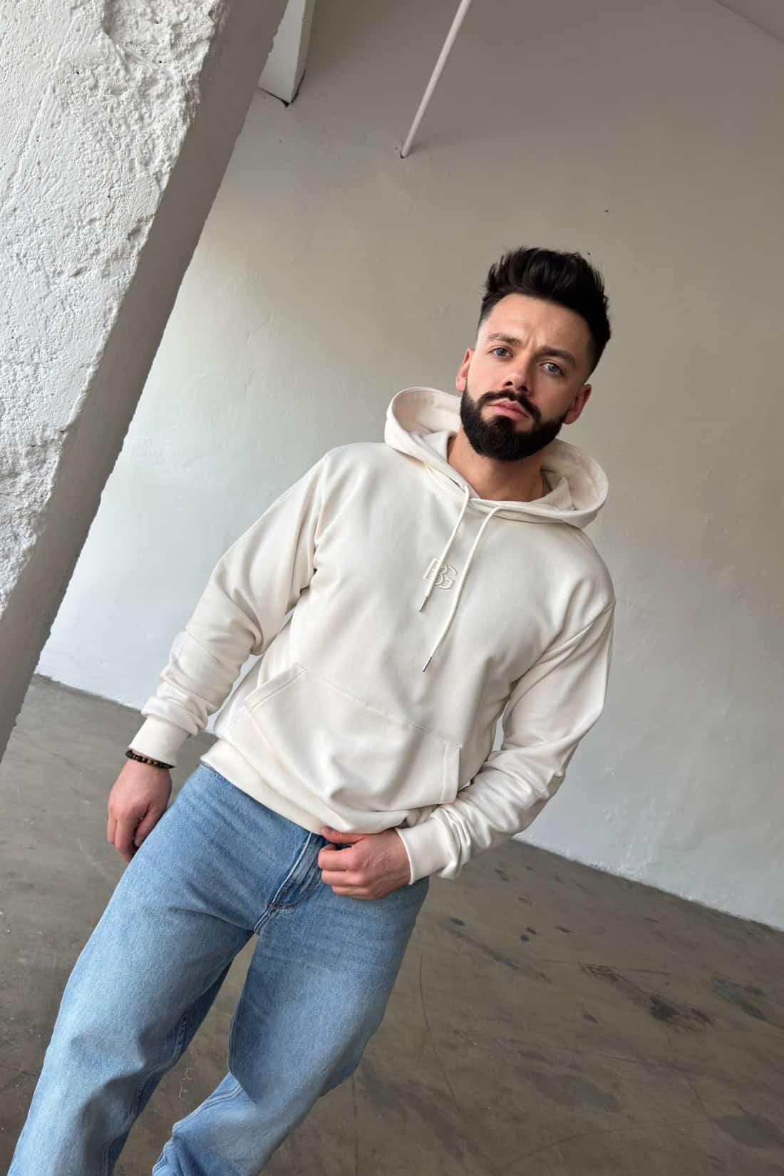 Opis produktu: Bluza męska BG KANGOO z wysokiej jakości bawełny nieocieplanej. Klasyczna bluza z wyhaftowanym logo marki na środku. Bluza kangurka wykończona ściągaczami. Kieszeń na przodzie.