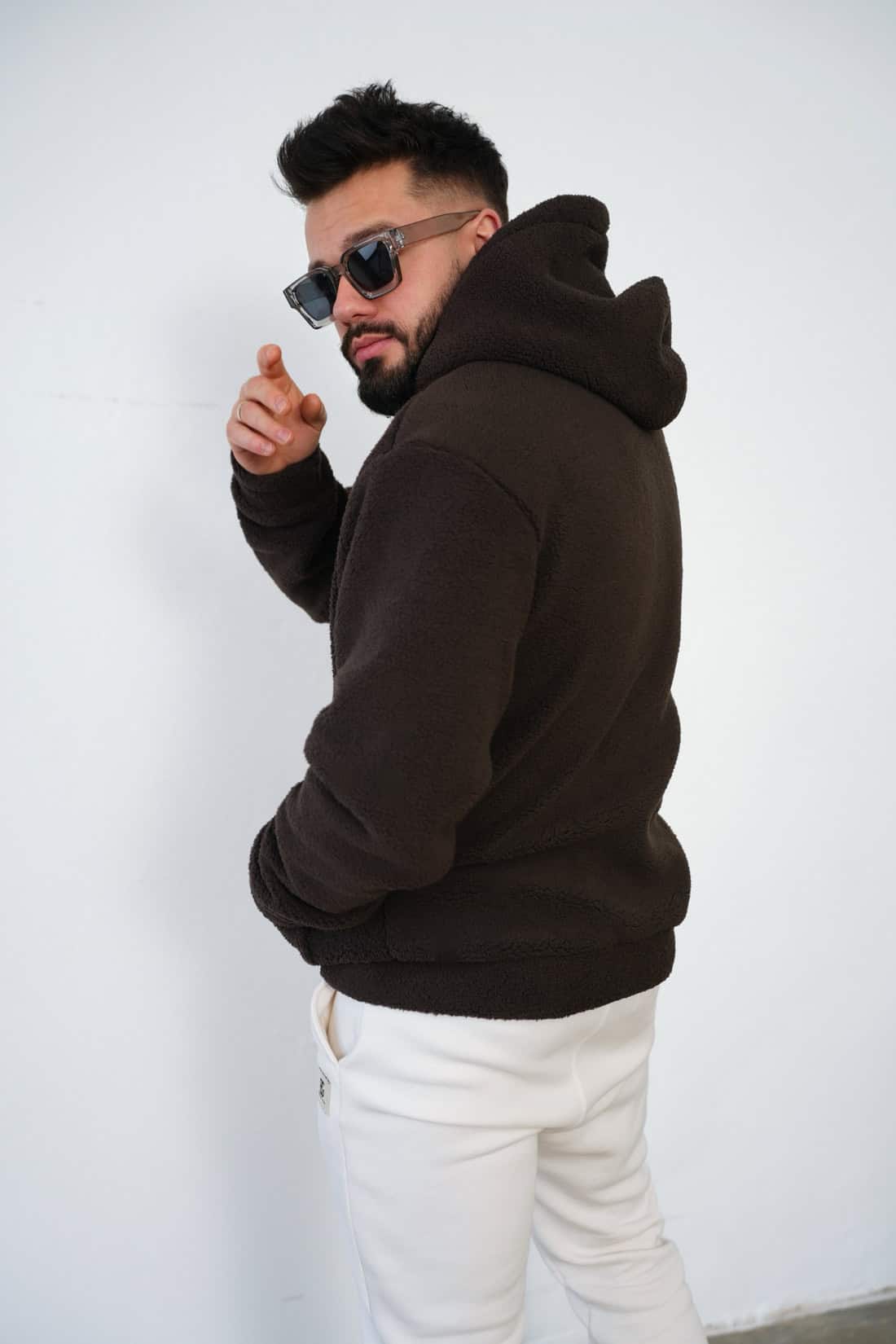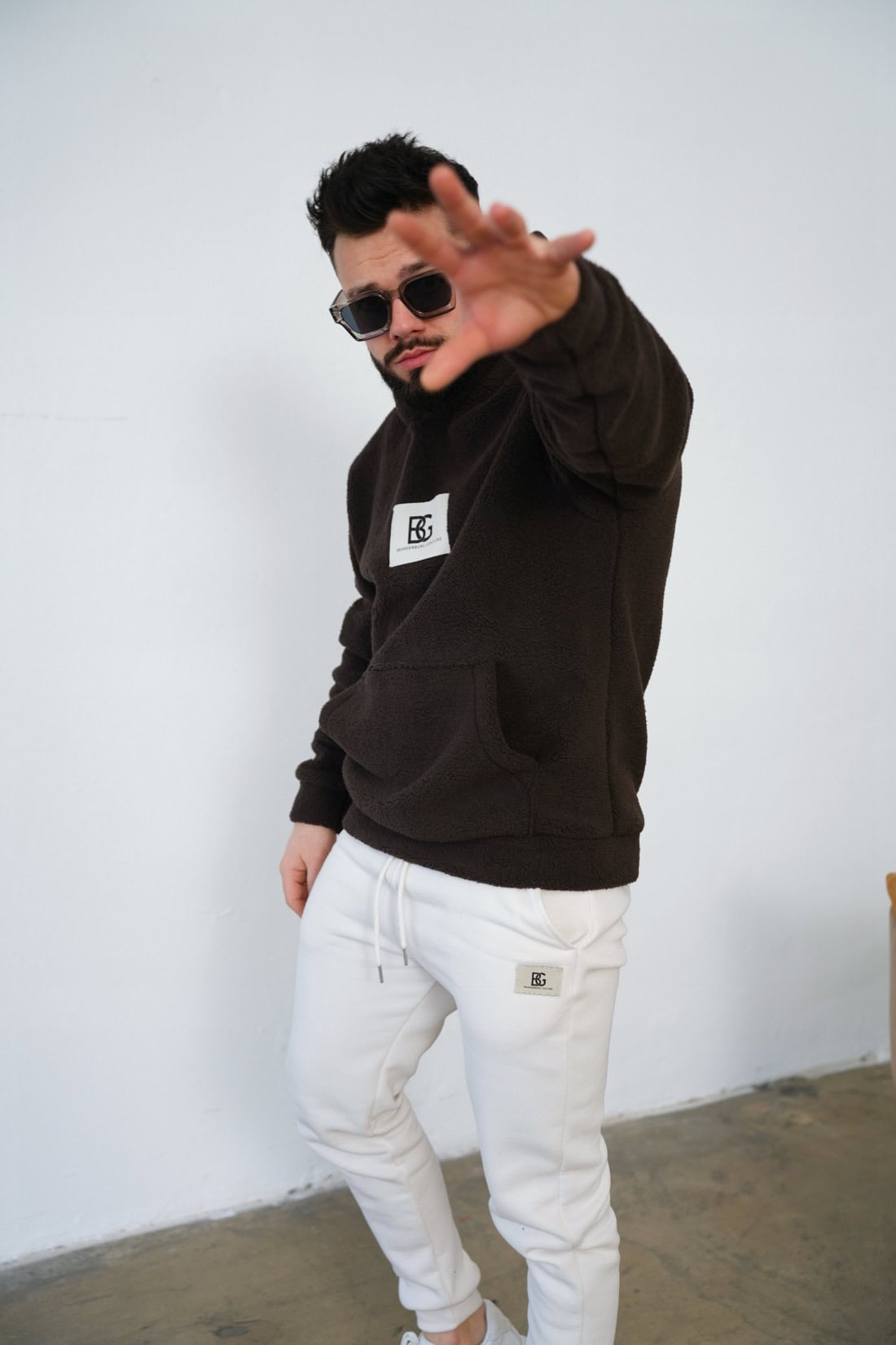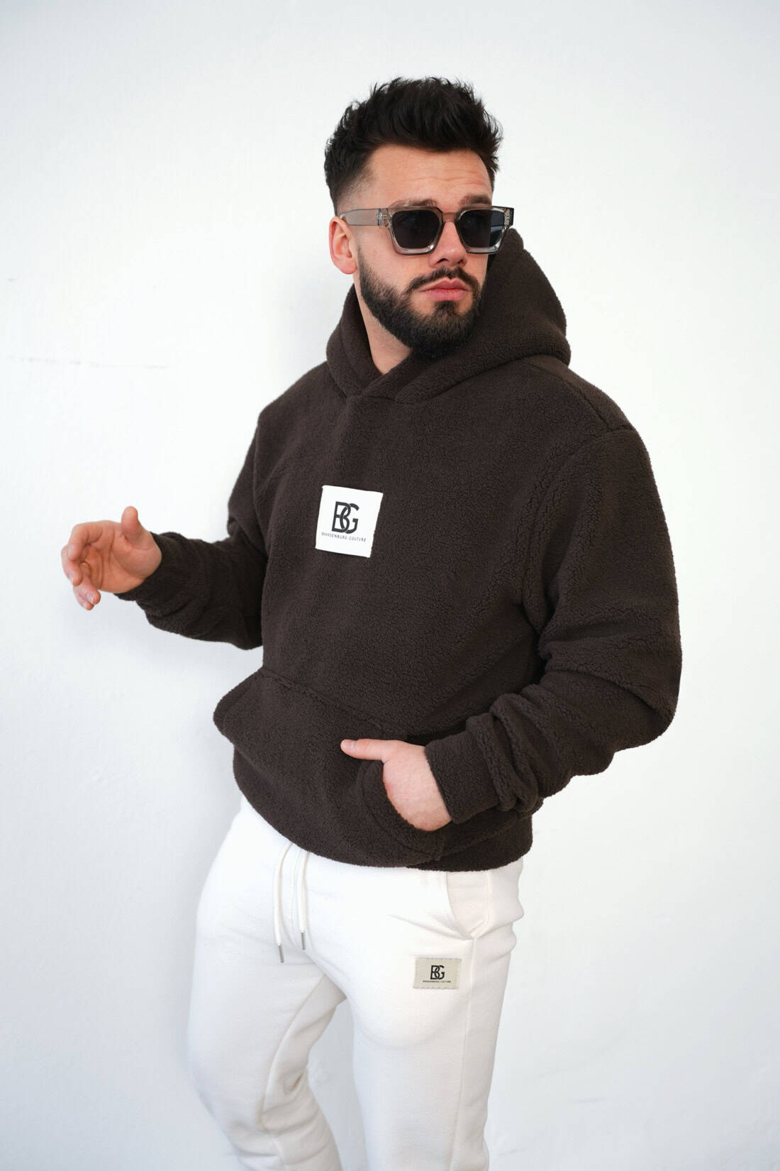 Opis produktu: Bluza męska BG NORTH z miłego w dotyku polarowego misia. Bluza z kapturem, naszywka logowana marką BG na przodzie. Model lekko oversize.