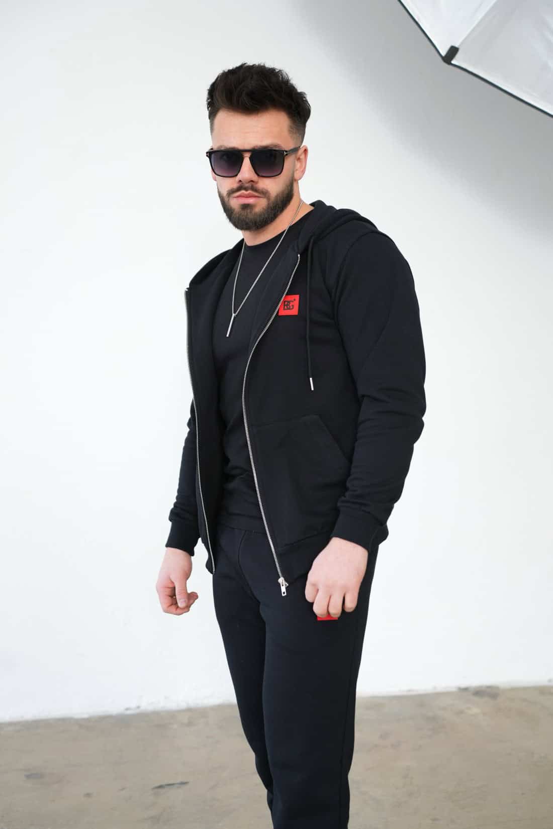 Opis produktu: Bluza męska BG ROMA z wysokiej jakości bawełny nieocieplanej. Klasyczna bluza z żelową naszywką z logo marki BG Brandenburg Couture na piersi. Bluza wykończona ściągaczami, zapinana na metalowy suwak. Posiada kieszenie oraz kaptur ze sznurkiem.