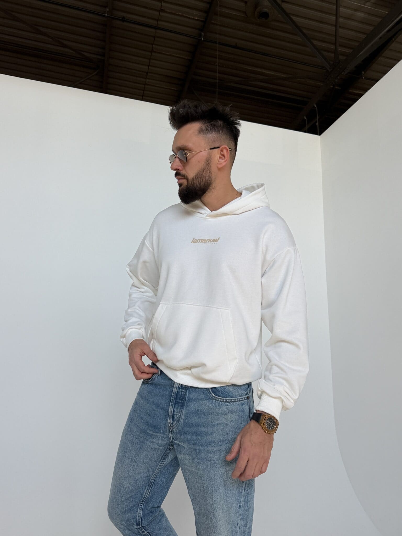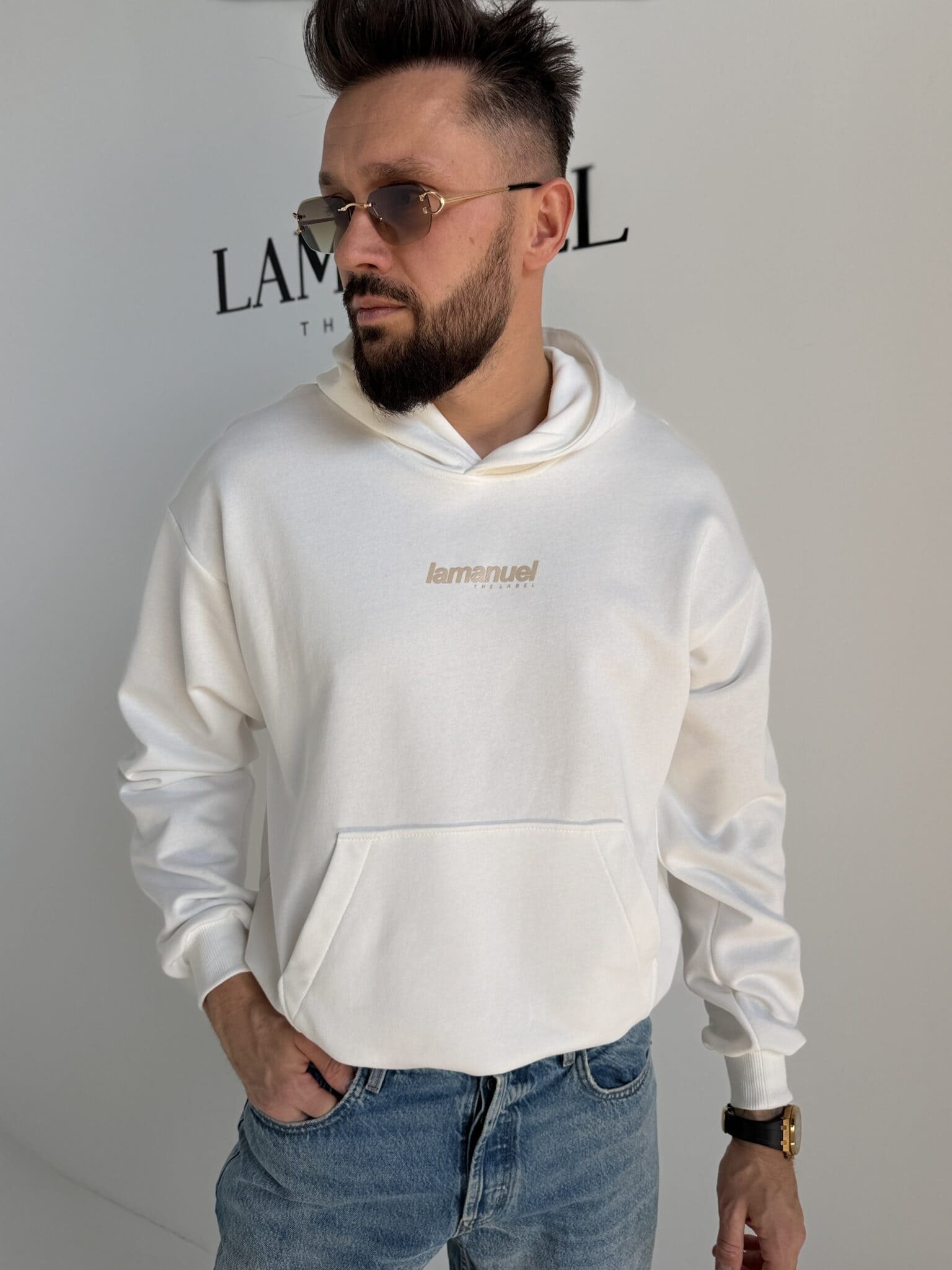 Forma oparta na prostych liniach i wyraźnych proporcjach. Luźniejszy fason daje swobodę i dobrze układa się na sylwetce bez efektu przylegania. Tył przyciąga uwagę dużym logotypem, który nadaje całości zdecydowanego charakteru. Przód pozostaje stonowany, dzięki czemu całość jest wyważona i czytelna. Kaptur oraz kieszeń z przodu podbijają funkcjonalność, bez zaburzania estetyki.Skład: 90% bawełna 10% poliester