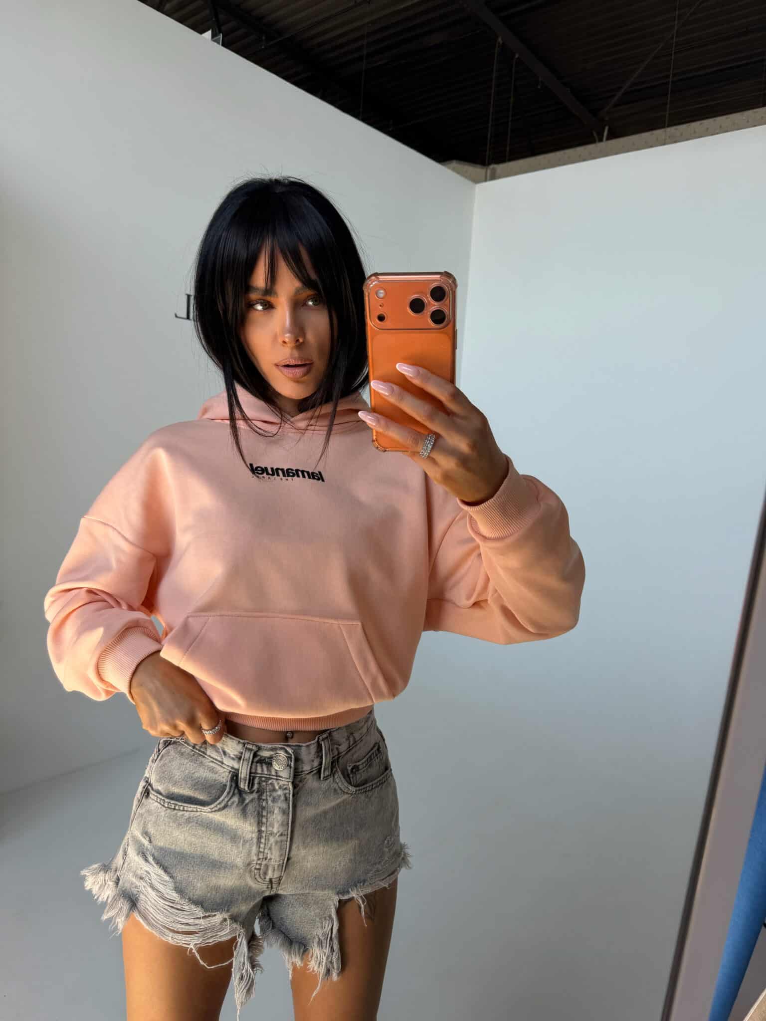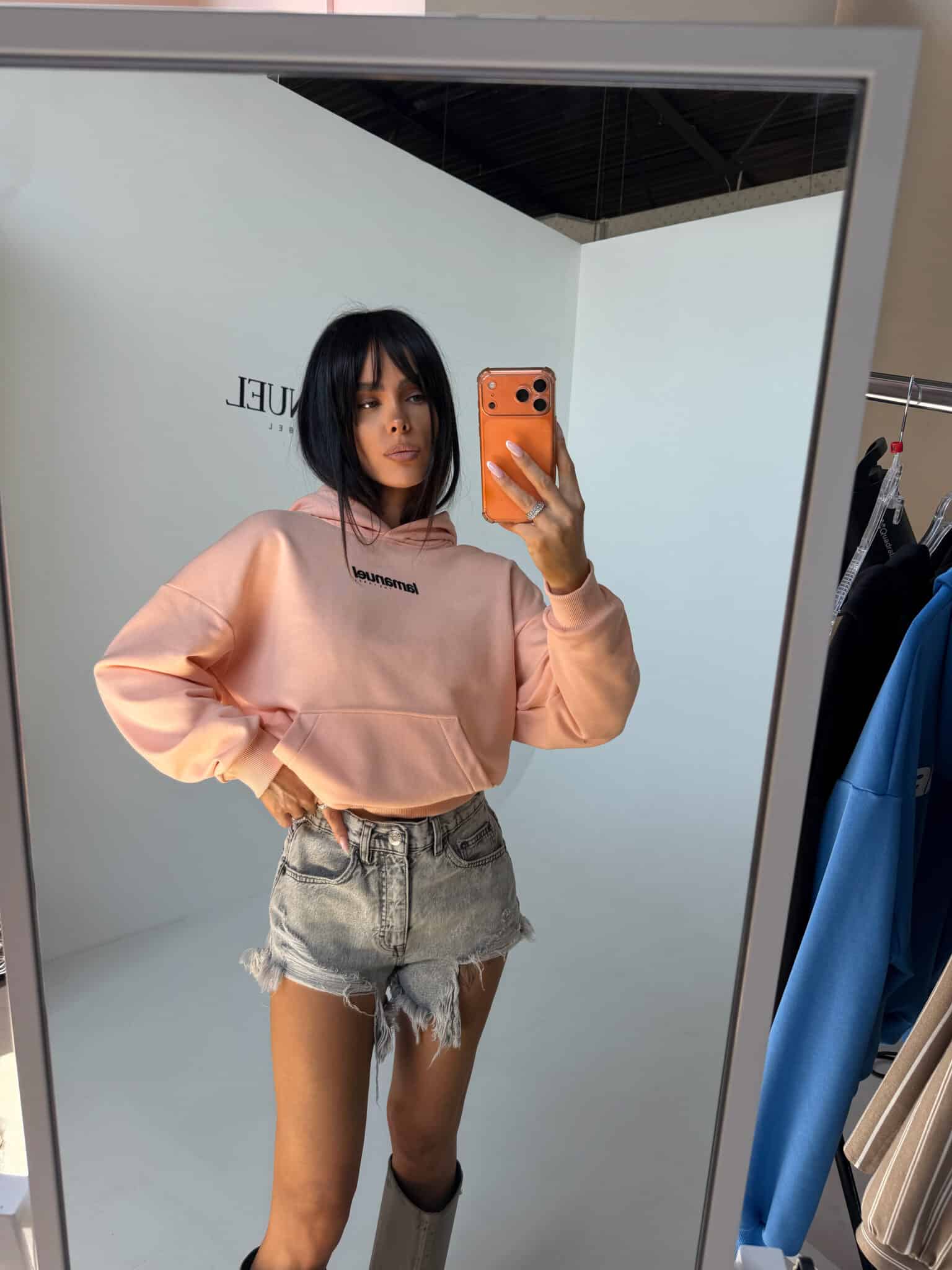 Luźniejszy krój, który naturalnie układa się na sylwetce i daje pełen komfort noszenia. Delikatnie opuszczona linia ramion wprowadza swobodniejszy efekt bez przerysowania. Przód pozostaje minimalistyczny, z subtelnym logo, natomiast tył wyróżnia się większym nadrukiem, który nadaje całości wyraźniejszego charakteru. Kaptur oraz kieszeń z przodu dopełniają formę, zachowując spójny i dopracowany wygląd.Skład: 90% bawełna 10% poliester
