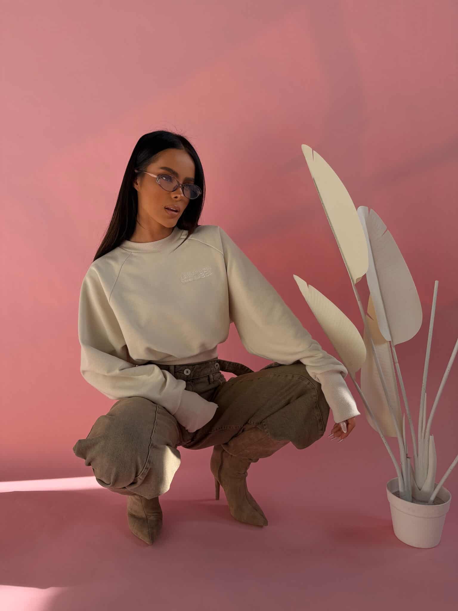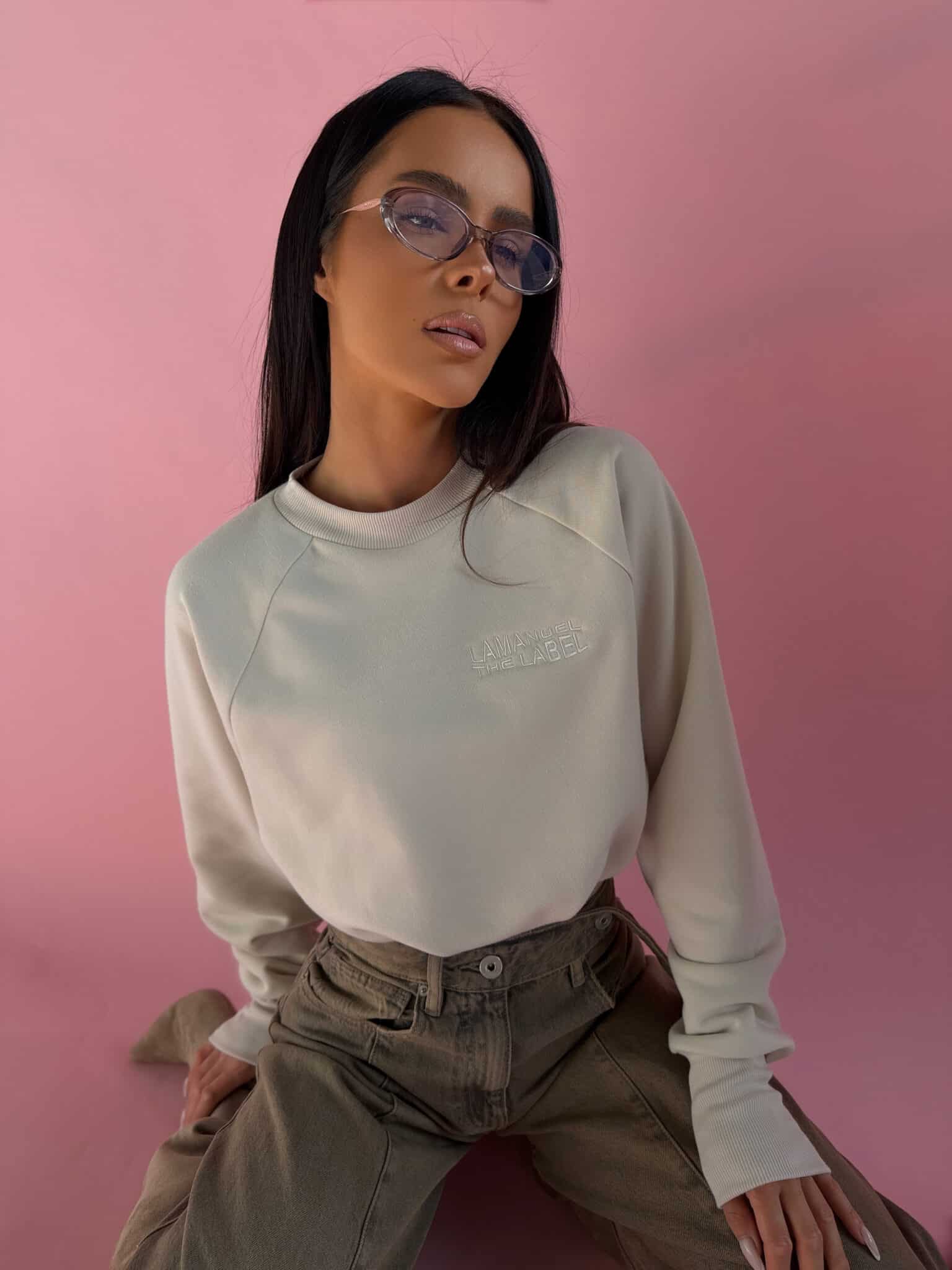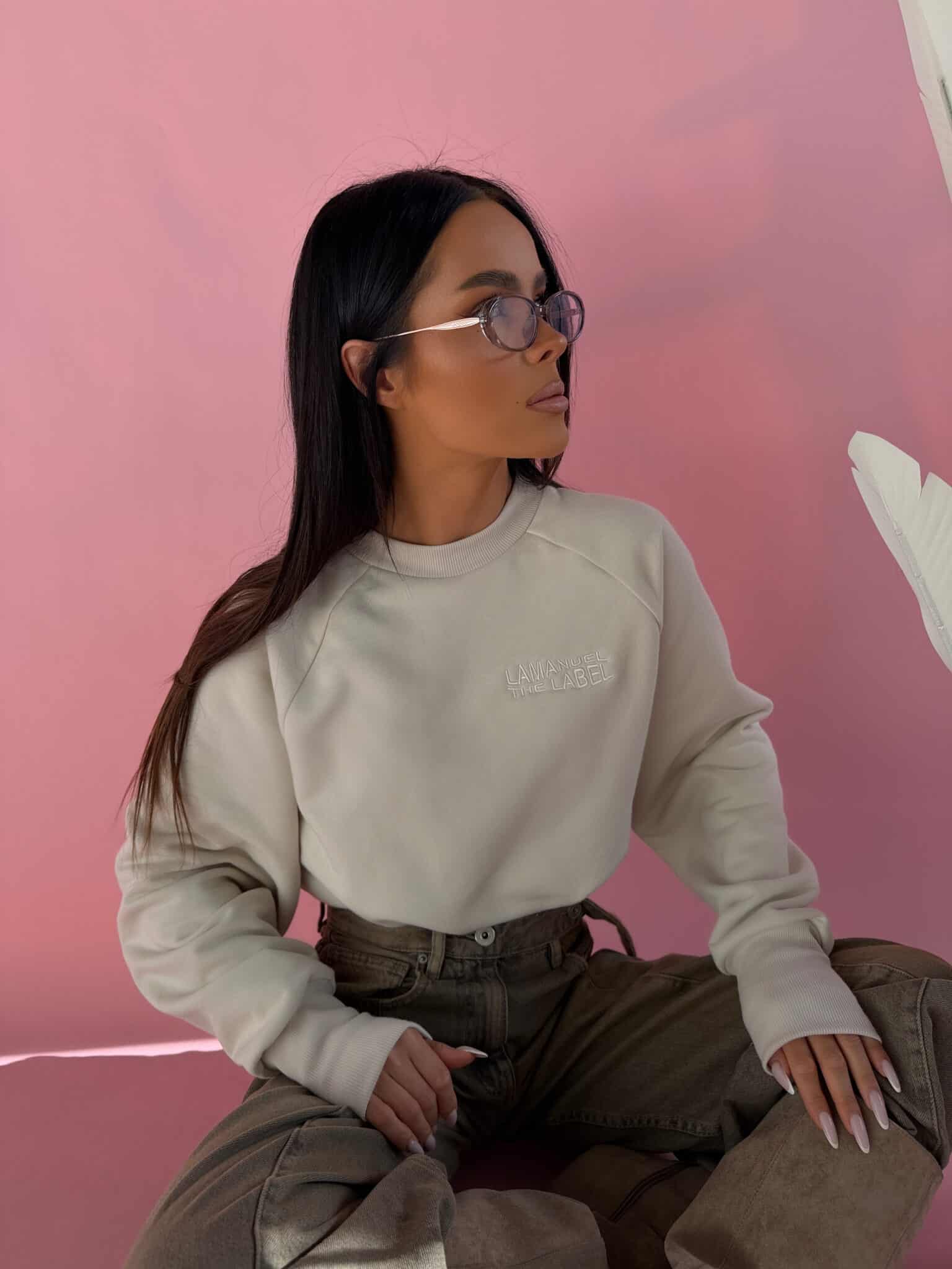 Bluza typu raglan uszyta z miękkiej dzianiny pętelki, która daje komfort noszenia i pięknie układa się na sylwetce. Model o wydłużonym kroju z mocno zaznaczonym, długim ściągaczem w talii, dzięki czemu tworzy efekt subtelnej bombki i podkreśla proporcje. Raglanowe rękawy nadają jej swobodnego, sportowego charakteru, a haftowane logo na przodzie dodaje całości estetycznego, dopracowanego wykończenia. To idealna bluza do codziennych stylizacji – świetnie wygląda zarówno z jeansami, jak i dopasowanym dołem. Luźniejsza góra w połączeniu z dopasowanym dołem tworzy bardzo kobiecą, nowoczesną formę. Komfortowa, stylowa i dopracowana w każdym detalu.Skład: 90% bawełna 10% poliester