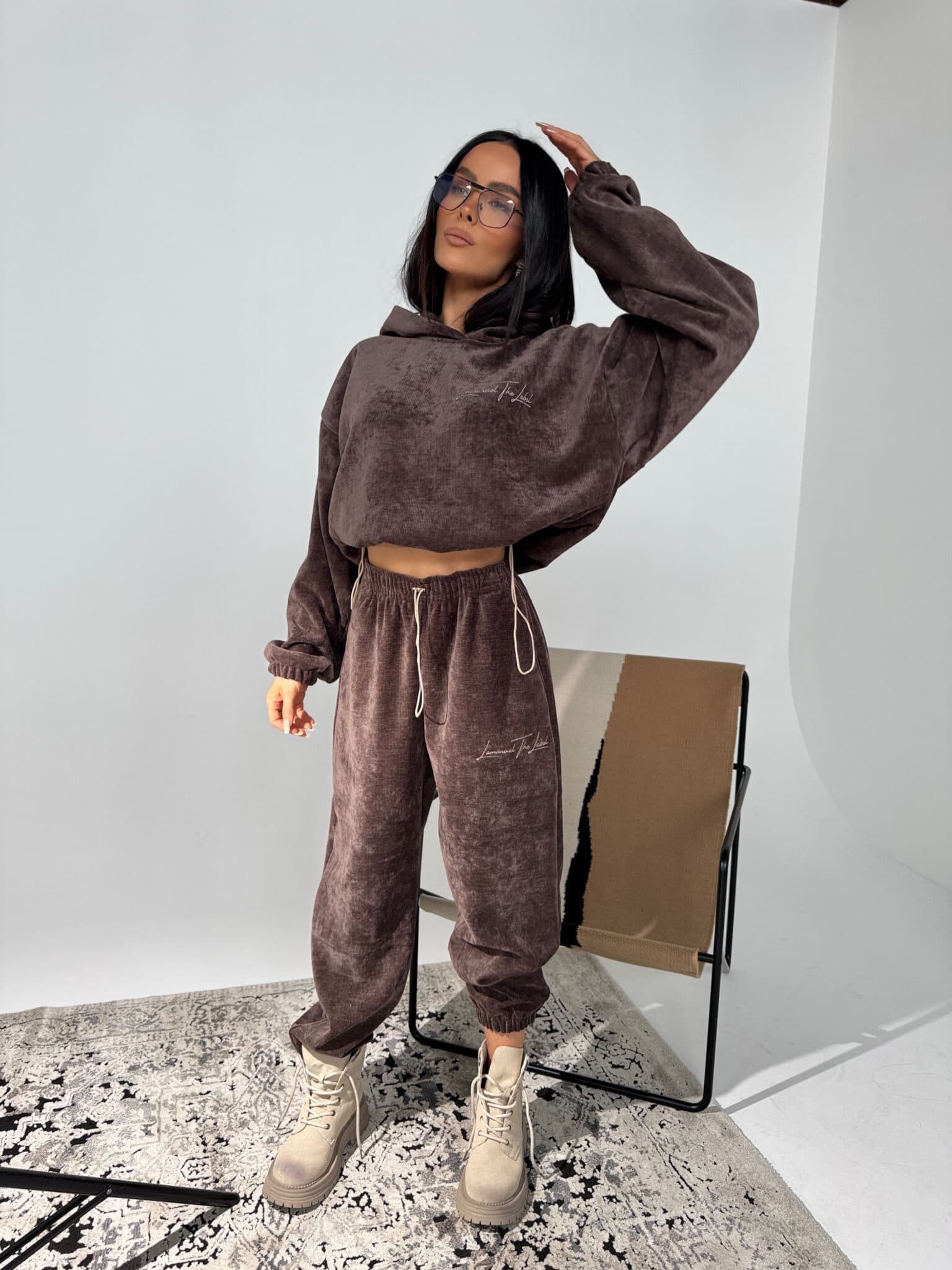 Miękka jak ulubiony koc i idealna na zimowe dni, kiedy za oknem śnieg, a Ty masz ochotę na spokój i ciepło. Dłuższy krój z możliwością ściągnięcia na dole – możesz nosić ją luźno albo skrócić i podkreślić sylwetkę. Welur delikatnie odbija światło, a oversize’owe rękawy i miękki kaptur dodają luzu. Założysz ją po całym dniu na stoku, na gorącą czekoladę z przyjaciółką albo na weekendowy wypad w góry. Komfort z klimatem.Skład: 95% poliester 5% spandex
