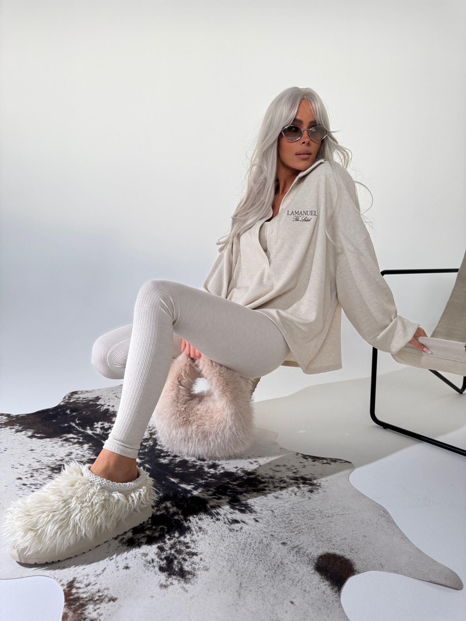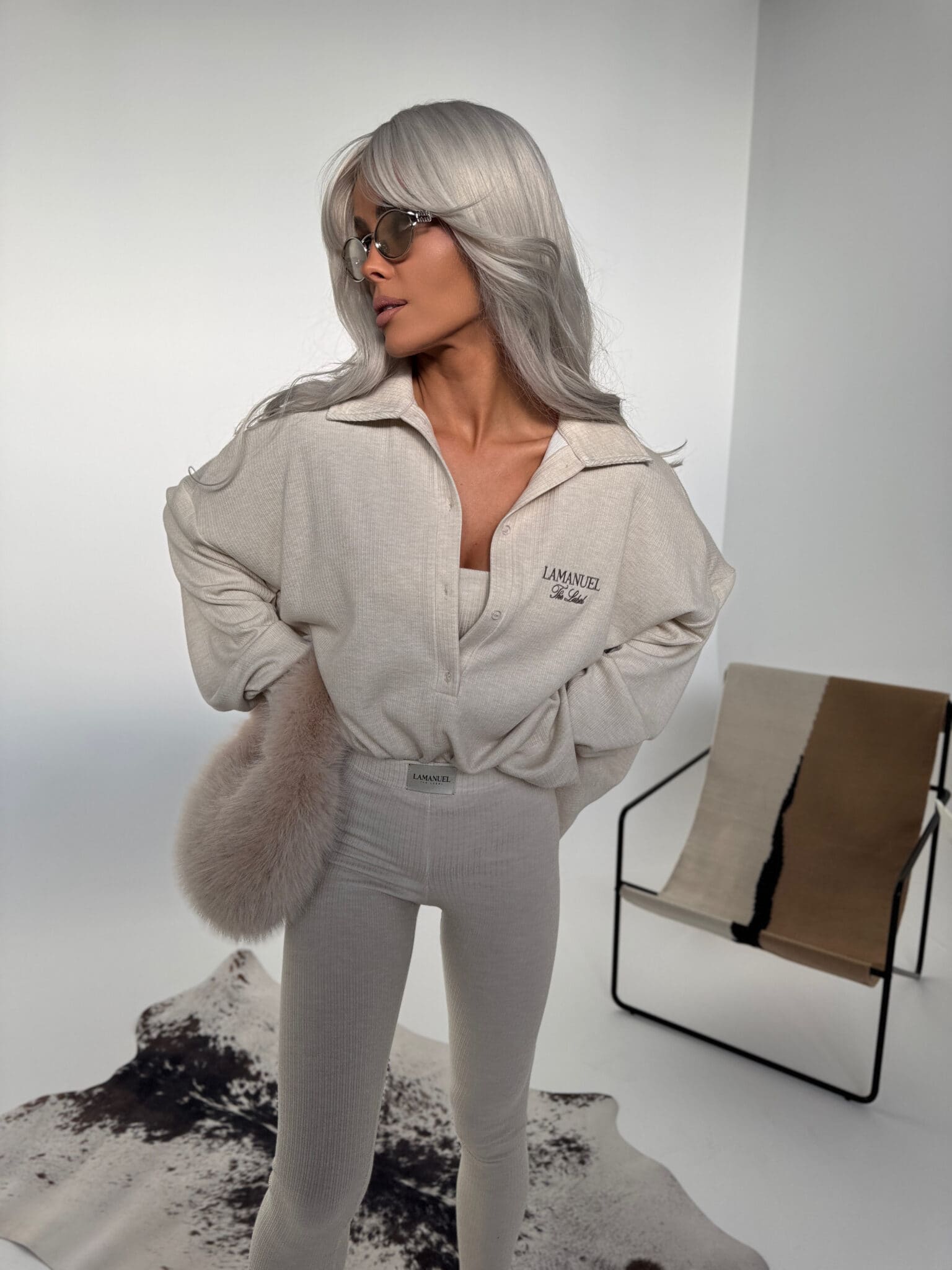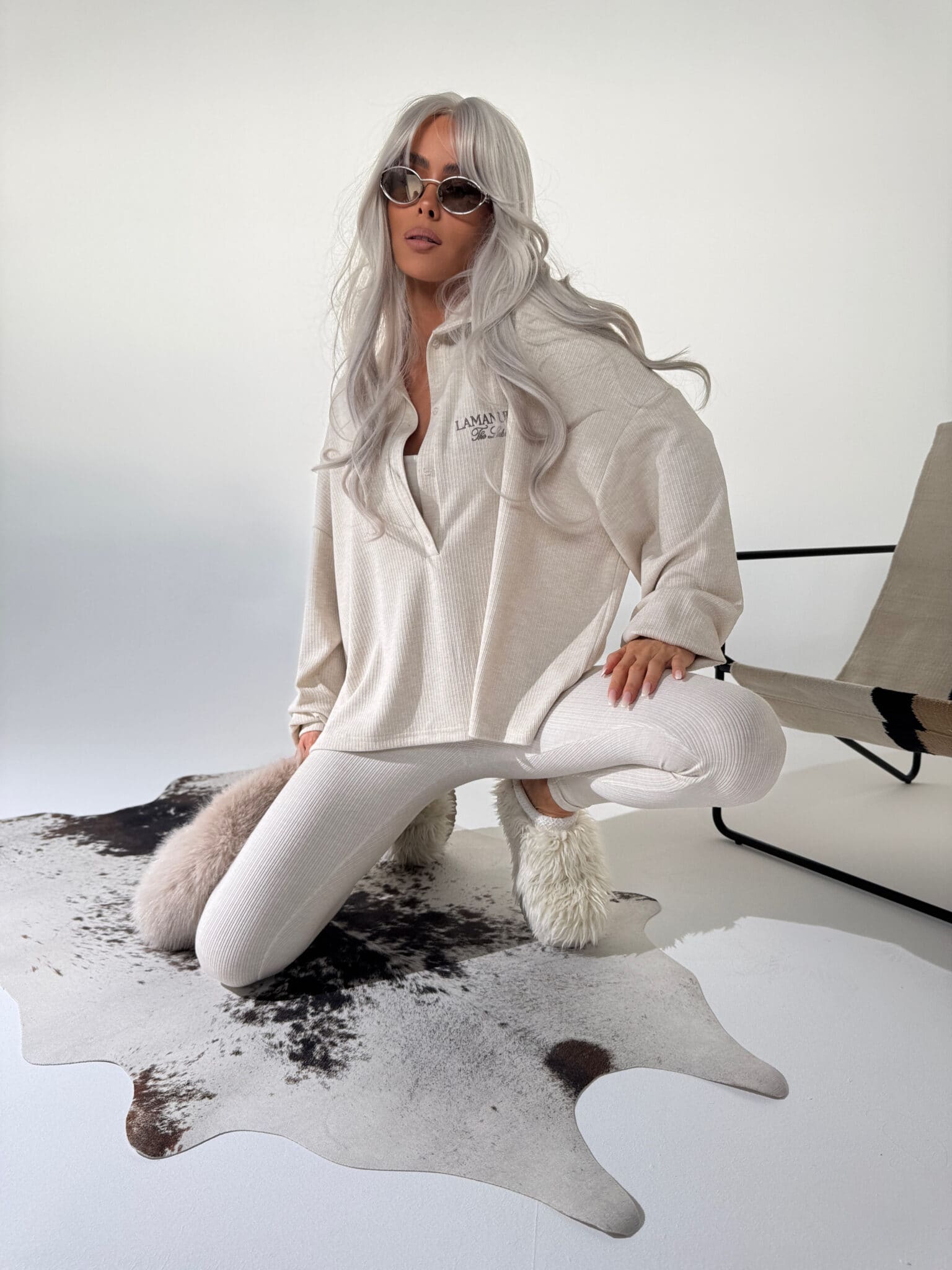 Bluza z prążkowanej dzianiny, która wygląda jak totalny chill, ale ma w sobie coś więcej. Rozpinana przy dekolcie, z obszernym kapturem i luźnym krojem – stworzona do warstw, do luzu, do noszenia “niby od niechcenia”, ale z efektem. Haft z logo na piersi robi tu całą robotę – subtelny, ale przyciąga oko. To ten typ bluzy, którą wrzucasz na siebie i nie musisz już nic kombinować. Styl sam się broni.Skład: 75% nylon 22% wiskoza 3% spandex