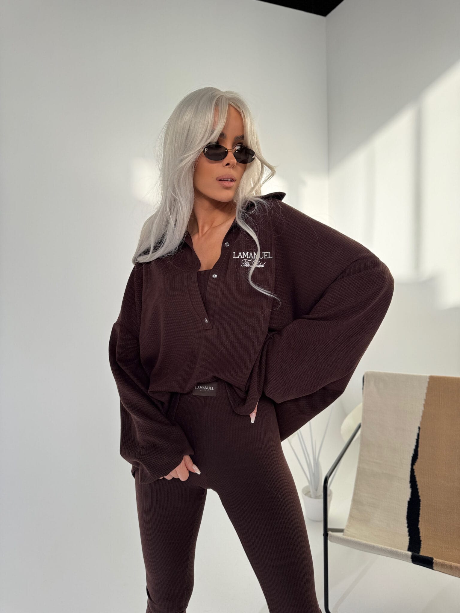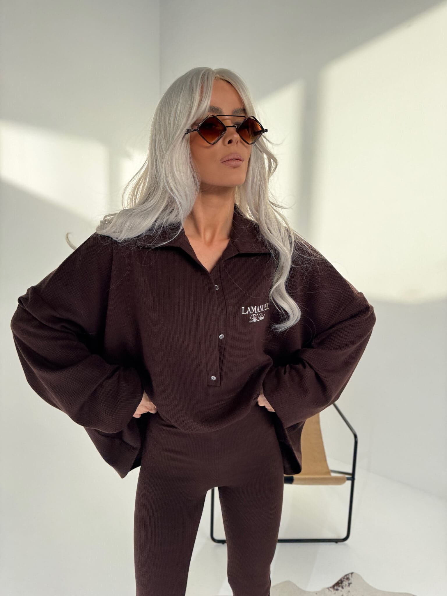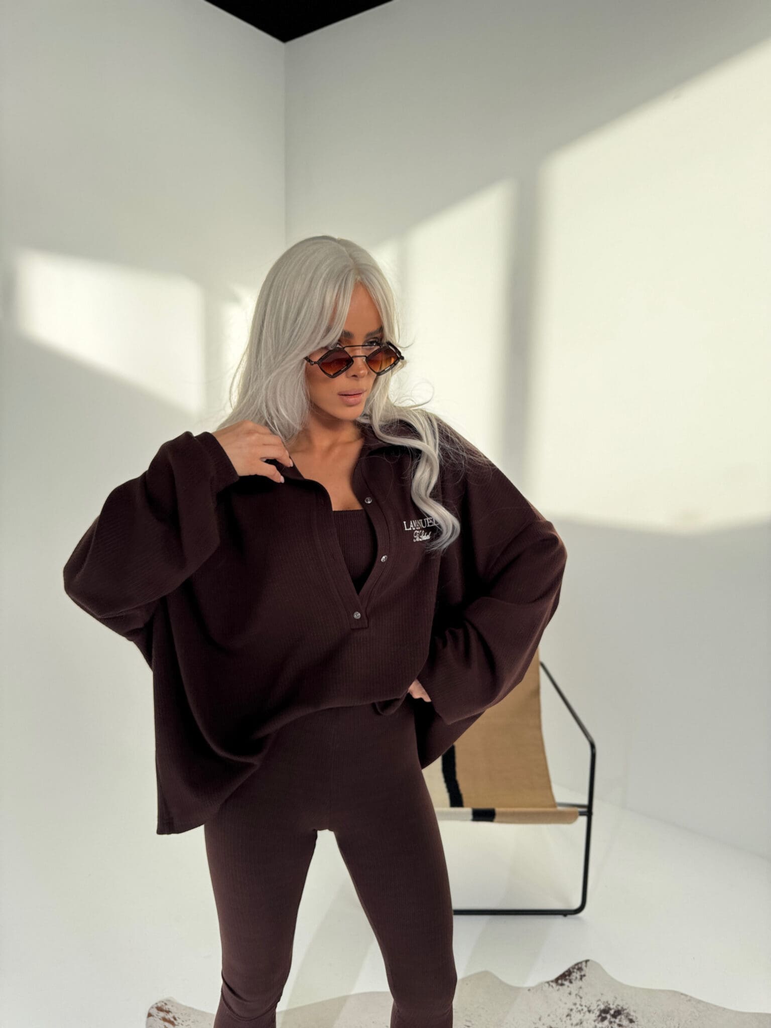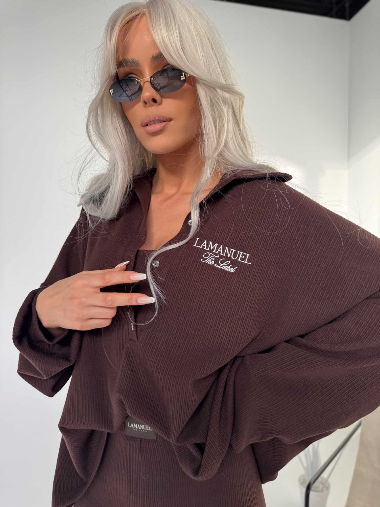 Bluza z prążkowanej dzianiny, która wygląda jak totalny chill, ale ma w sobie coś więcej. Rozpinana przy dekolcie, z obszernym kapturem i luźnym krojem – stworzona do warstw, do luzu, do noszenia “niby od niechcenia”, ale z efektem. Haft z logo na piersi robi tu całą robotę – subtelny, ale przyciąga oko. To ten typ bluzy, którą wrzucasz na siebie i nie musisz już nic kombinować. Styl sam się broni.Skład: 75% nylon 22% wiskoza 3% spandex