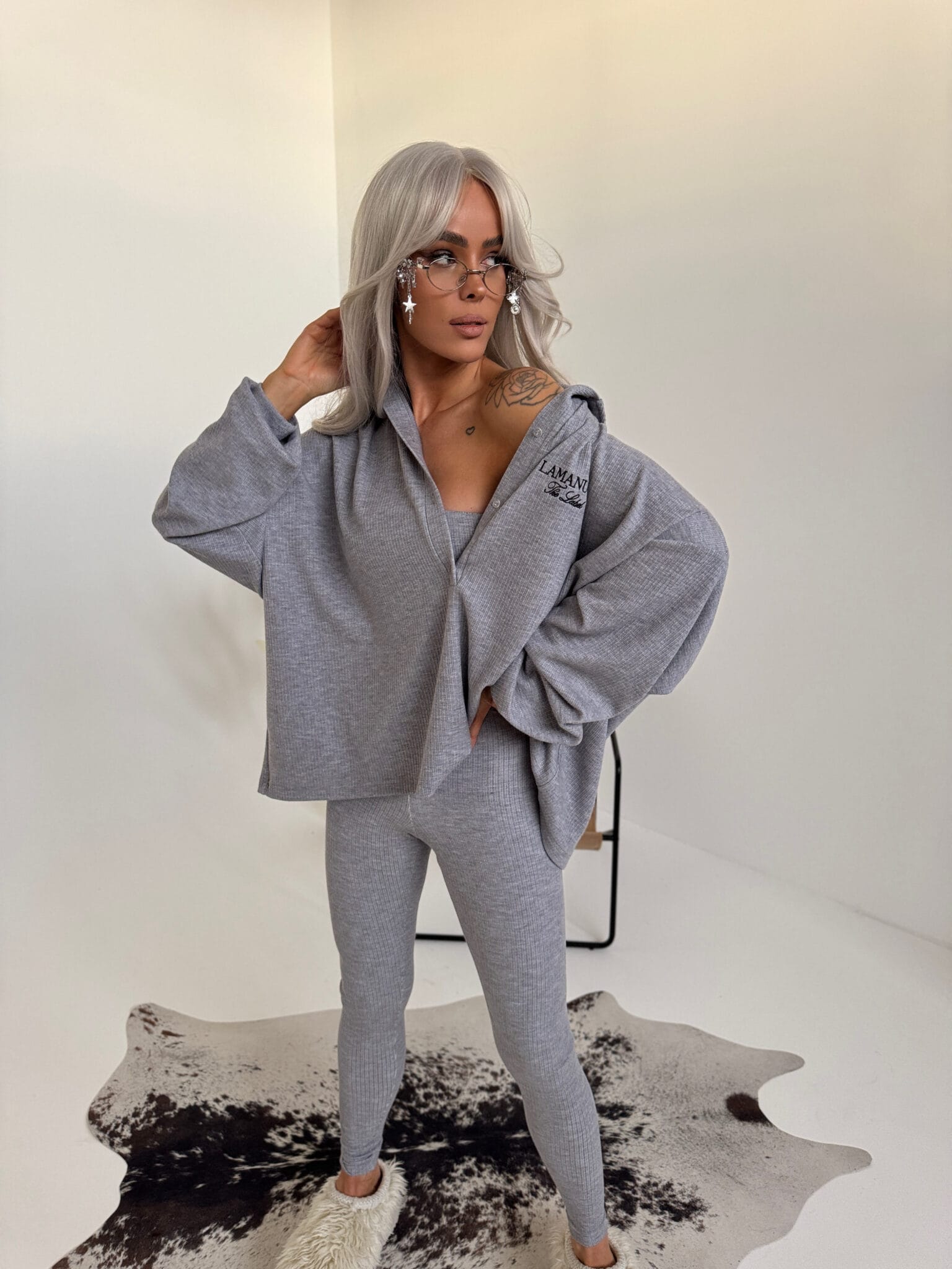 Bluza z prążkowanej dzianiny, która wygląda jak totalny chill, ale ma w sobie coś więcej. Rozpinana przy dekolcie, z obszernym kapturem i luźnym krojem – stworzona do warstw, do luzu, do noszenia “niby od niechcenia”, ale z efektem. Haft z logo na piersi robi tu całą robotę – subtelny, ale przyciąga oko. To ten typ bluzy, którą wrzucasz na siebie i nie musisz już nic kombinować. Styl sam się broni.Skład: 75% nylon 22% wiskoza 3% spandex