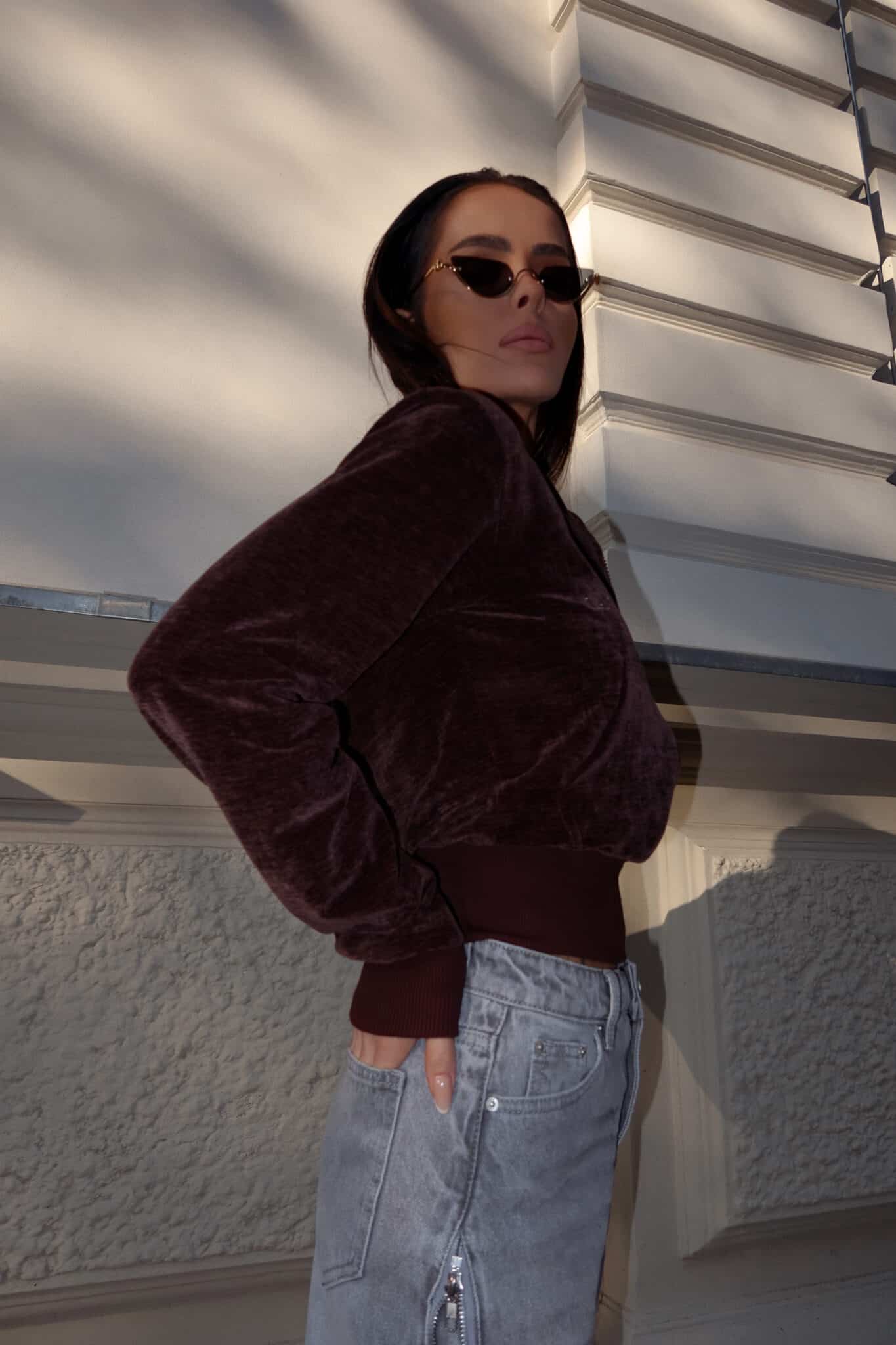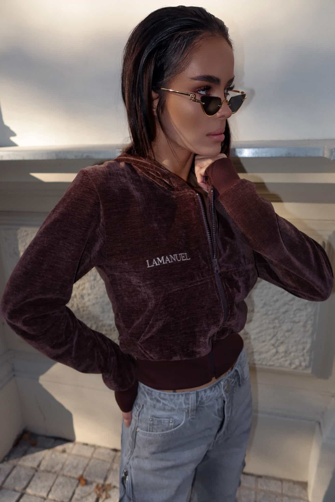 Krótka bluza, która przyciąga uwagę nie tylko krojem, ale i klimatem. Mięsista w dotyku, przyjemna dla skóry, z charakterystycznym haftem i dużym kapturem na chłodniejsze dni. Łączy wygodę z miejskim luzem, a przy tym trzyma fason. Noś ją do szerokich jeansów, spodni z wysokim stanem albo solo – jako element, który robi całą stylówkę.Skład: 95% poliester 5% elastan