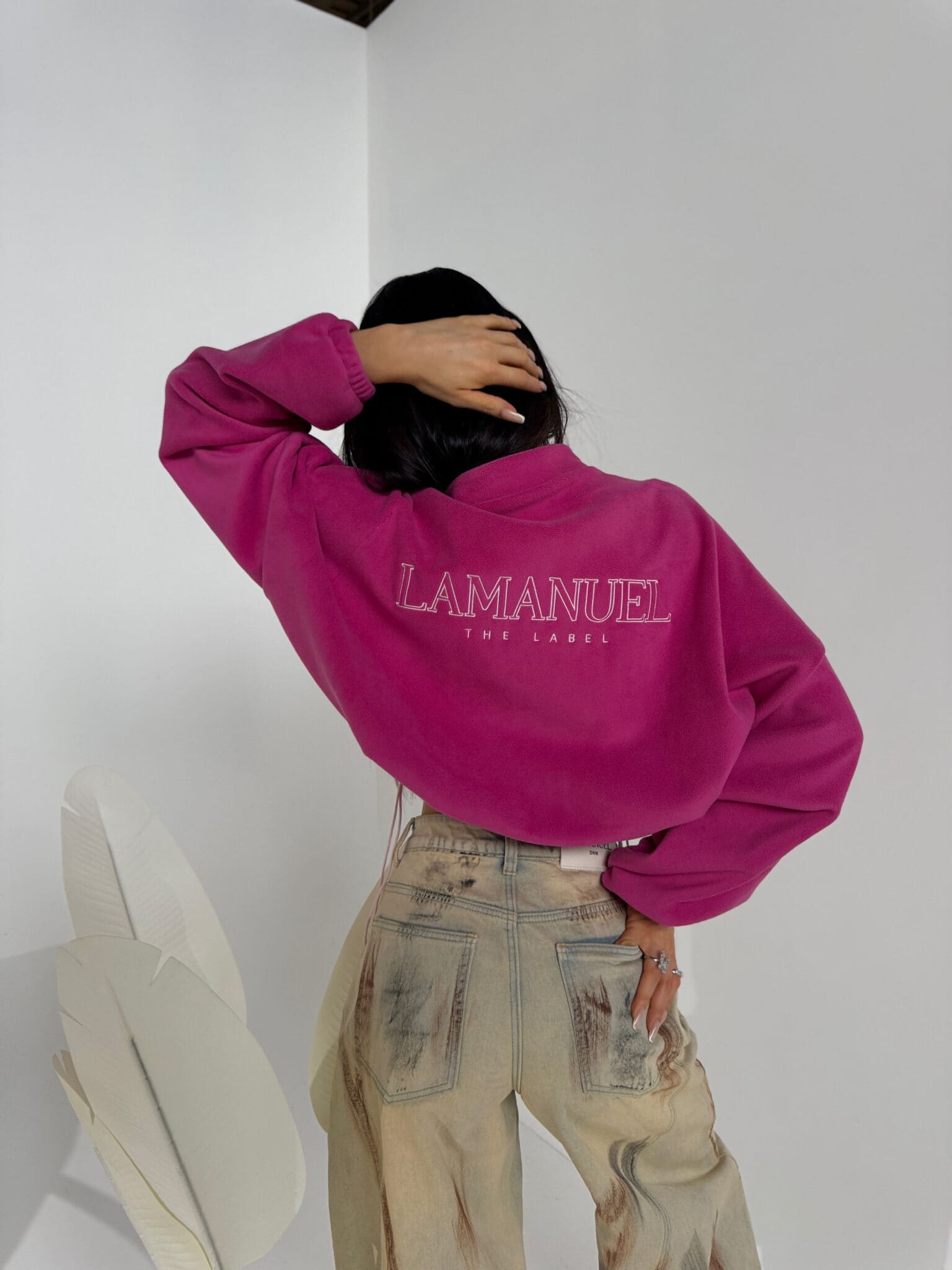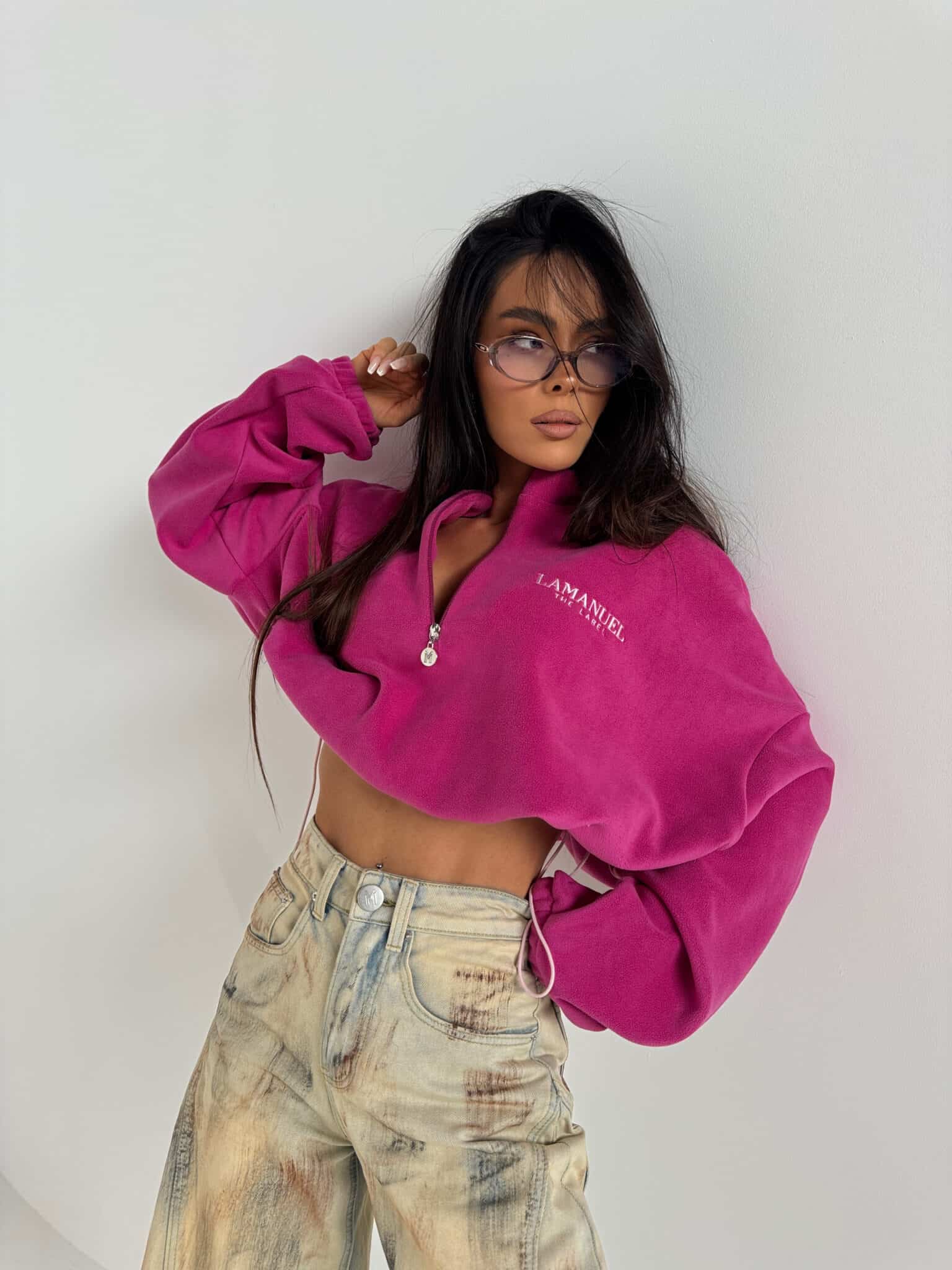 Oversize’owa bluza wykonana z grubszego, ciepłego polaru, który świetnie sprawdzi się w chłodniejsze dni. Materiał jest miękki, przyjemny w dotyku i dobrze trzyma ciepło. Model z krótkim zamkiem i wysokim kołnierzem, który możesz postawić lub odpiąć dla swobodniejszego looku. Z przodu i na plecach tonalny haft z logo LAMANUEL. Dół bluzy regulowany – można ją nosić luźno lub ściągnąć troczkiem. Dzięki uniwersalnemu, luźnemu krojowi pasuje również na sylwetki do XL.Skład: 95% poliester 5% elastan