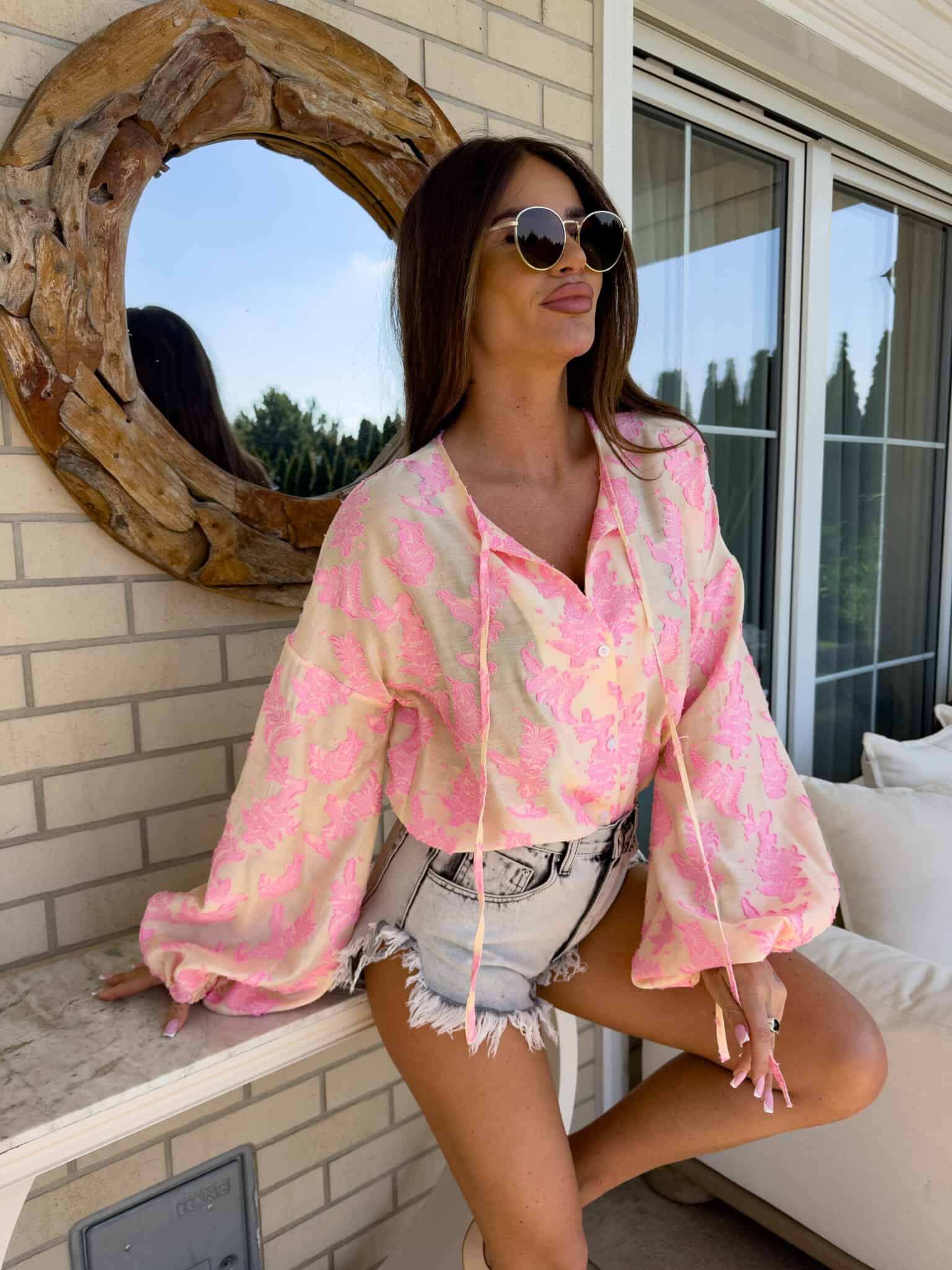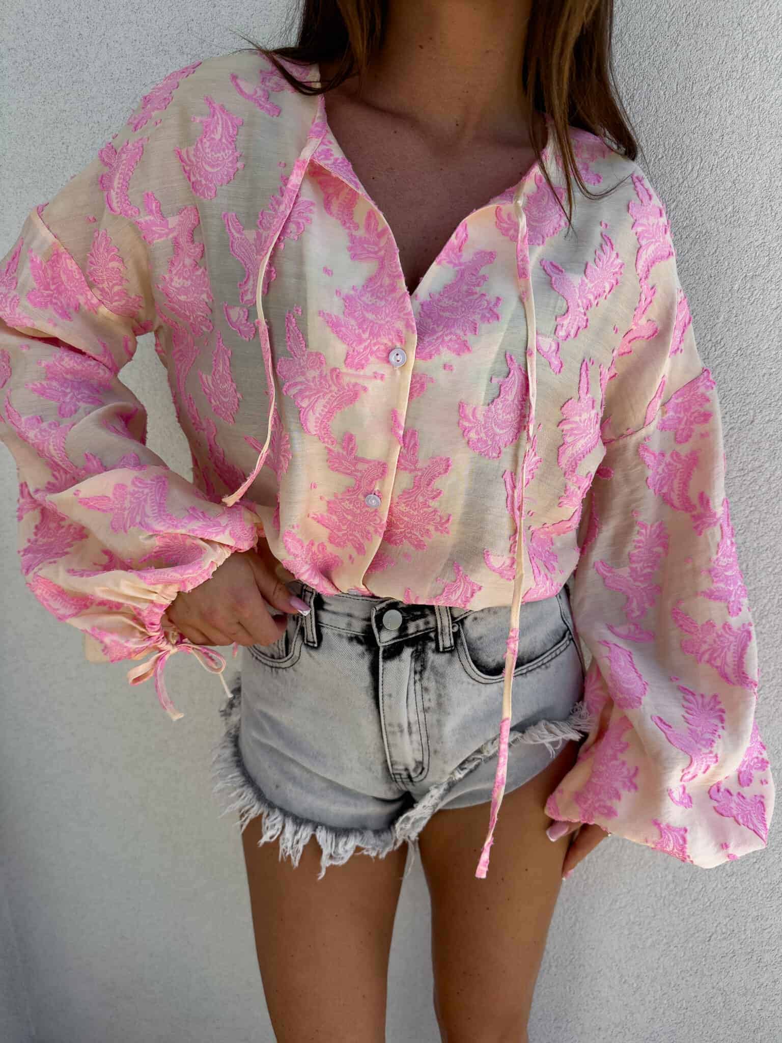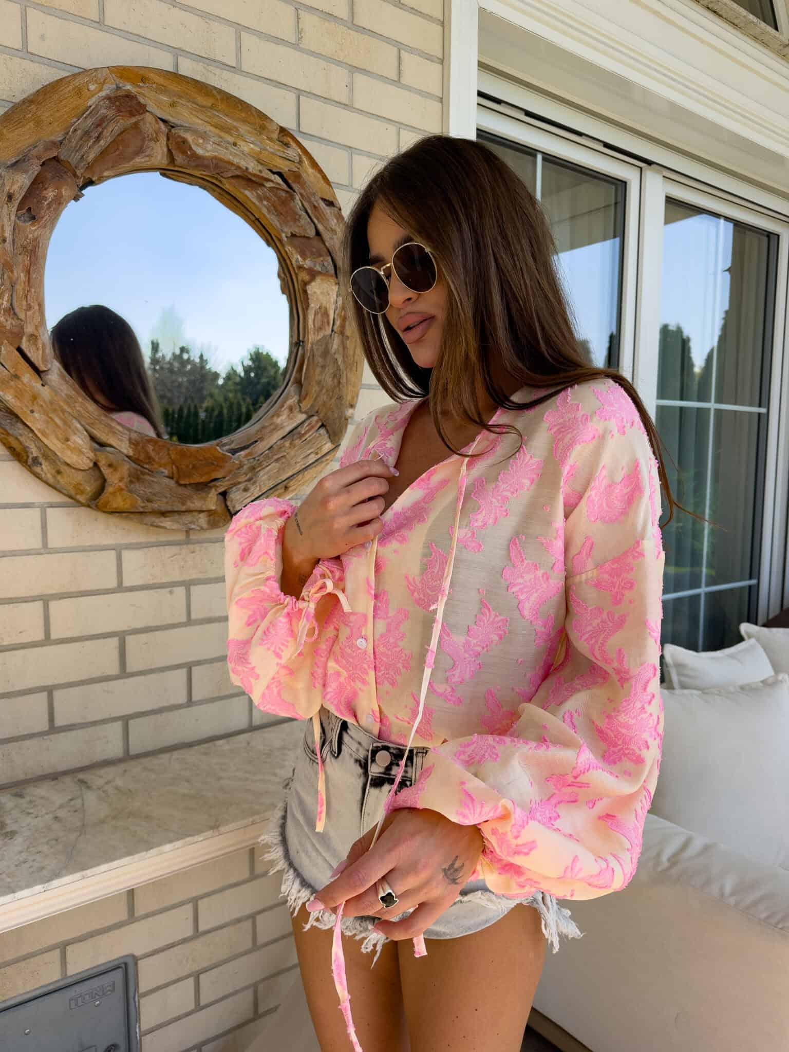 Luźny fason typu oversize to gwarancja wygody i swobody ruchów, a jednocześnie modny akcent w każdej stylizacji. Bluzka posiada dekolt z uroczym wiązaniem na troczki, które dodają całości lekkości i romantycznego charakteru. Bufiaste rękawy zakończone wiązaniem na troczki tworzą efektowną formę. Idealna do jeansów, spodni z wysokim stanem lub spódnic — na co dzień i na specjalne okazje.