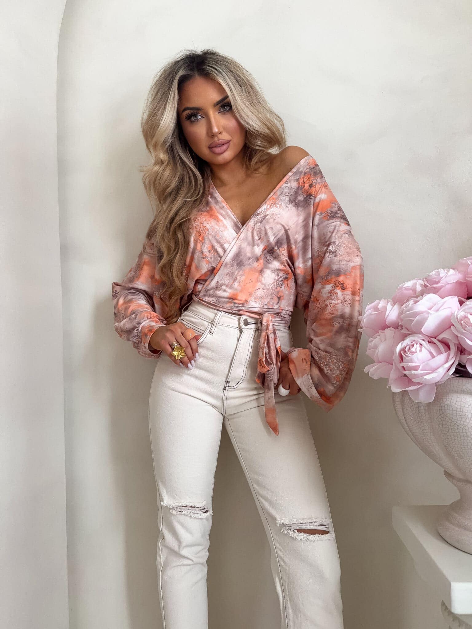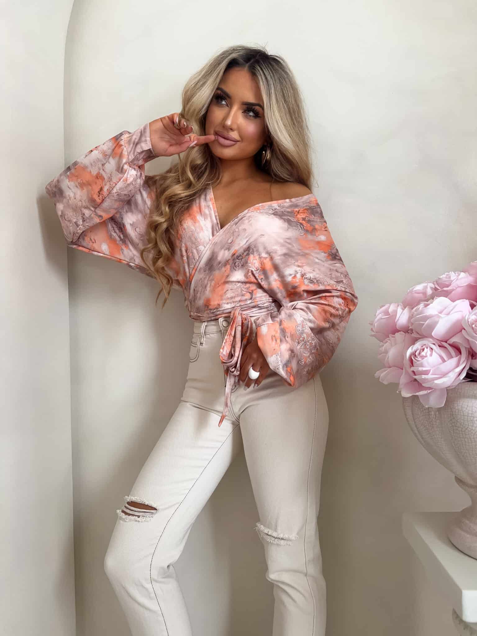 Bluzka Kaira wiązana, którą można nosić dekolt tył/przód.
