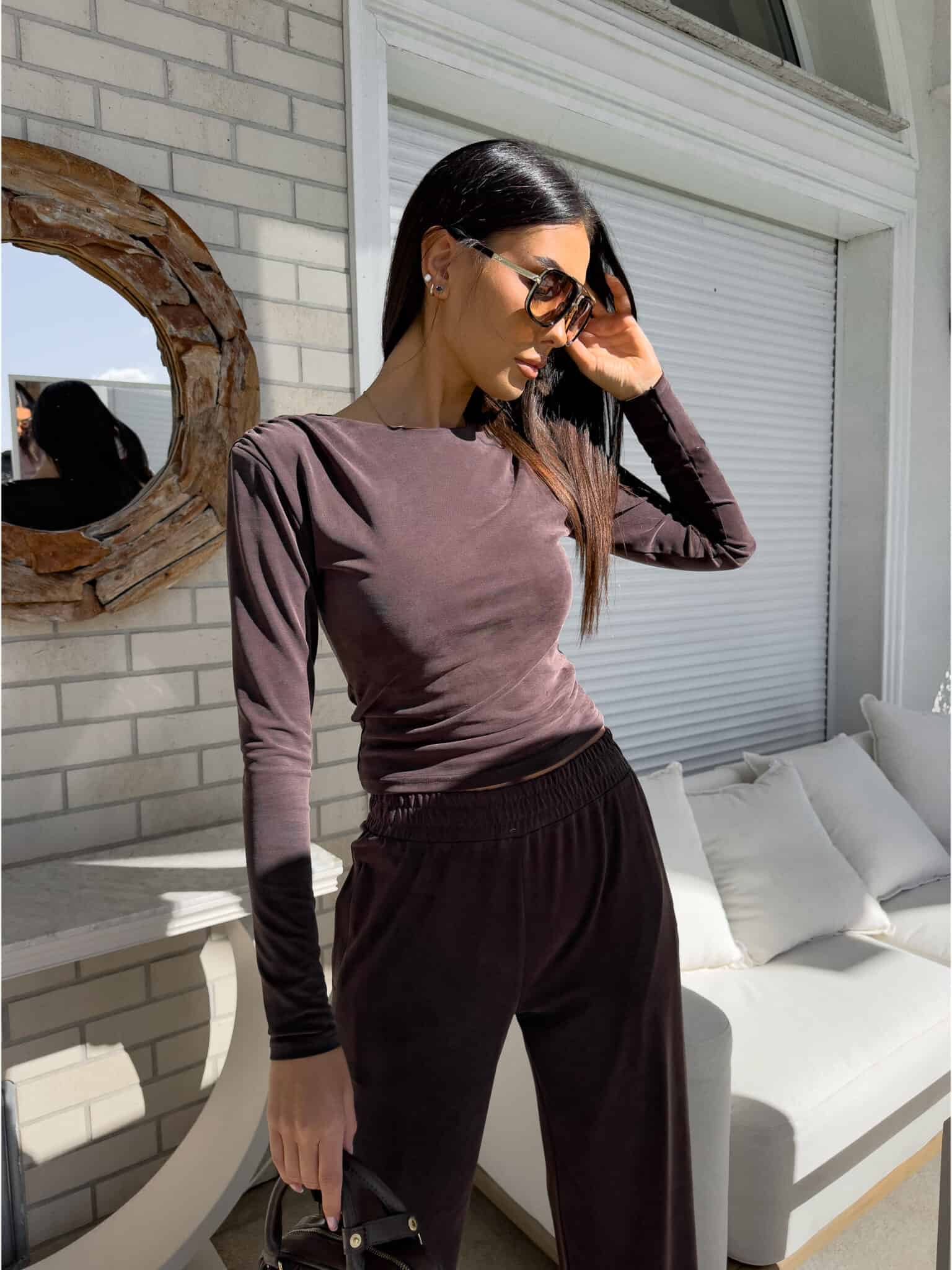 Bluzka Lamia to ponadczasowy model, który sprawdzi się w każdej garderobie. Prosty, dopasowany krój pięknie podkreśla sylwetkę, a długi rękaw i klasyczny, okrągły dekolt nadają jej uniwersalnego charakteru.