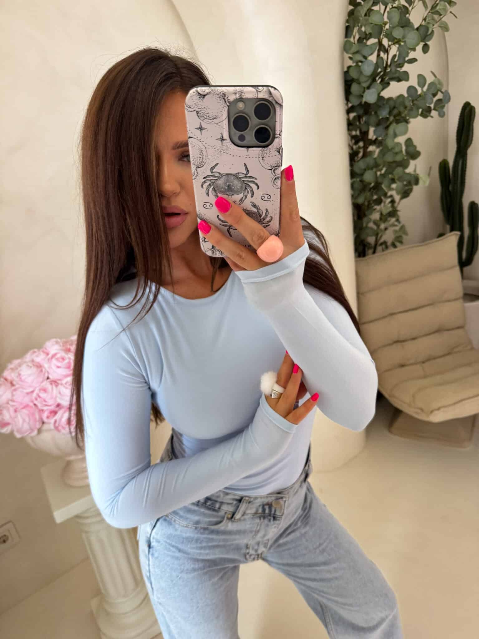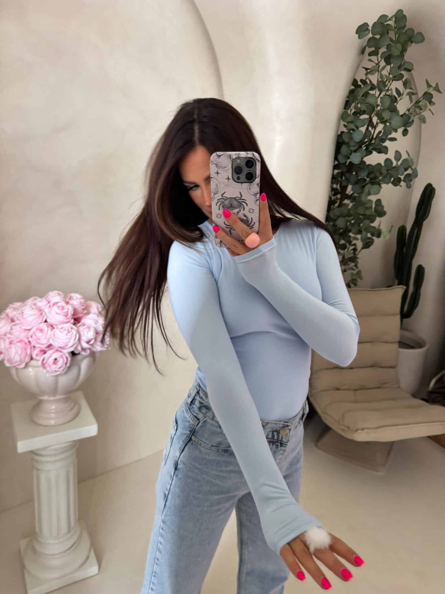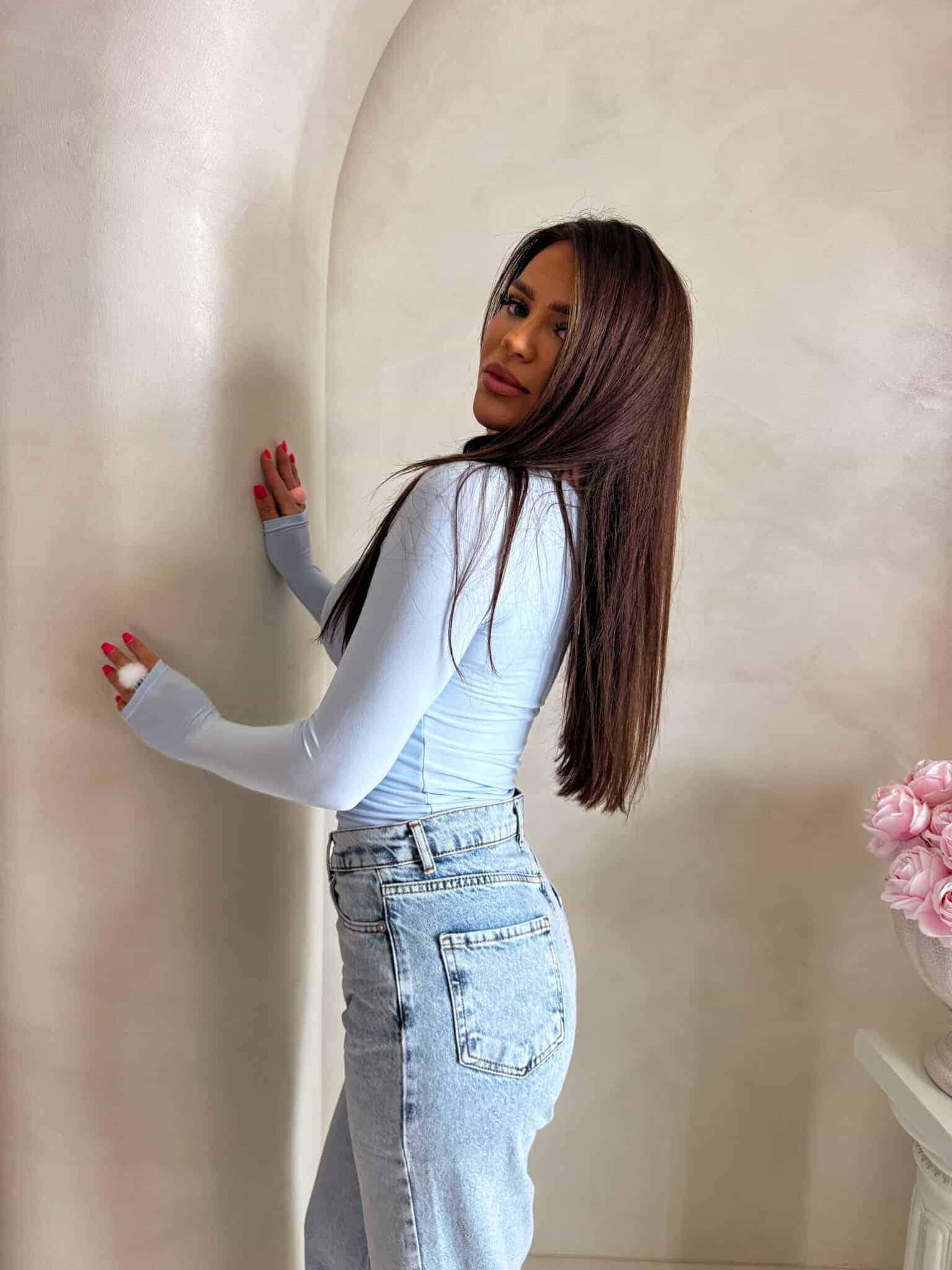 Bluzka LINDA o dopasowanym kroju sprawdzi się jako baza do wielu różnorodnych stylizacji. Charakteryzuje się rękawem typu long sleeve. Przód i tył bluzki wykonany z podwójnego materiału, rękawy z pojedynczego. Produkt lekko się sypie.