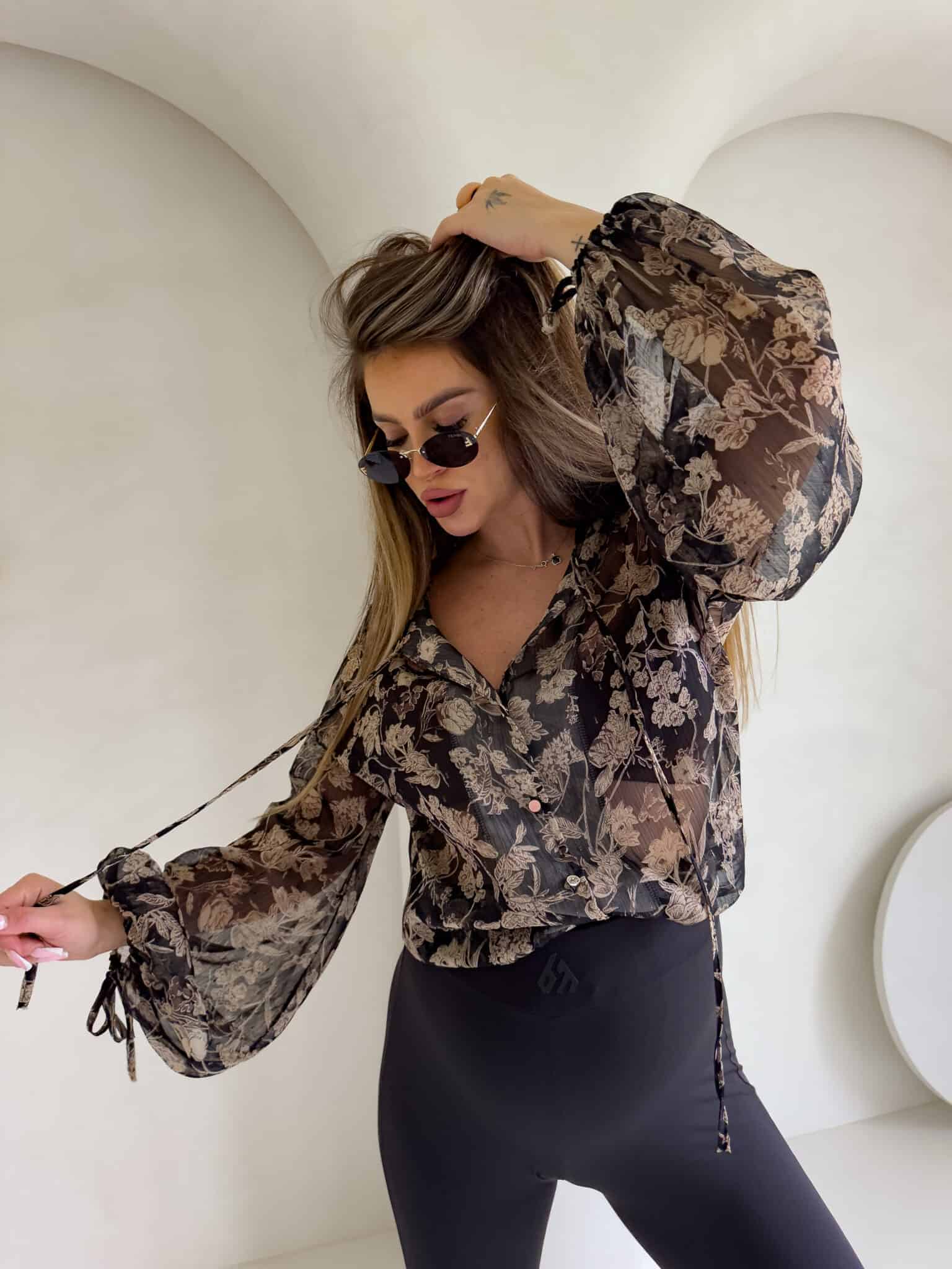 Luźny fason typu oversize to gwarancja wygody i swobody ruchów, a jednocześnie modny akcent w każdej stylizacji. Bluzka posiada dekolt z uroczym wiązaniem na troczki, które dodają całości lekkości i romantycznego charakteru. Bufiaste rękawy zakończone wiązaniem na troczki tworzą efektowną formę. Idealna do jeansów, spodni z wysokim stanem lub spódnic — na co dzień i na specjalne okazje.