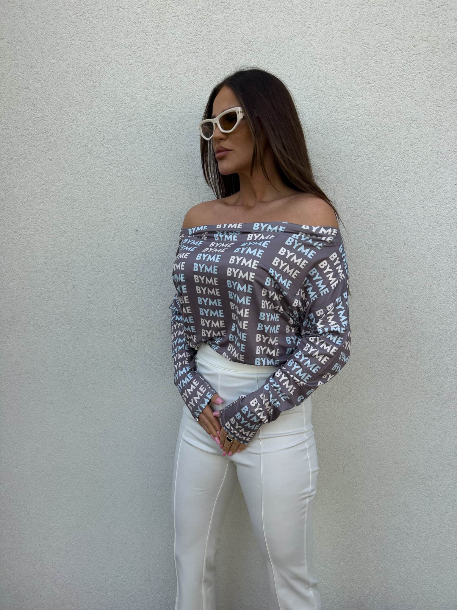 Bluzka z dekoltem typu łódka to model, który subtelnie podkreśla linię szyi. Model posiada luźniejszy fason, który swobodnie układa się na sylwetce, zapewniając wygodę i pełen komfort noszenia przez cały dzień. Miękko opadający materiał tworzy naturalny, delikatny efekt asymetrii – zmysłowo osuwa się na jedno lub oba ramiona.