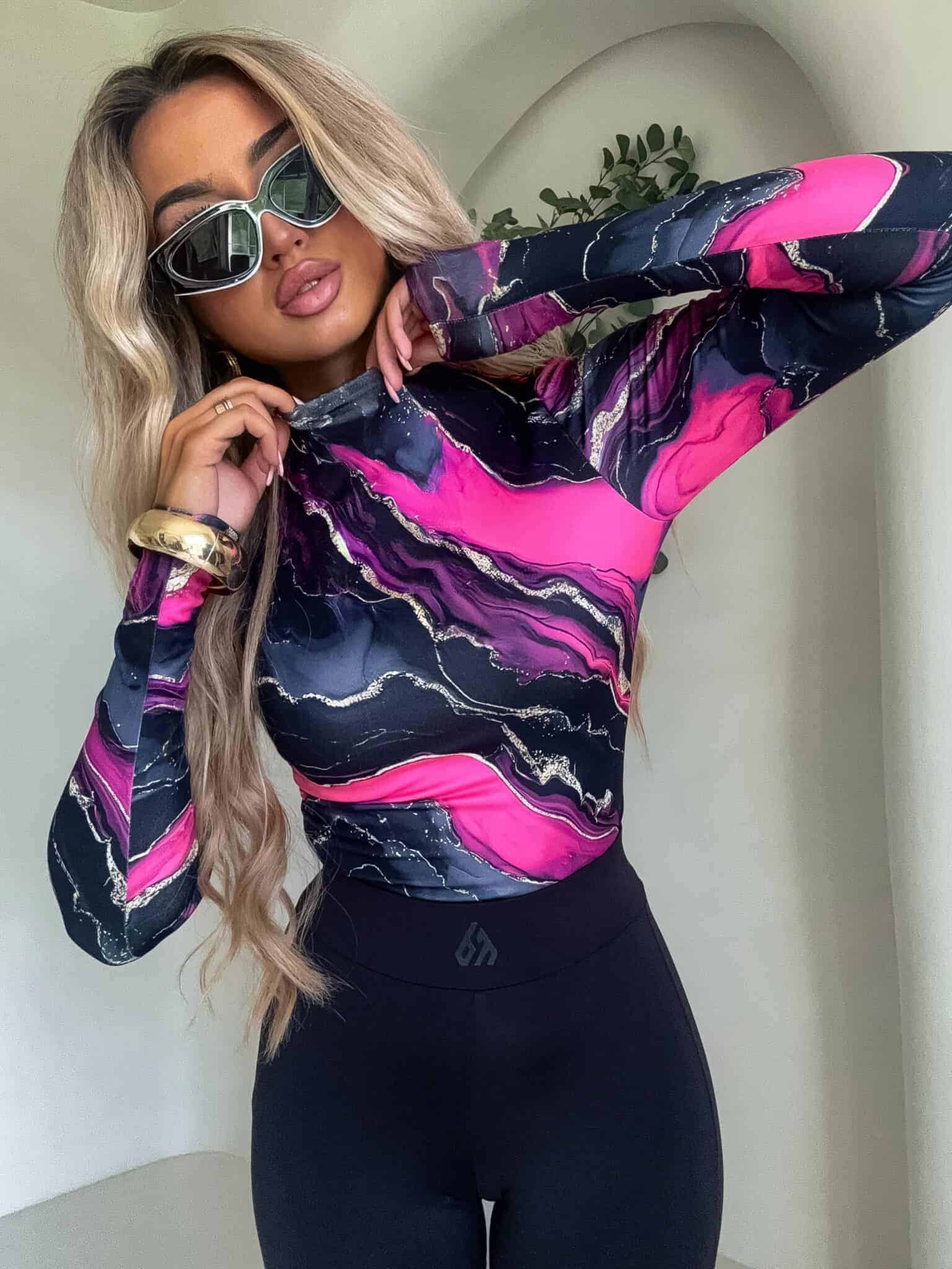 Bluzka SKIN o dopasowanym kroju sprawdzi się jako baza do wielu różnorodnych stylizacji. Przód i tył z delikatną podszewką, dzięki której nic nie prześwituje. Charakteryzuje się rękawem typu long sleeve. Jej krój zagwarantuje komfort i wygodę noszenia. Delikatna stójka.