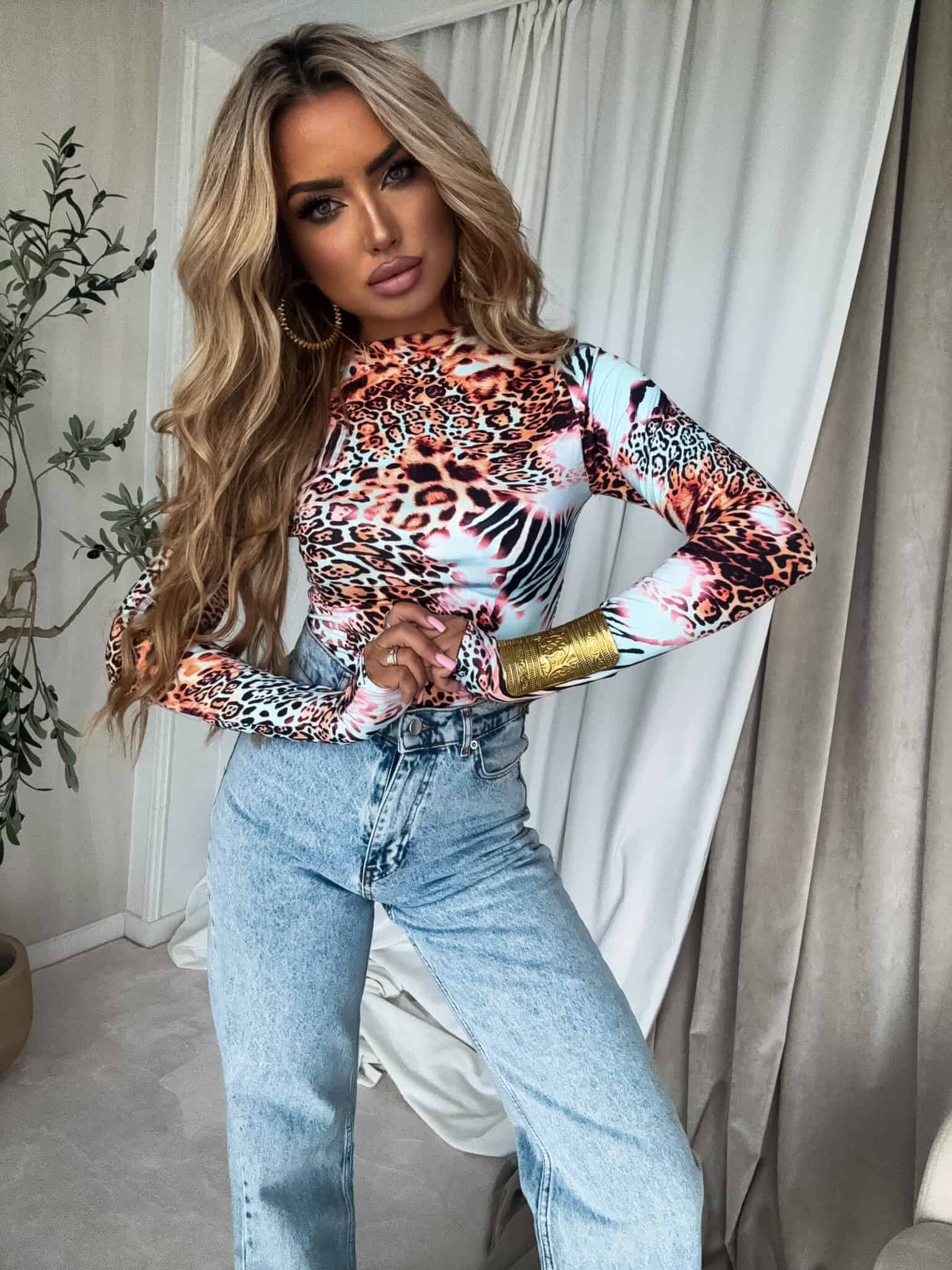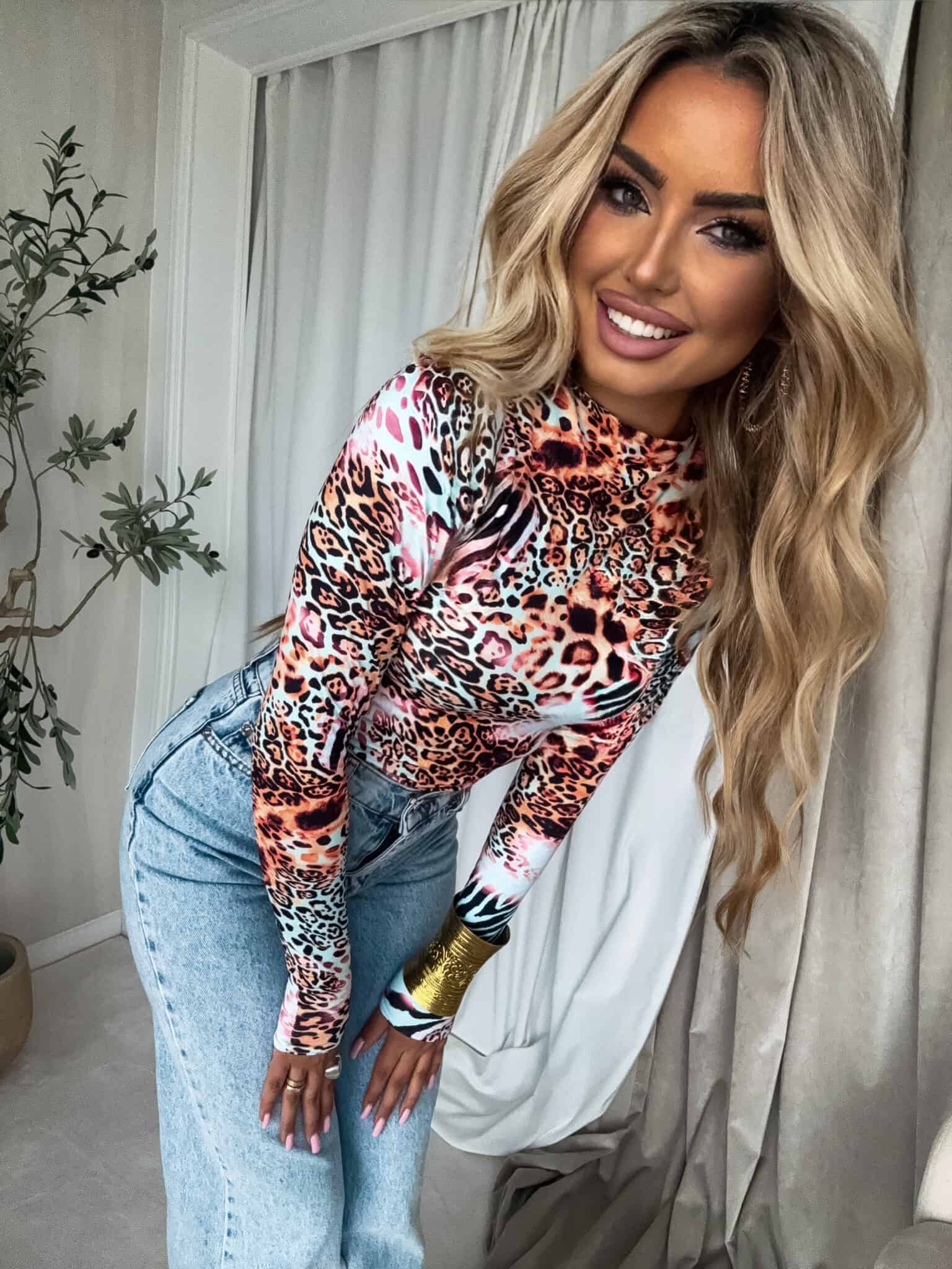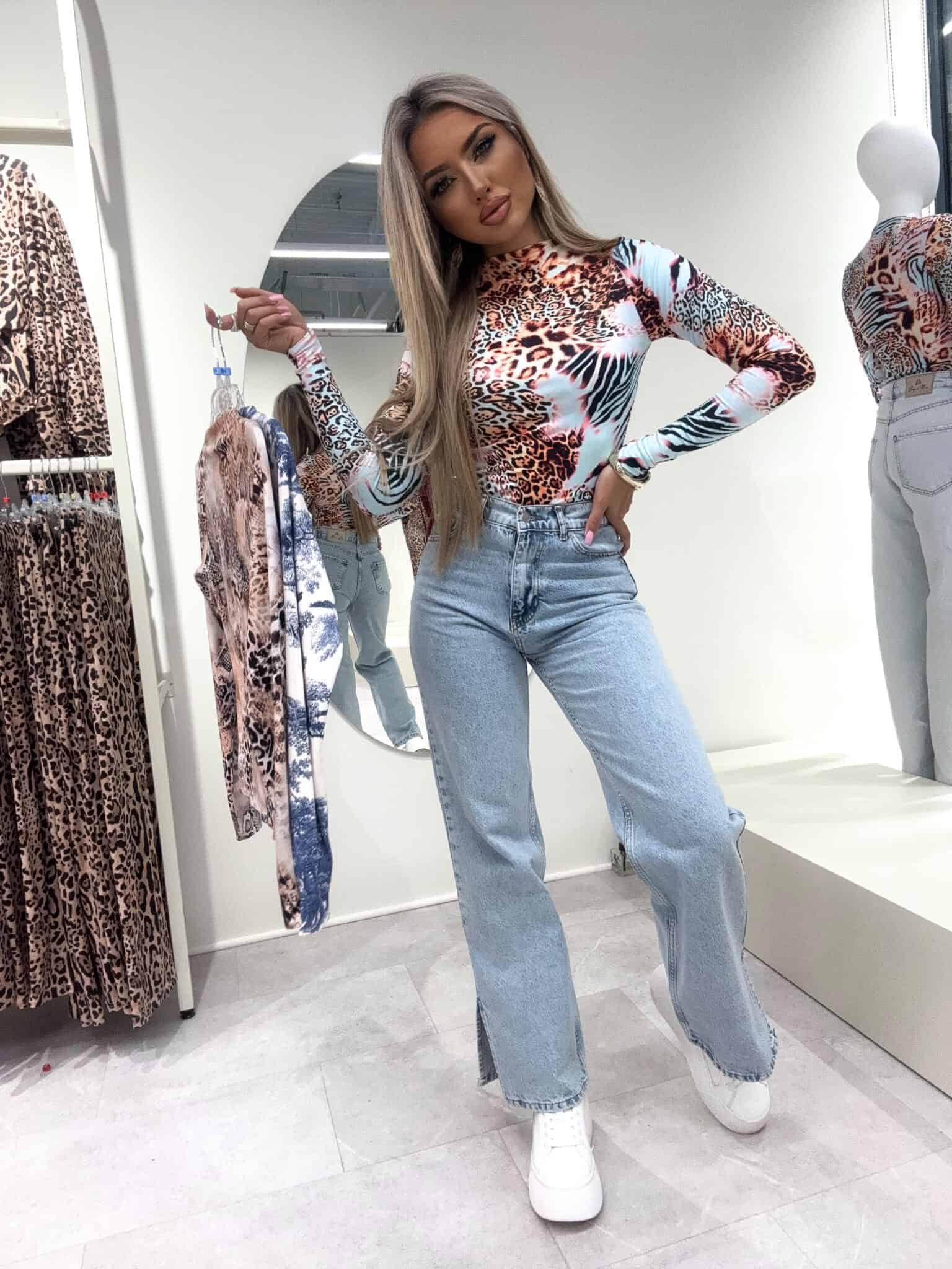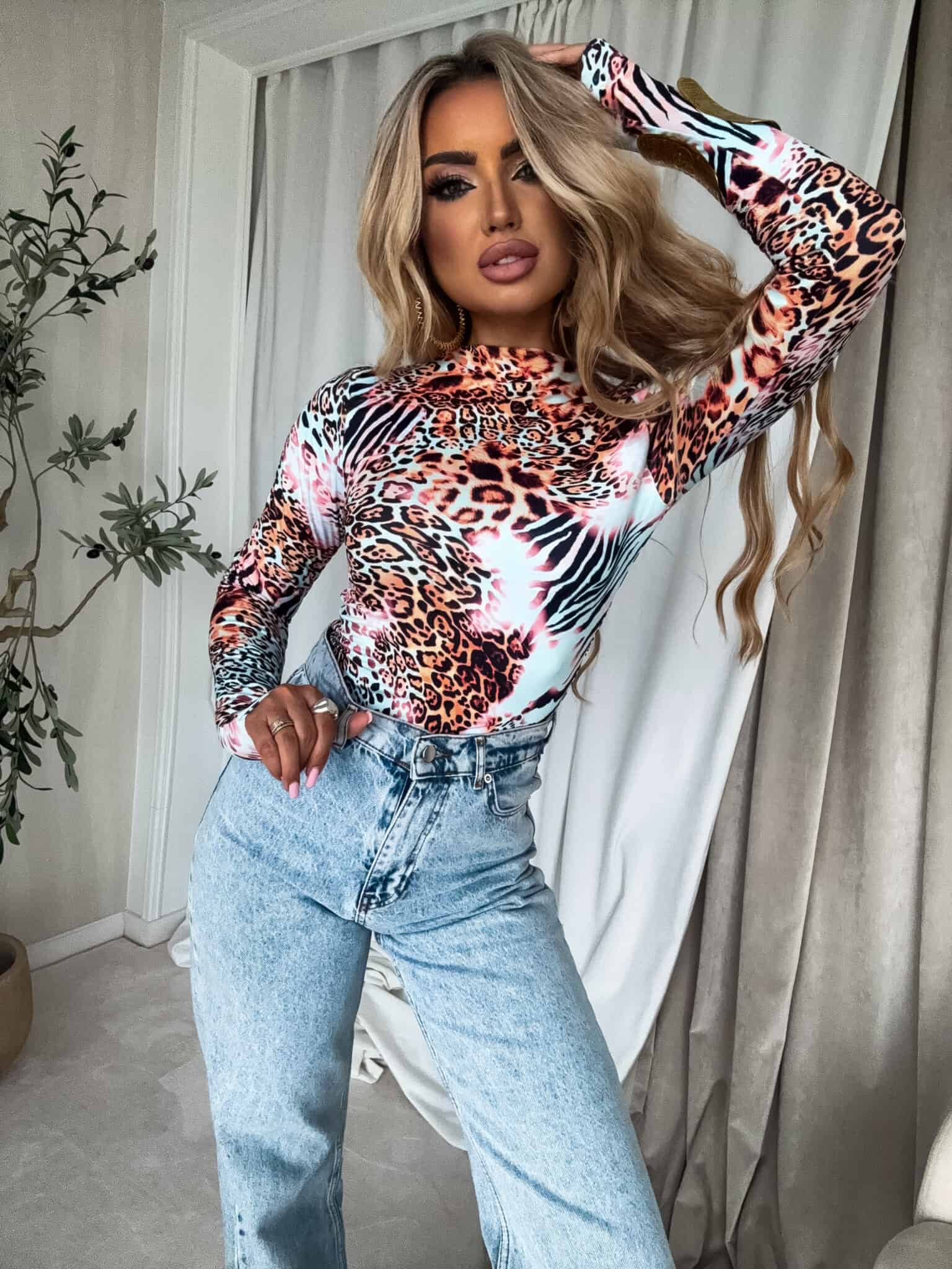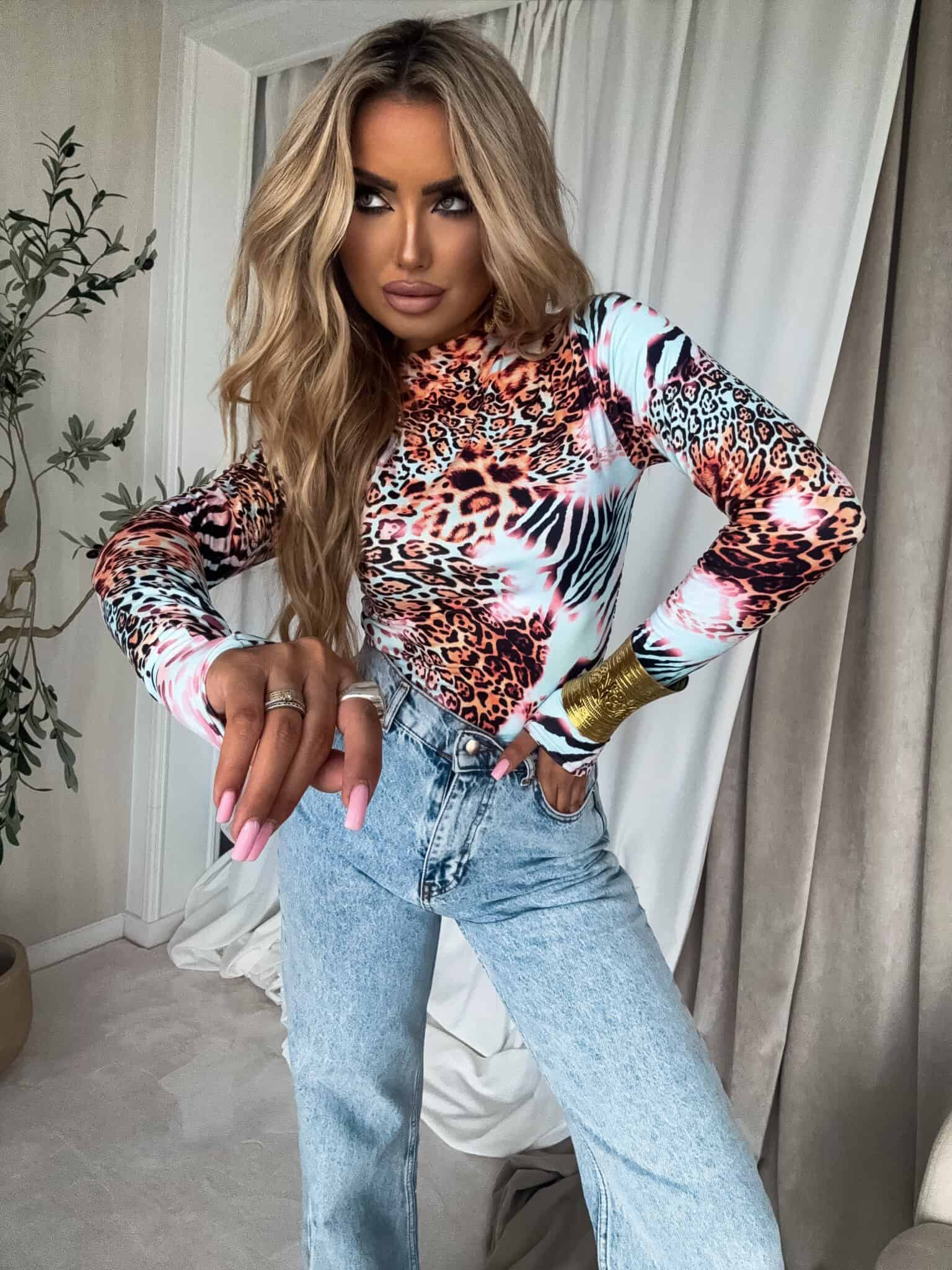 Bluzka SKIN print animal – miętowo-pomarańczowy