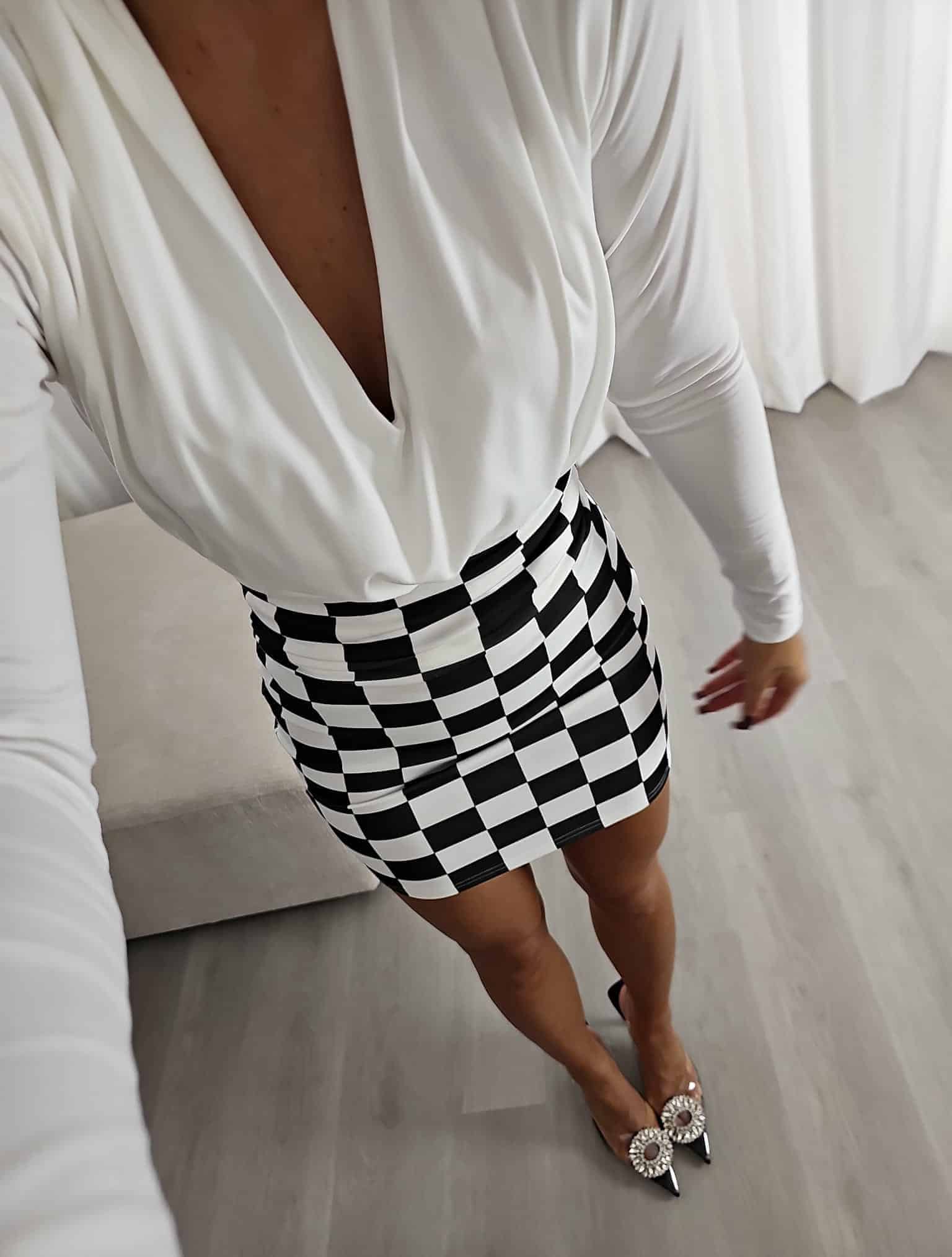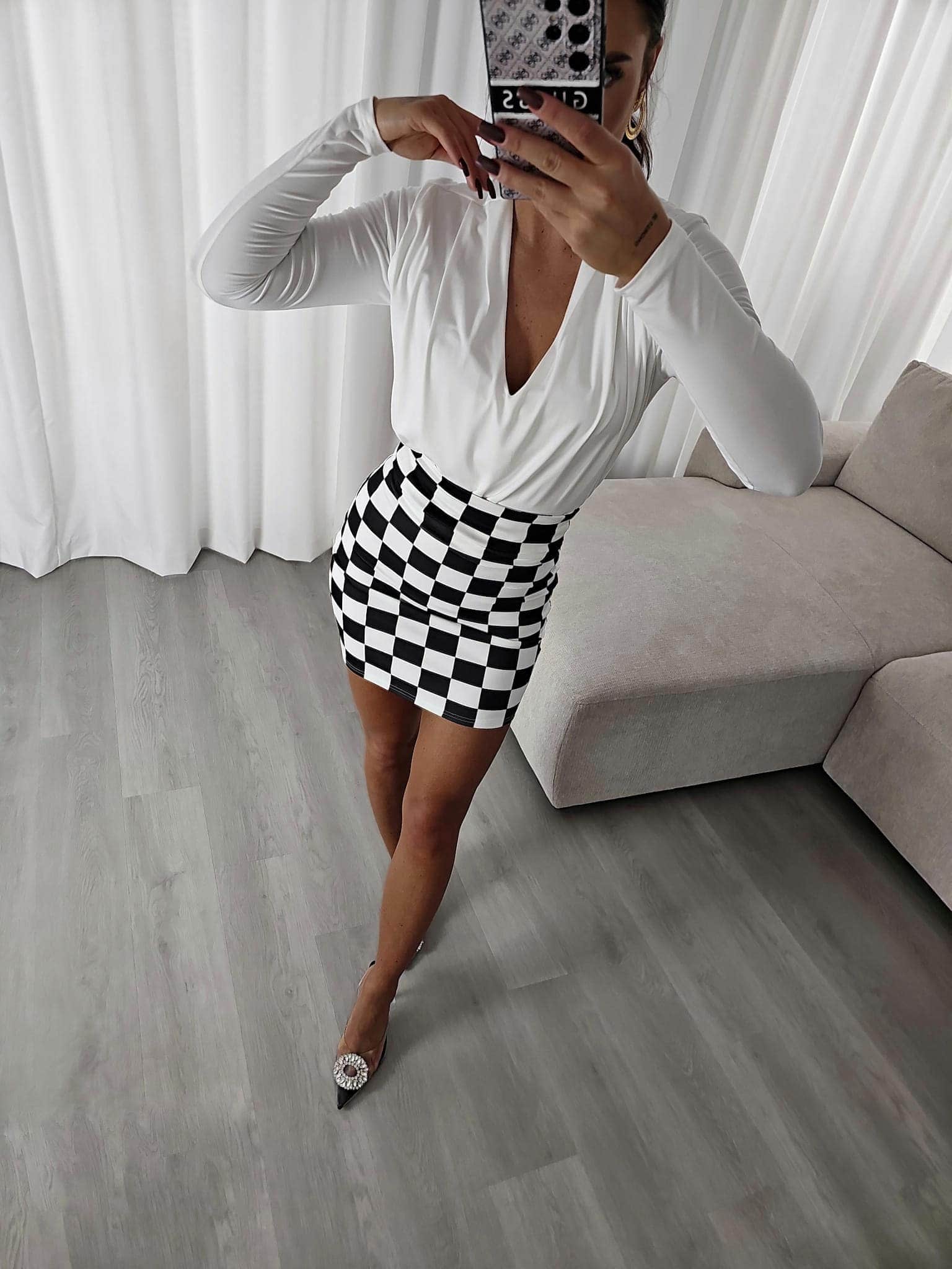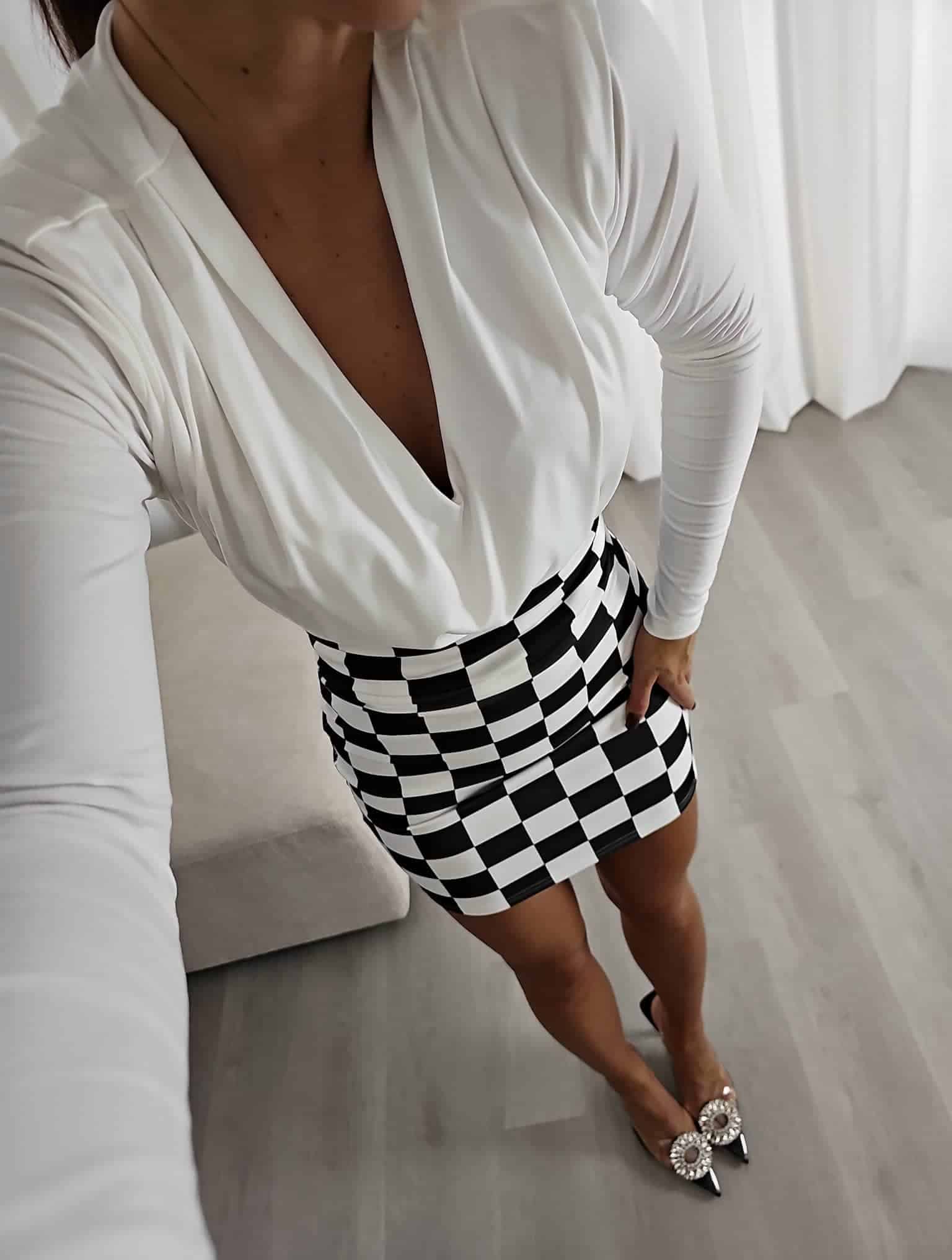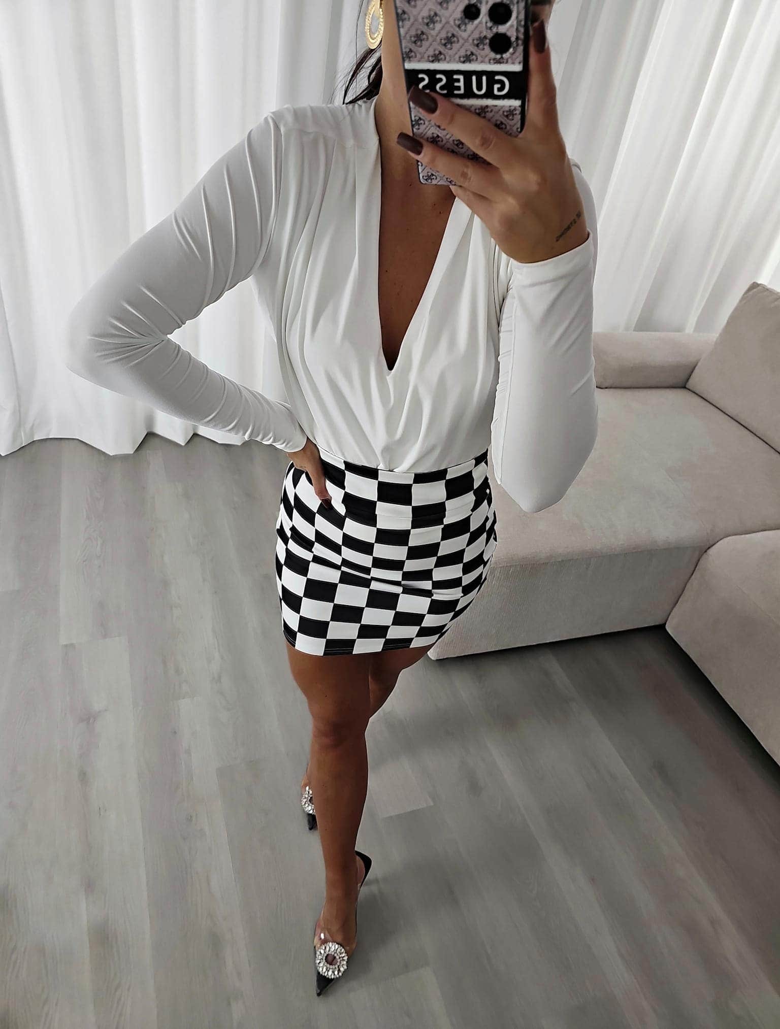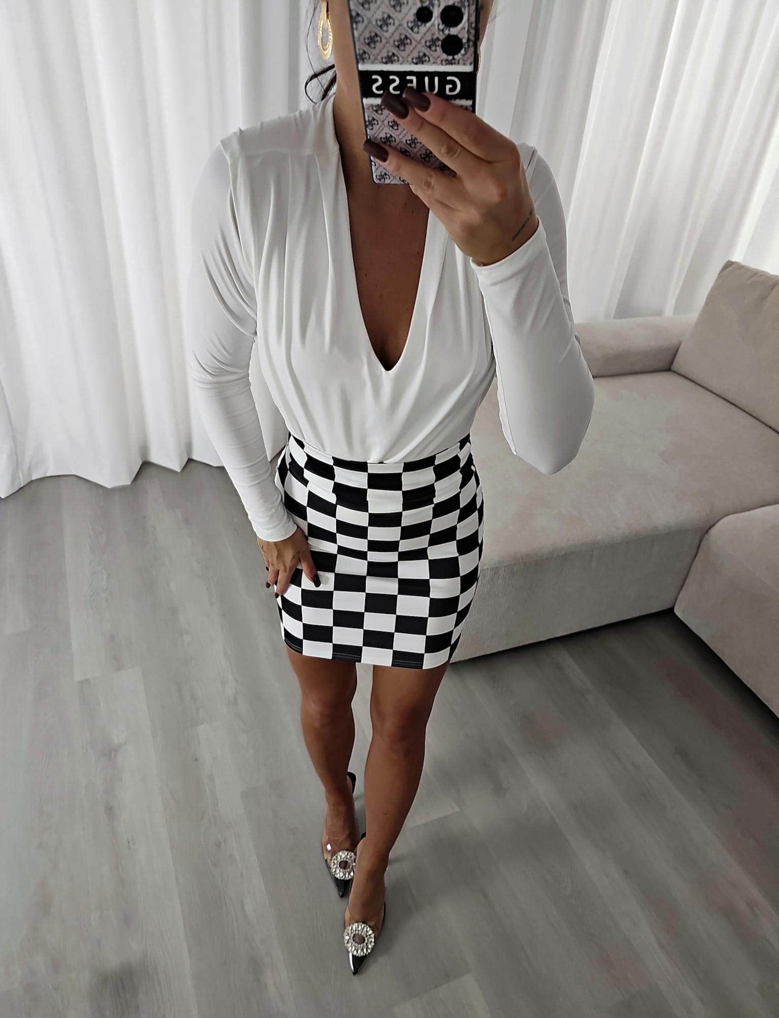 Bluzka Spice jest wykonana z podwójnego miłego w dotyku materiału. Posiada dekolt w kształcie litery V, który pięknie podkreśli jego okolice. Przód marszczony i luźniejszy.