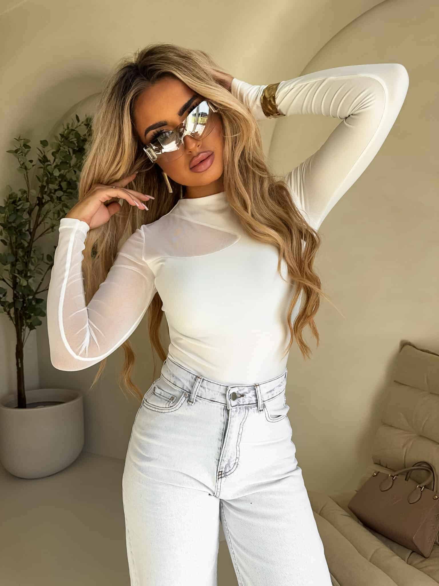 Dopasowana bluzka z długim rękawem wykonana z elastycznego, przyjemnego w dotyku materiału, który idealnie przylega do ciała, podkreślając atuty sylwetki.