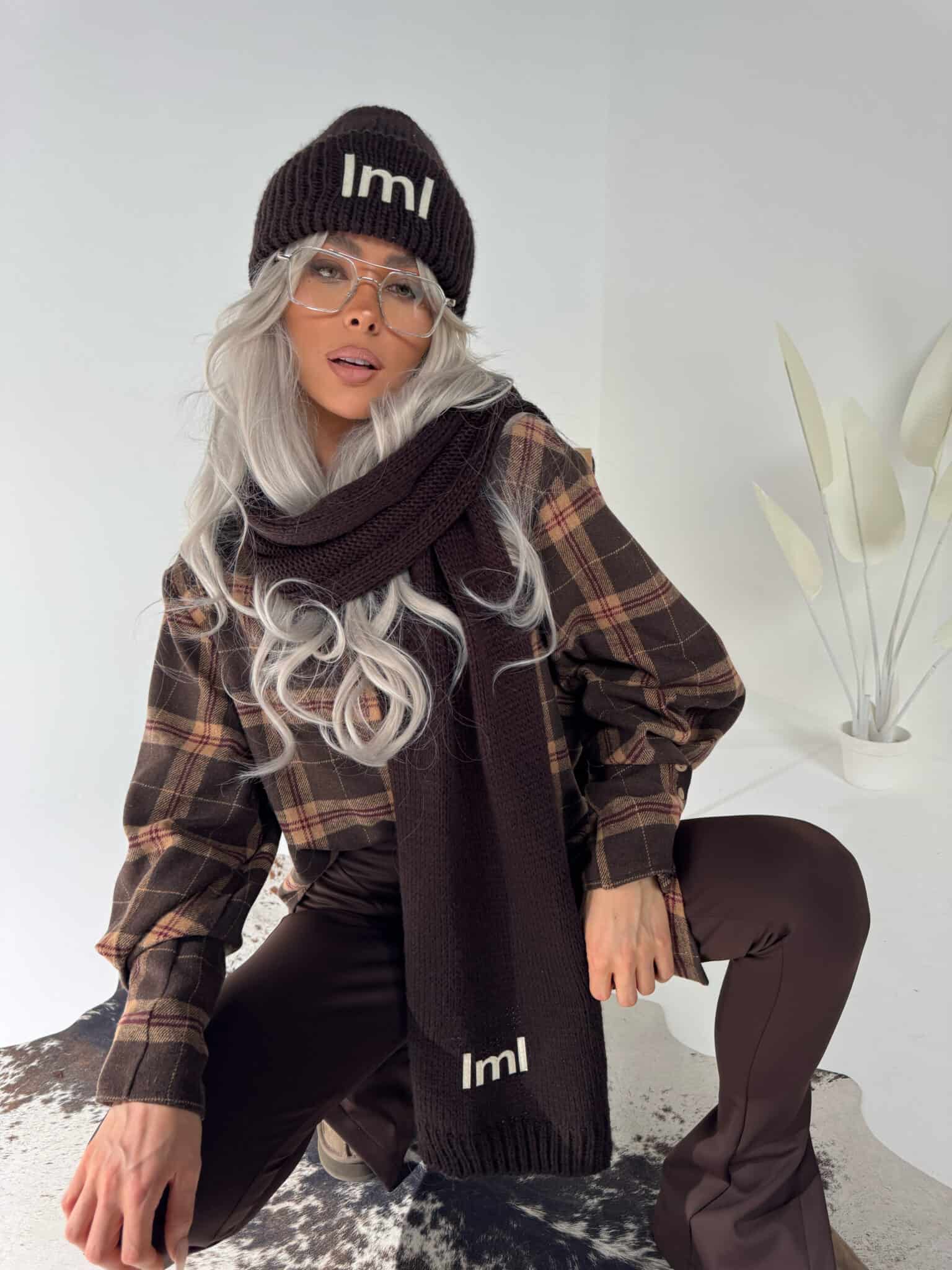 Grubo dziergana czapka z wywinięciem, wykończona filcowym logo lml naszytym z przodu. Trzyma kształt, dobrze leży i dodaje charakteru każdej stylizacji. Wystarczy wrzucić ją na głowę i gotowe – prosto, ale z efektem.Skład: 10% moher 30% wełna merino 60% akryl