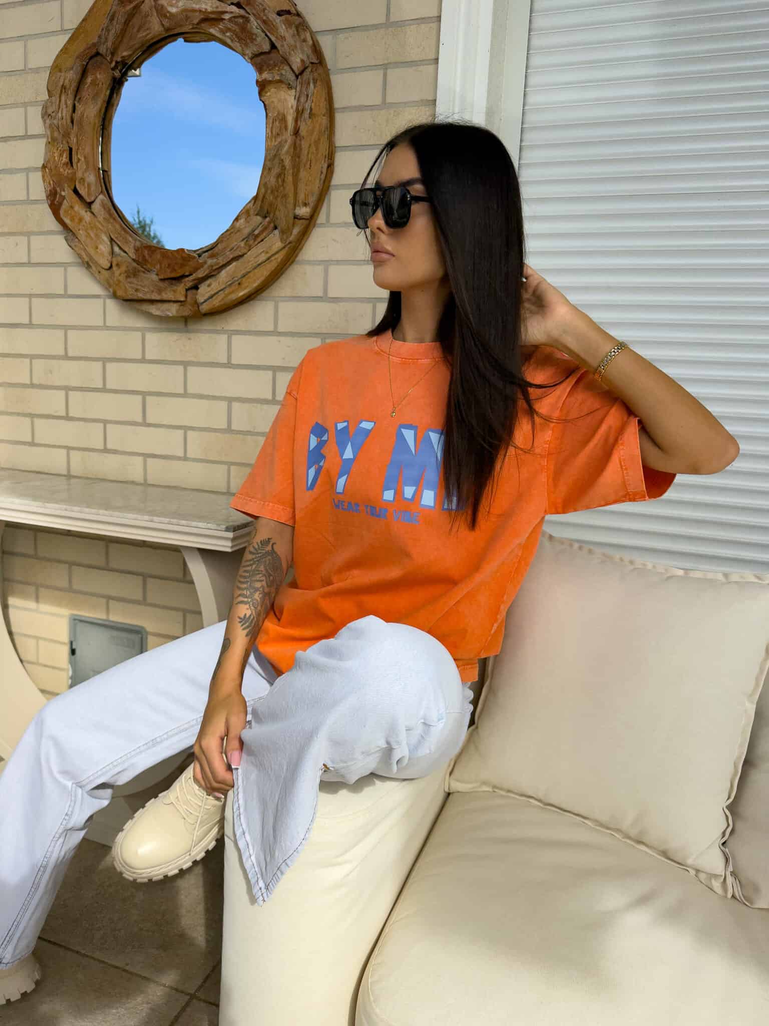 Dekatyzowany t-shirt BALEN - pomarańczowy