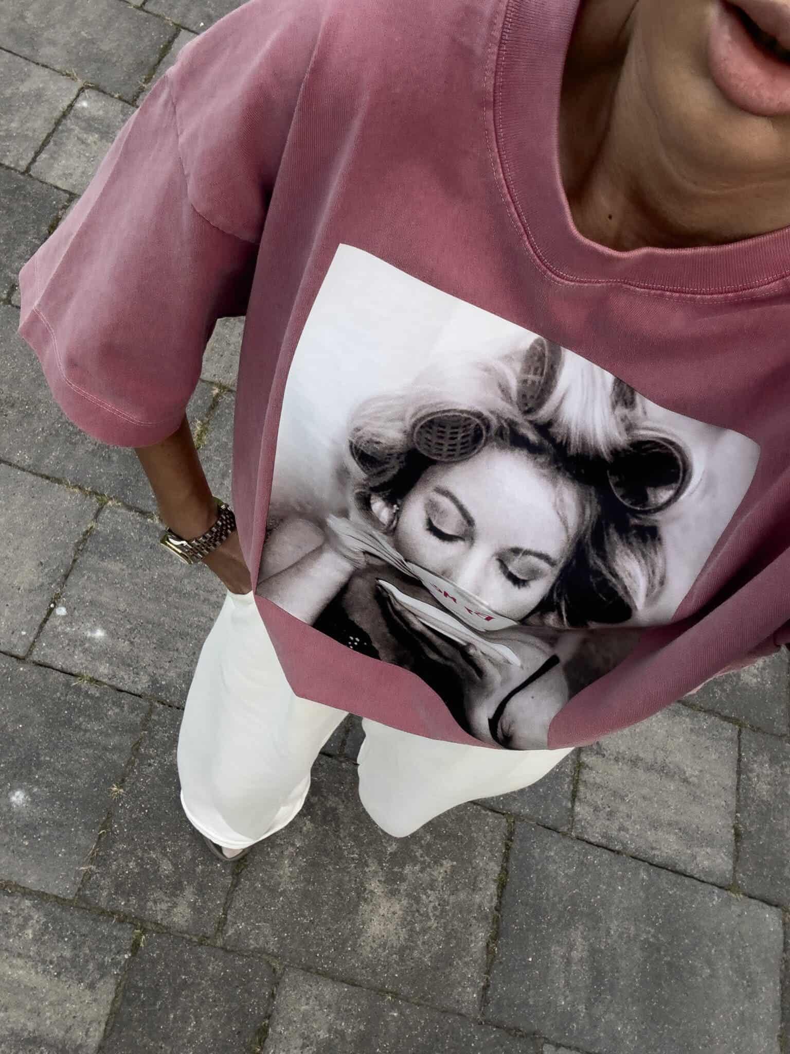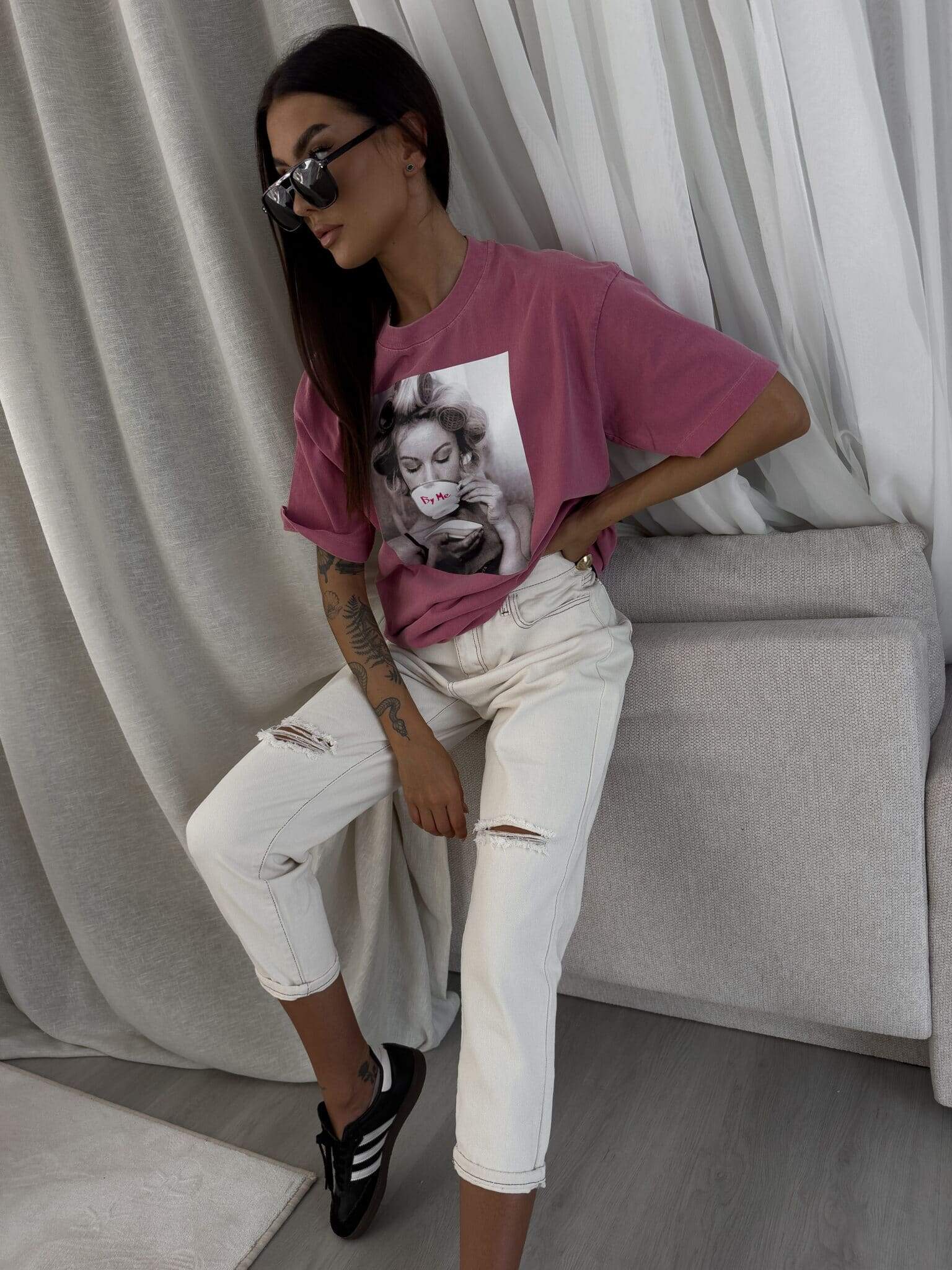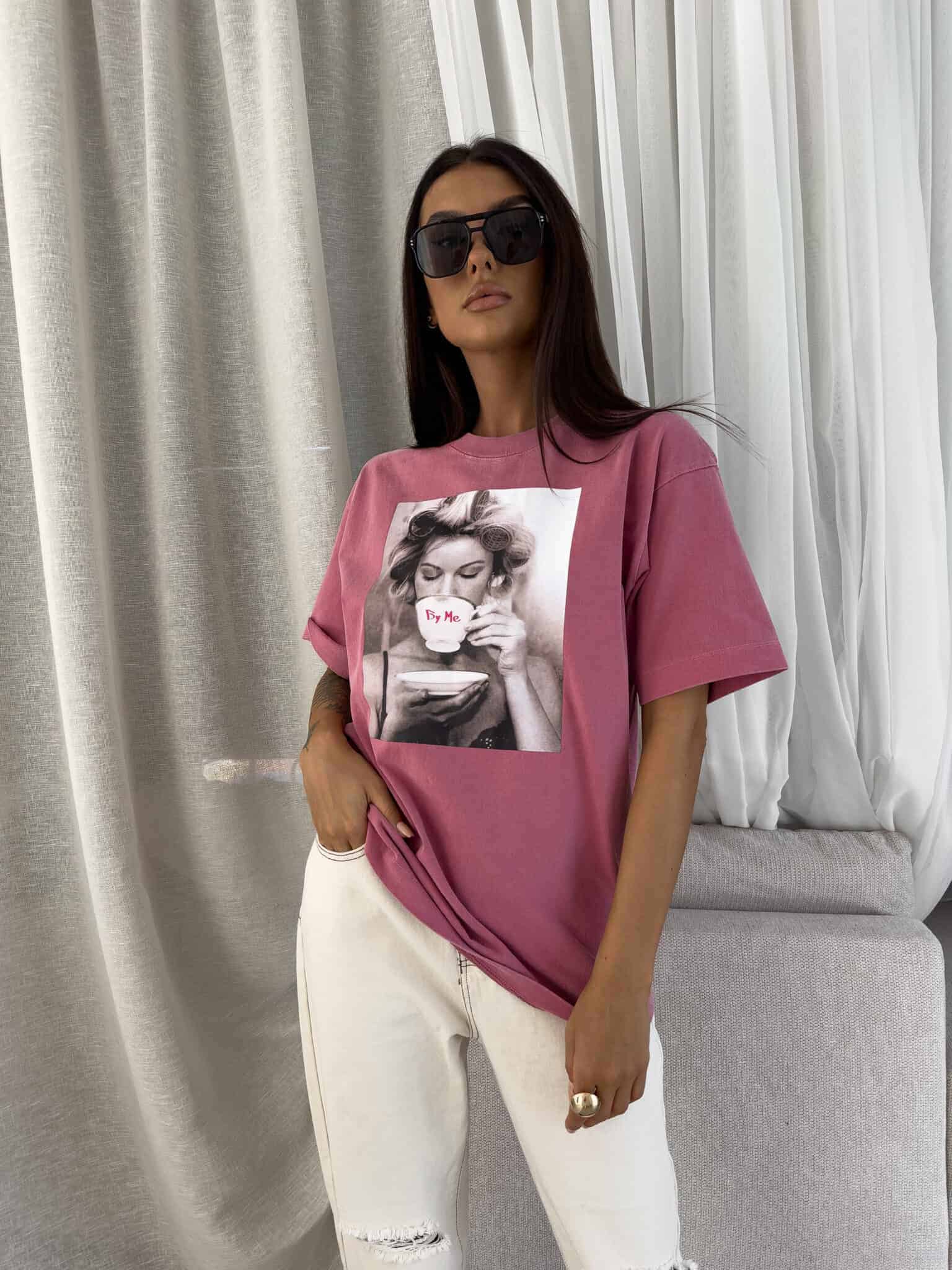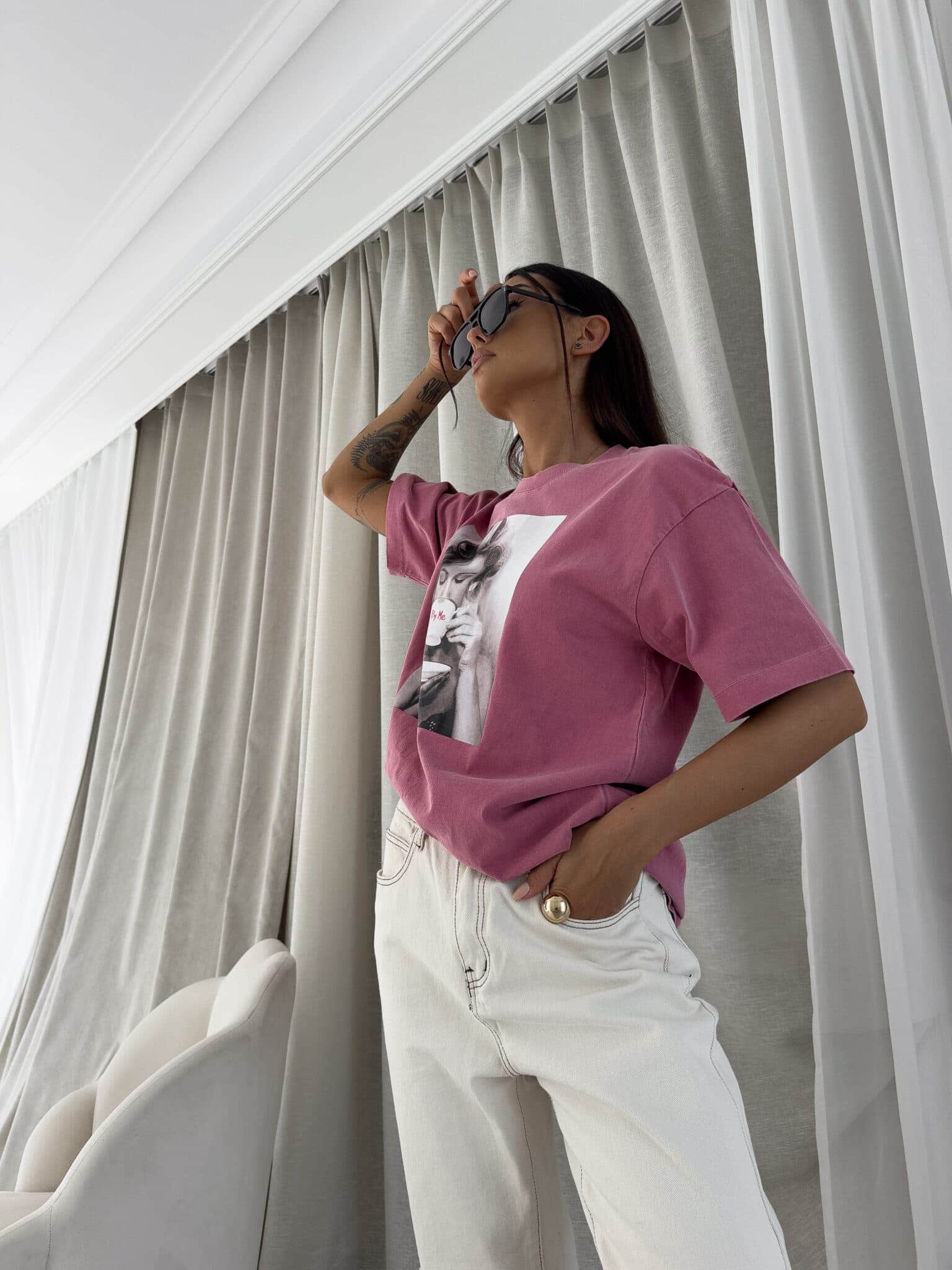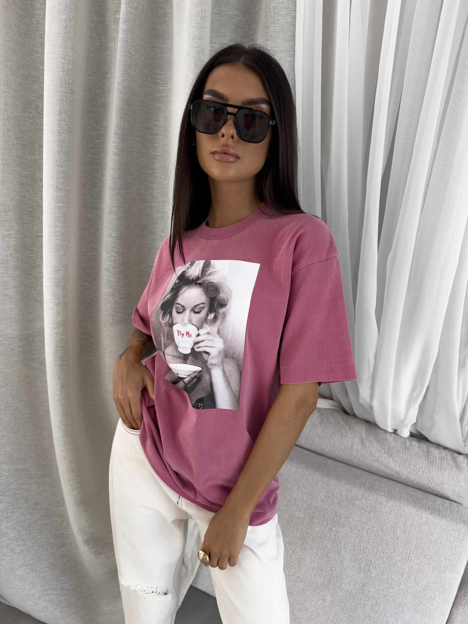 Dekatyzowany t-shirt ROLLER – brudny róż