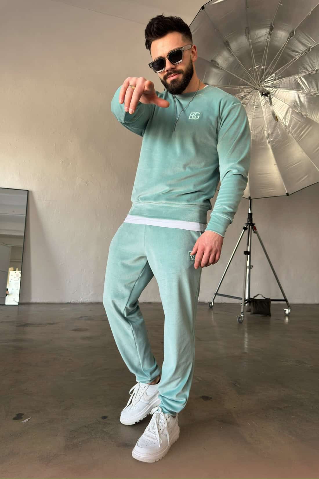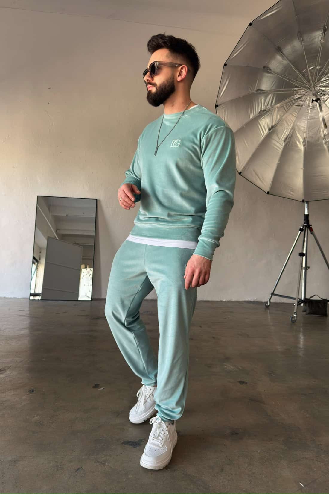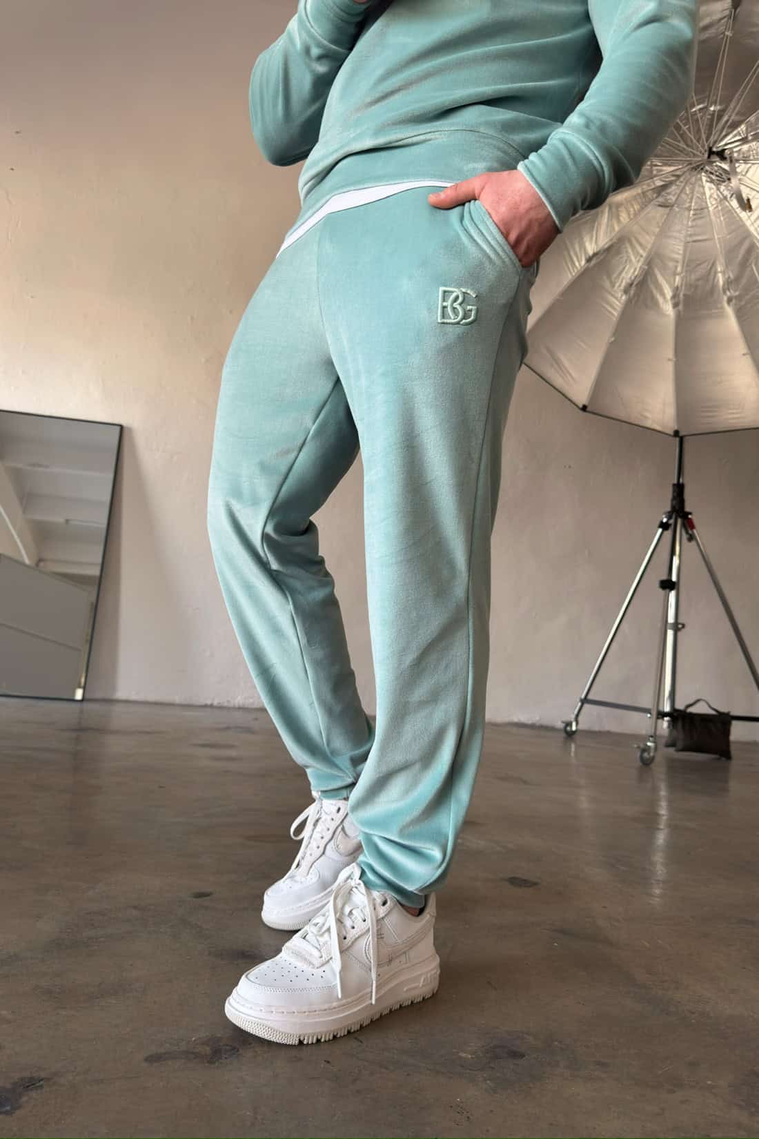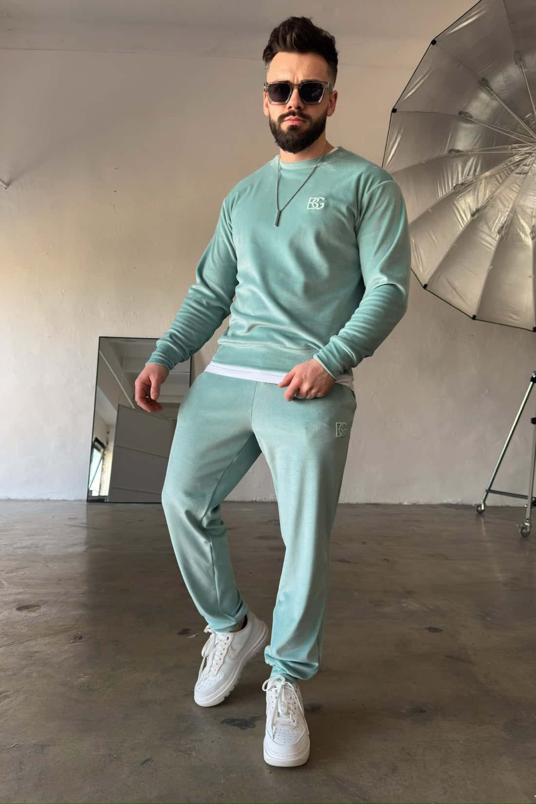 Opis produktu: Dres z weluru BG VANDAL. Bluza oraz spodnie zdobione haftowanym logo marki BG Brandenburg Couture w tonacji materiału. Bluza bez kaptura. Spodnie posiadają gumkę w pasie oraz sznurek.