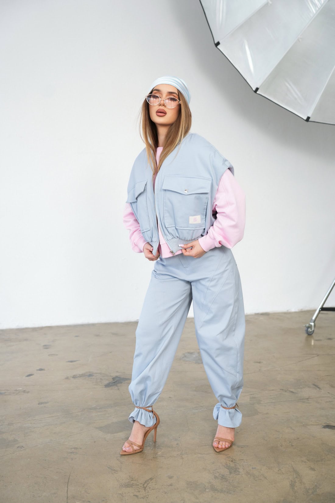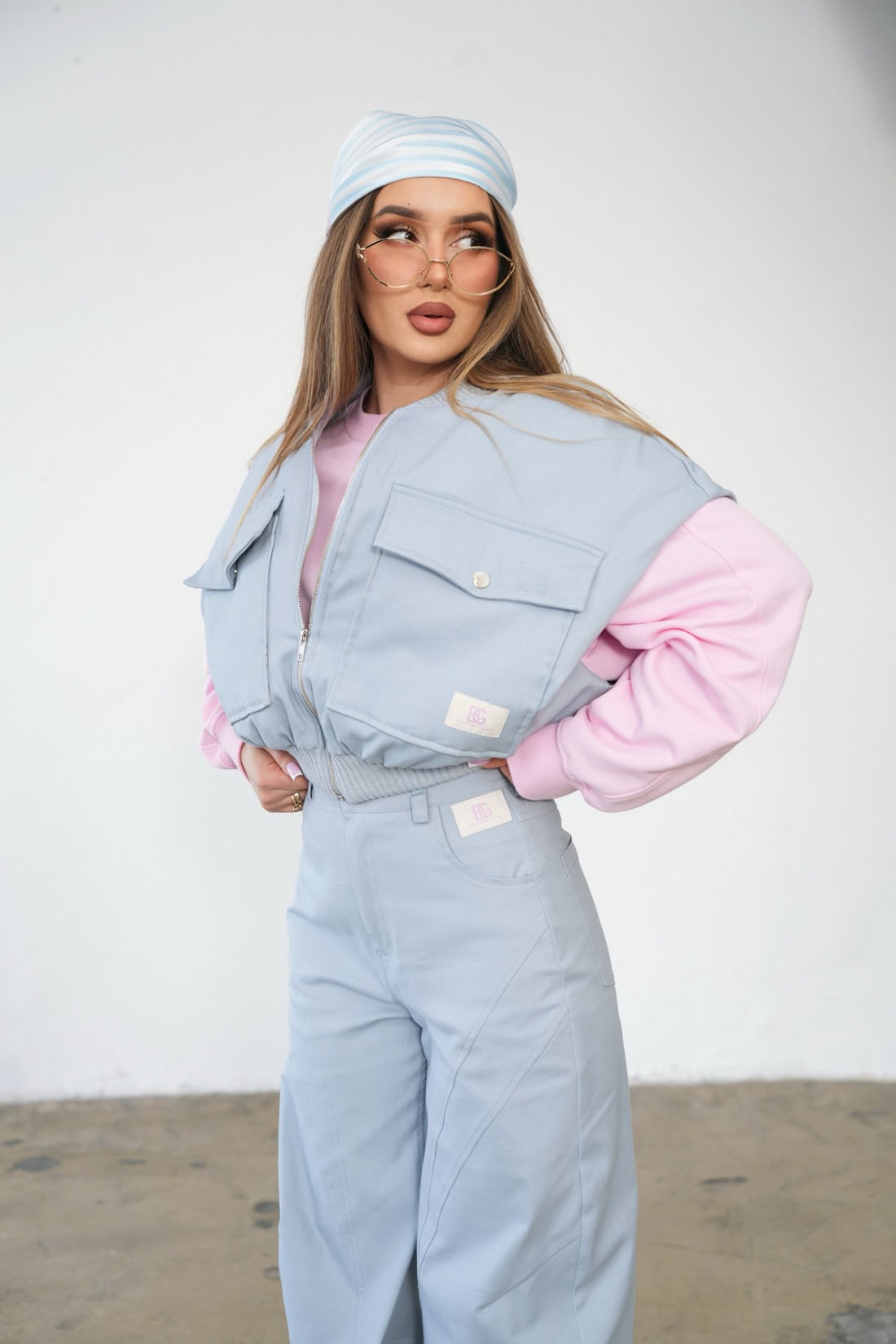 Opis produktu: Kamizelka damska BG GEORGIA z bawełnianego jeansu. Kamizelka na podszewce z lekkim ocieplaczem. Na przodzie dwie duże kieszenie zapinane na napy. Na lewej kieszeni ozdobna naszywka z logo marki BG Brandenburg Couture. Kamizelka wykończona bawełnianymi ściągaczami.