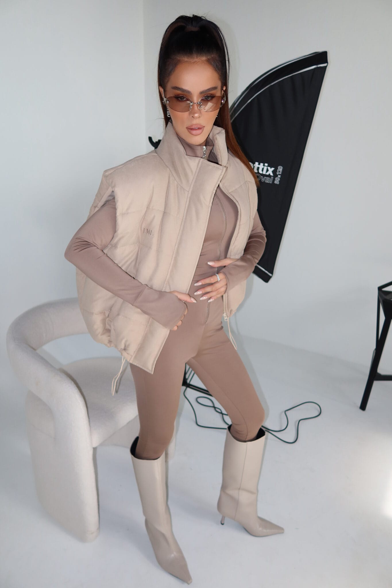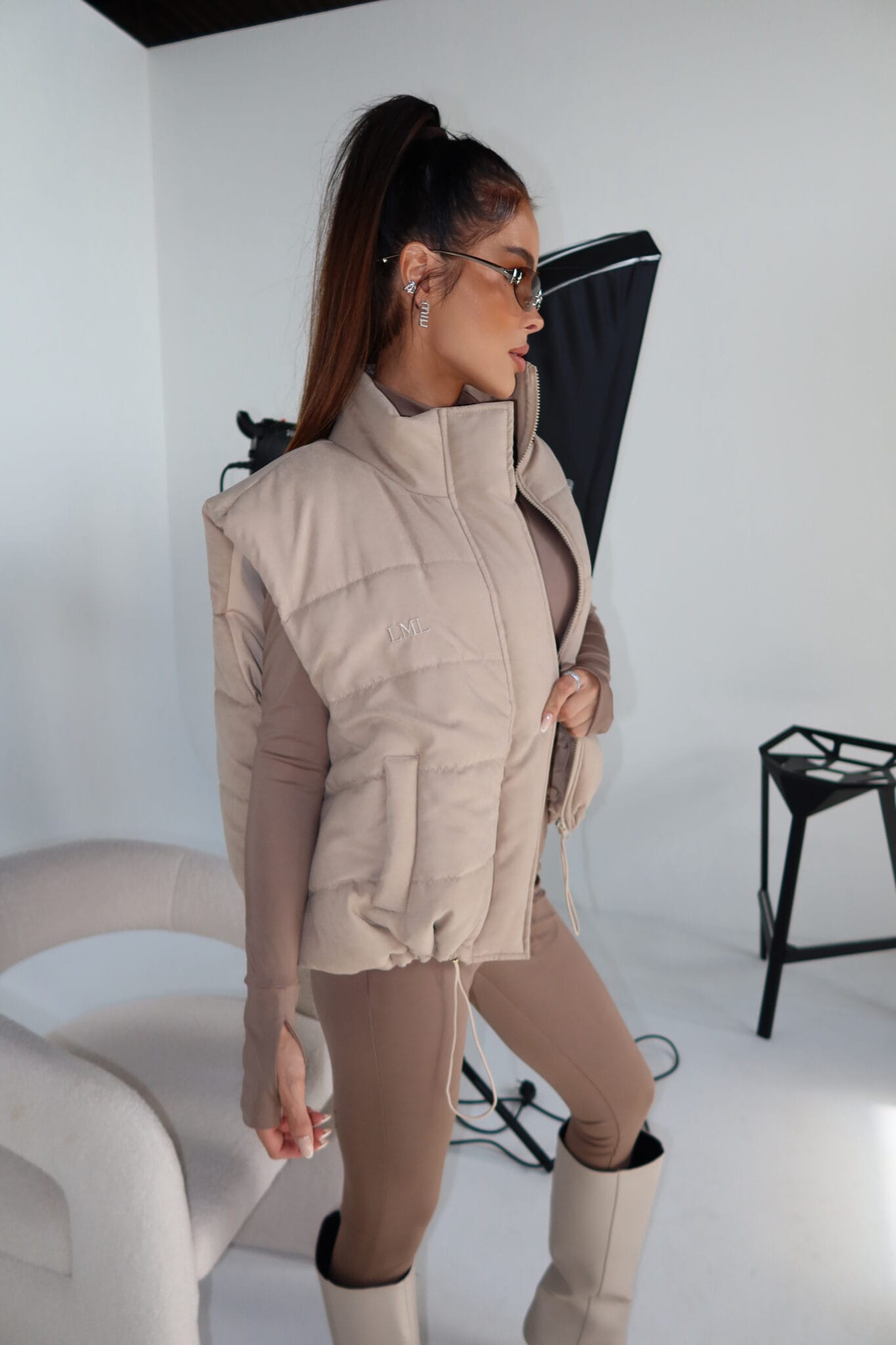 Pikowany bezrękawnik o przeskalowanym fasonie, który robi całą stylizację. Wyraźnie zabudowany kołnierz typu stójka dodaje charakteru i chroni przed chłodem. Model zapinany na zamek, z bocznymi kieszeniami i haftowanym logo LML z przodu. Wypełnienie nadaje mu miękkości i objętości, a zaokrąglony dół z regulacją pozwala dopasować długość i kształt do sylwetki. Idealny do noszenia na dopasowane bazy – tworzy mocny, streetowy look. Pasuje od rozmiaru XS do XL.Skład: 90% poliester 10% nylon