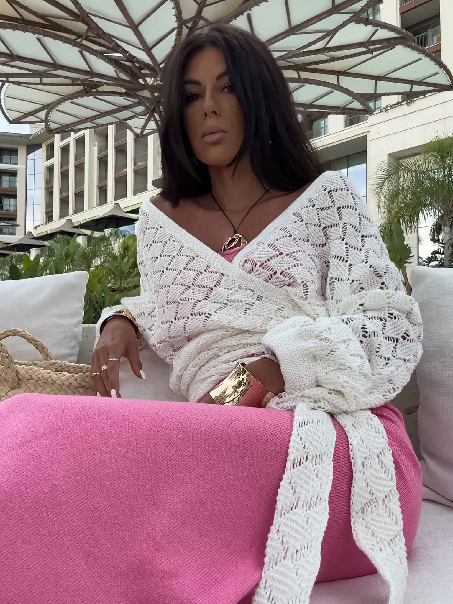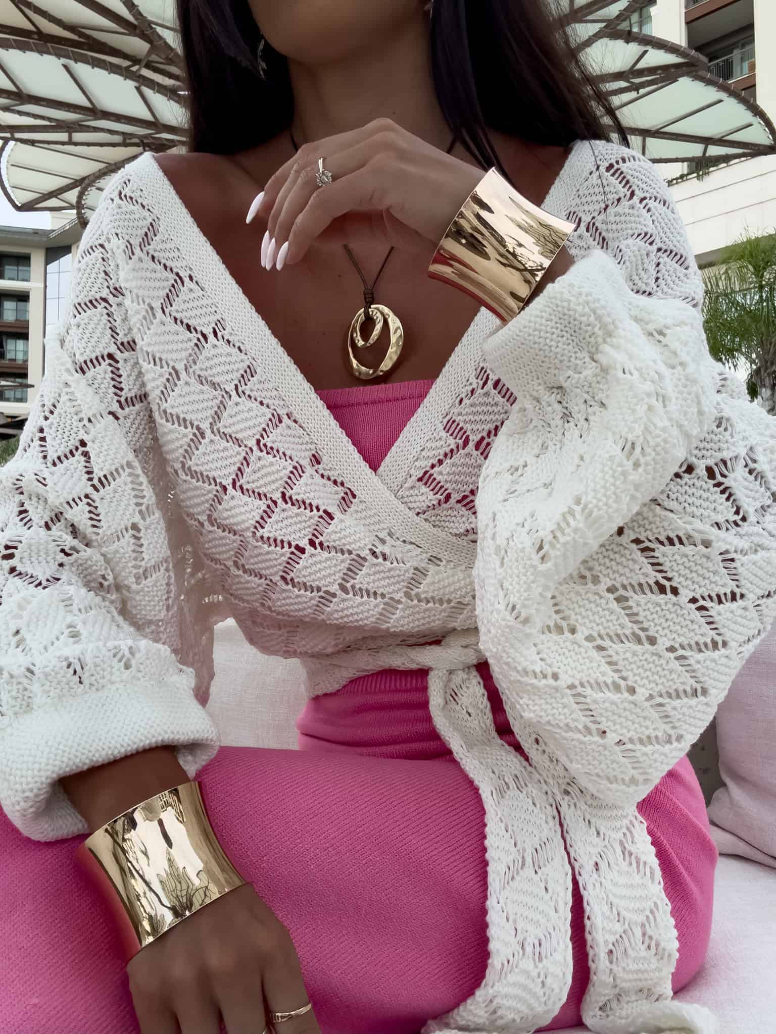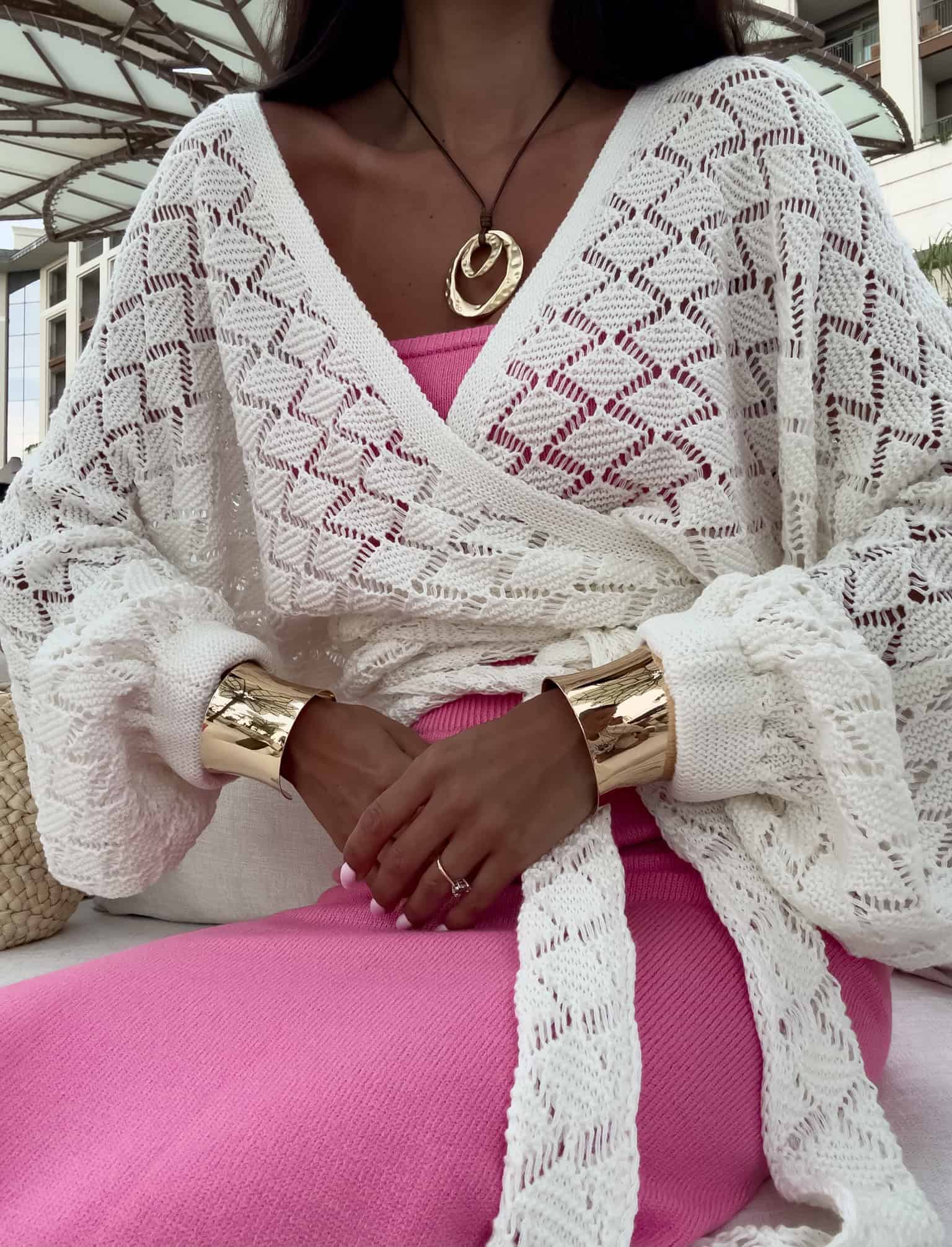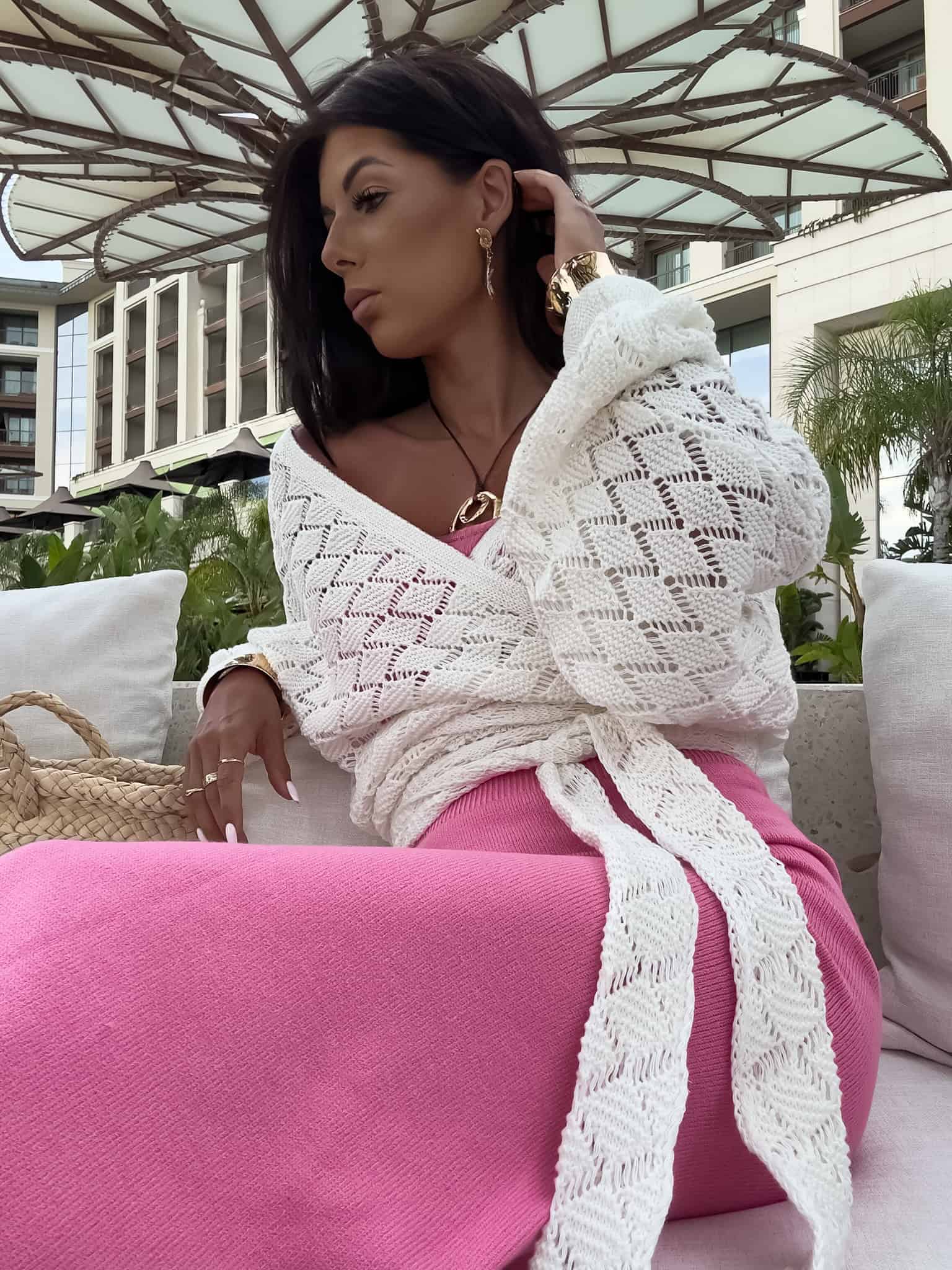 Kimono to stylowy i lekki element garderoby, który łączy w sobie elegancję z komfortem. Kimono jest przewiązywane, co pozwala na dopasowanie go do sylwetki oraz dodaje mu swobody w stylizacji. Można go nosić zarówno z przodu, jak i z tyłu, co daje szerokie możliwości noszenia i dostosowania do różnych stylizacji. Długi rękaw zakończony gumką sprawia, że kimono jest wygodne i dobrze trzyma się na ramionach, dodając całości eleganckiego wyglądu. Idealne do noszenia na co dzień lub na bardziej formalne okazje.