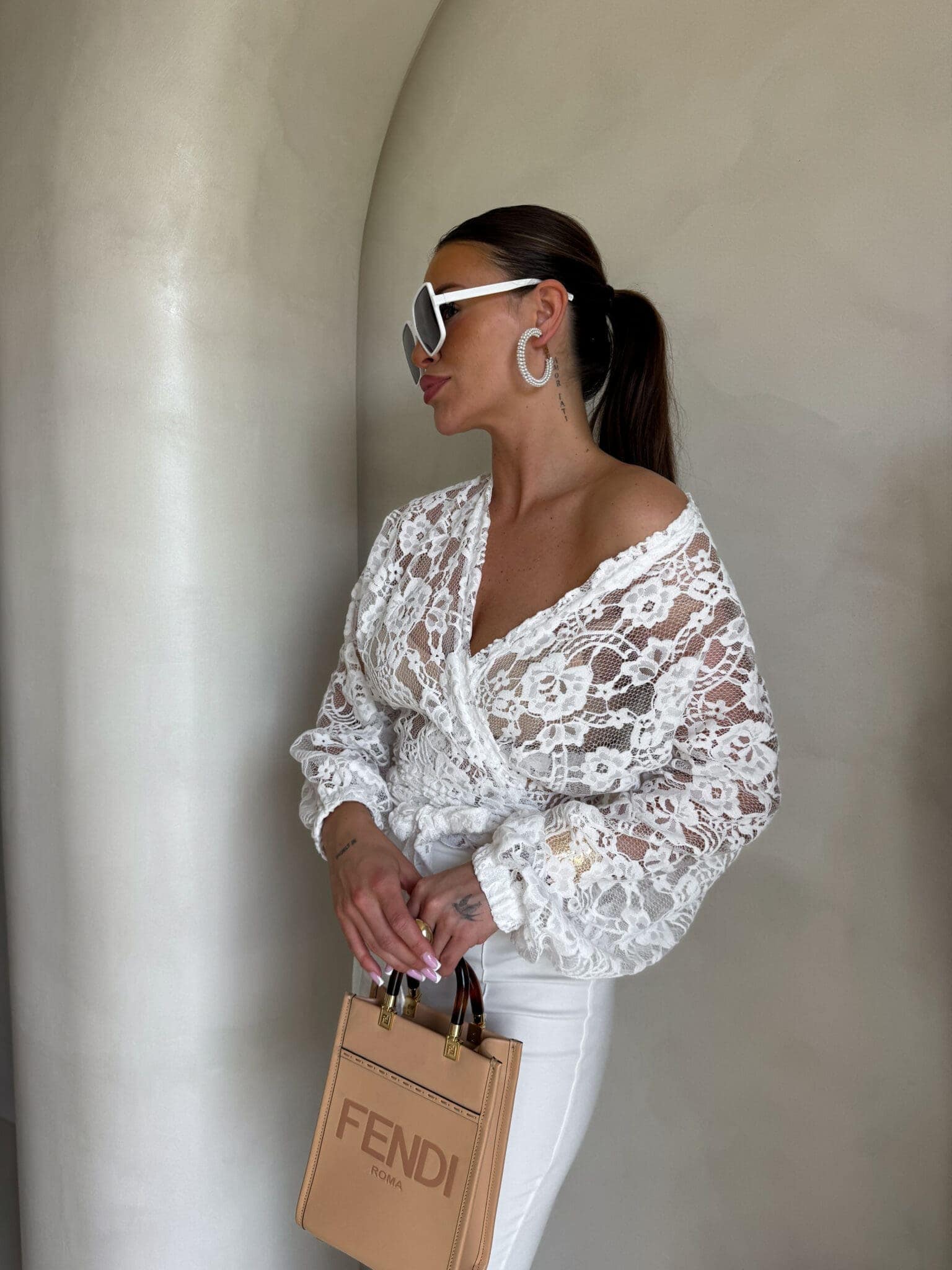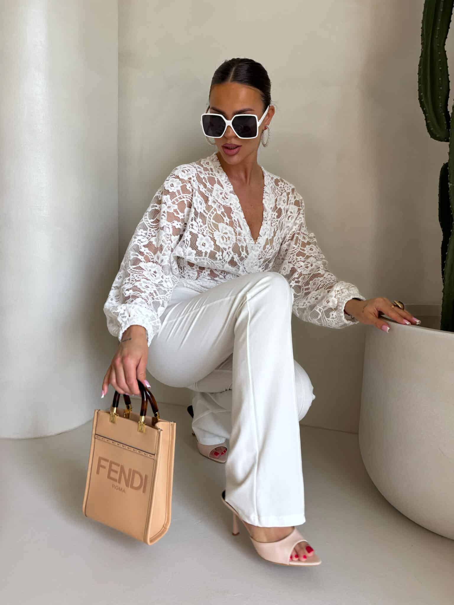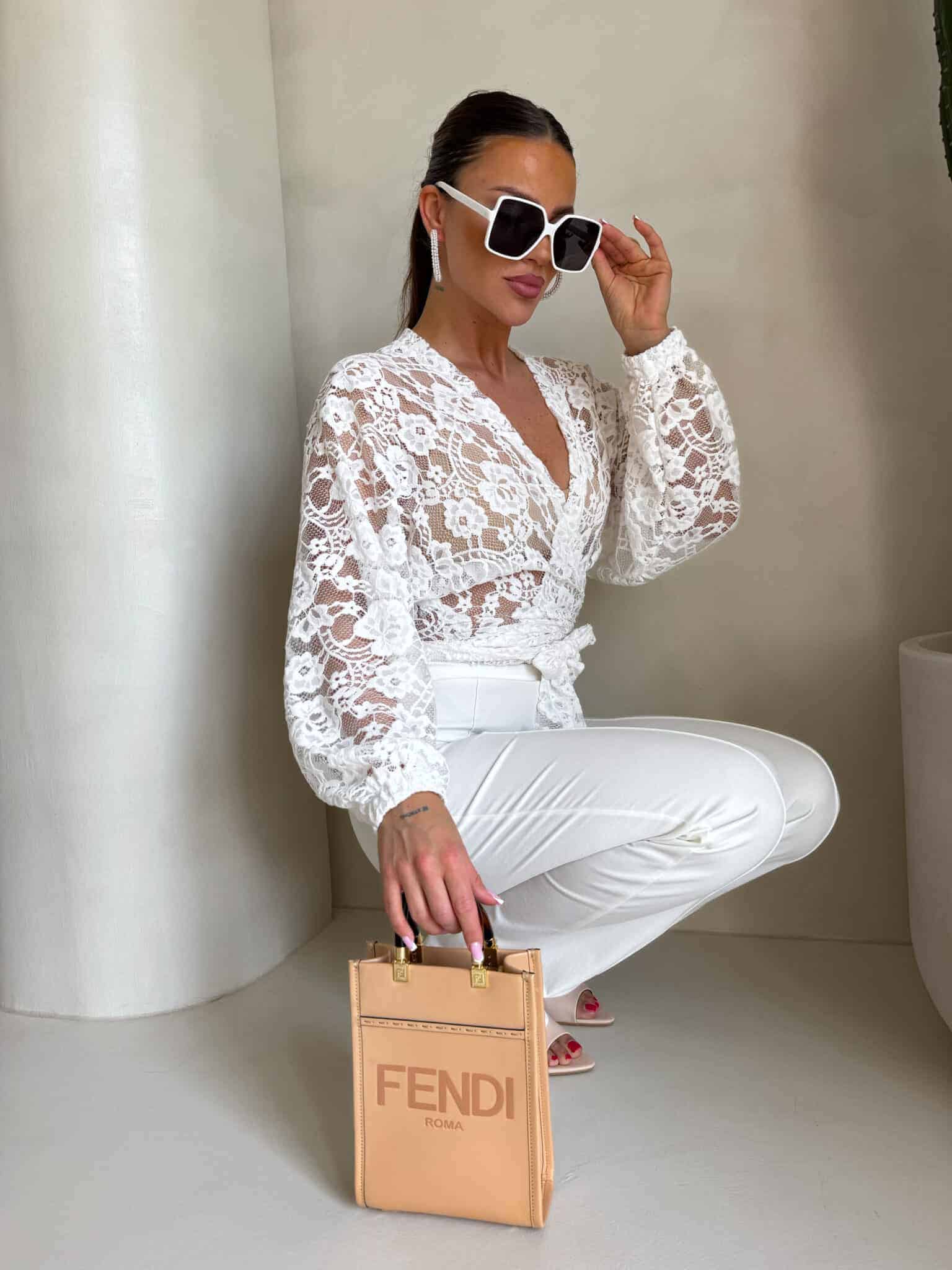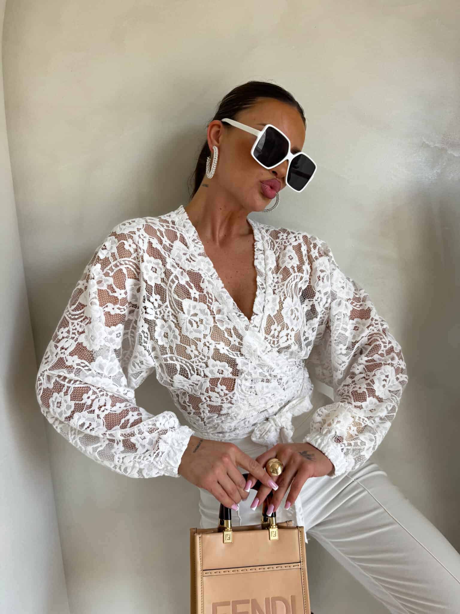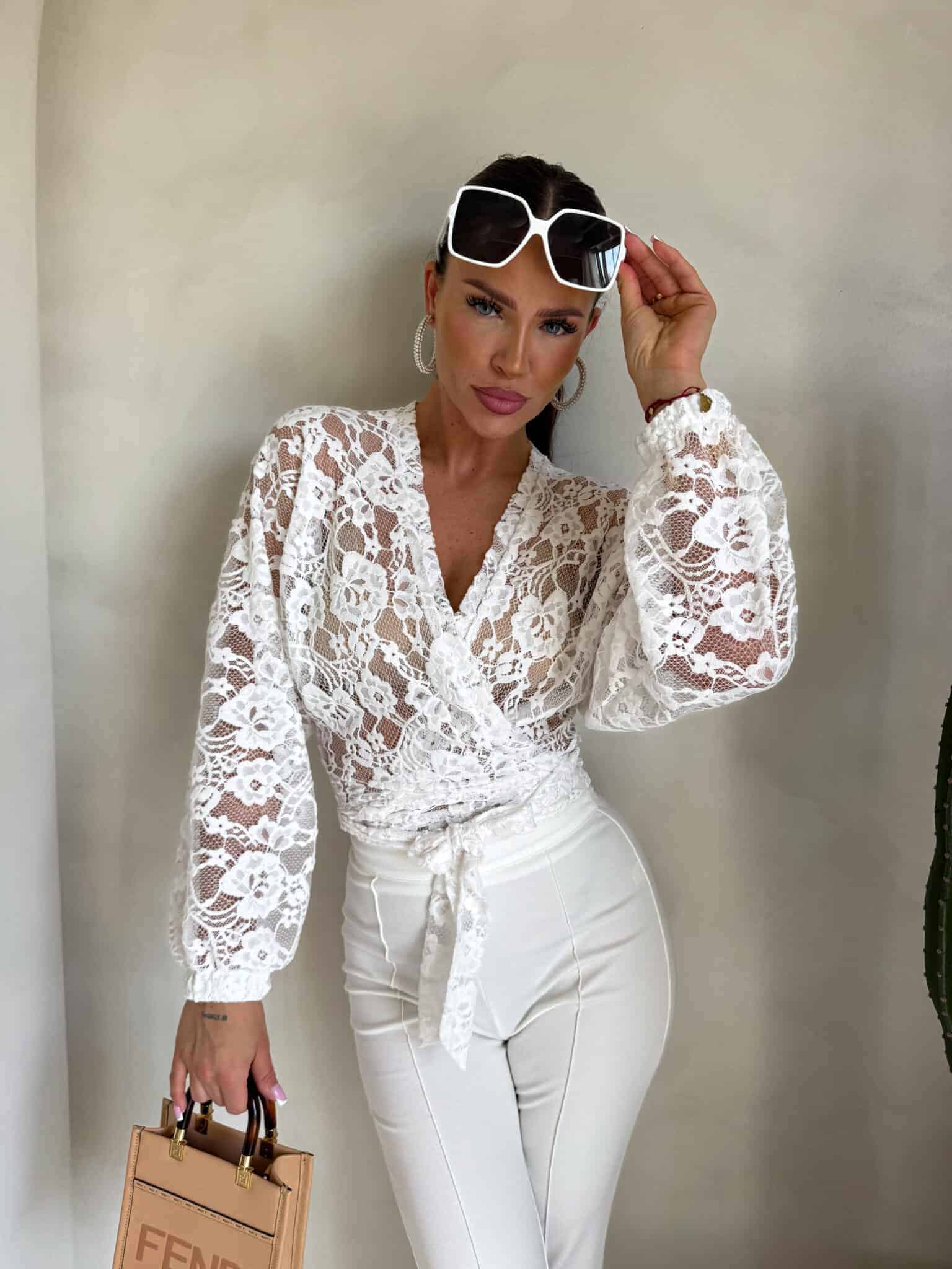 Ażurowe kimono to stylowy i lekki element garderoby, który łączy w sobie elegancję z komfortem. Wykonane z przewiewnego materiału, posiada subtelną ażurową strukturę, która nadaje mu unikalnego charakteru. Kimono jest przewiązywane, co pozwala na dopasowanie go do sylwetki oraz dodaje mu swobody w stylizacji. Można go nosić zarówno z przodu, jak i z tyłu, co daje szerokie możliwości noszenia i dostosowania do różnych stylizacji. Długi rękaw zakończony gumką sprawia, że kimono jest wygodne i dobrze trzyma się na ramionach, dodając całości eleganckiego wyglądu. Idealne do noszenia na co dzień lub na bardziej formalne okazje.