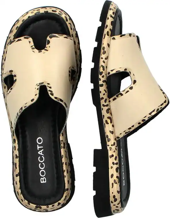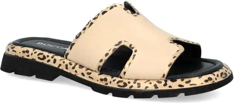 Stylowe i wygodne klapki damskie Boccato to idealna propozycja na ciepłe dni. Wykonane z wysokiej jakości skóry naturalnej, zachwycają modnym designem i komfortem użytkowania. Beżowy kolor w połączeniu z subtelnym wzorem zwierzęcym sprawia, że te klapki będą doskonałym uzupełnieniem letnich stylizacji.