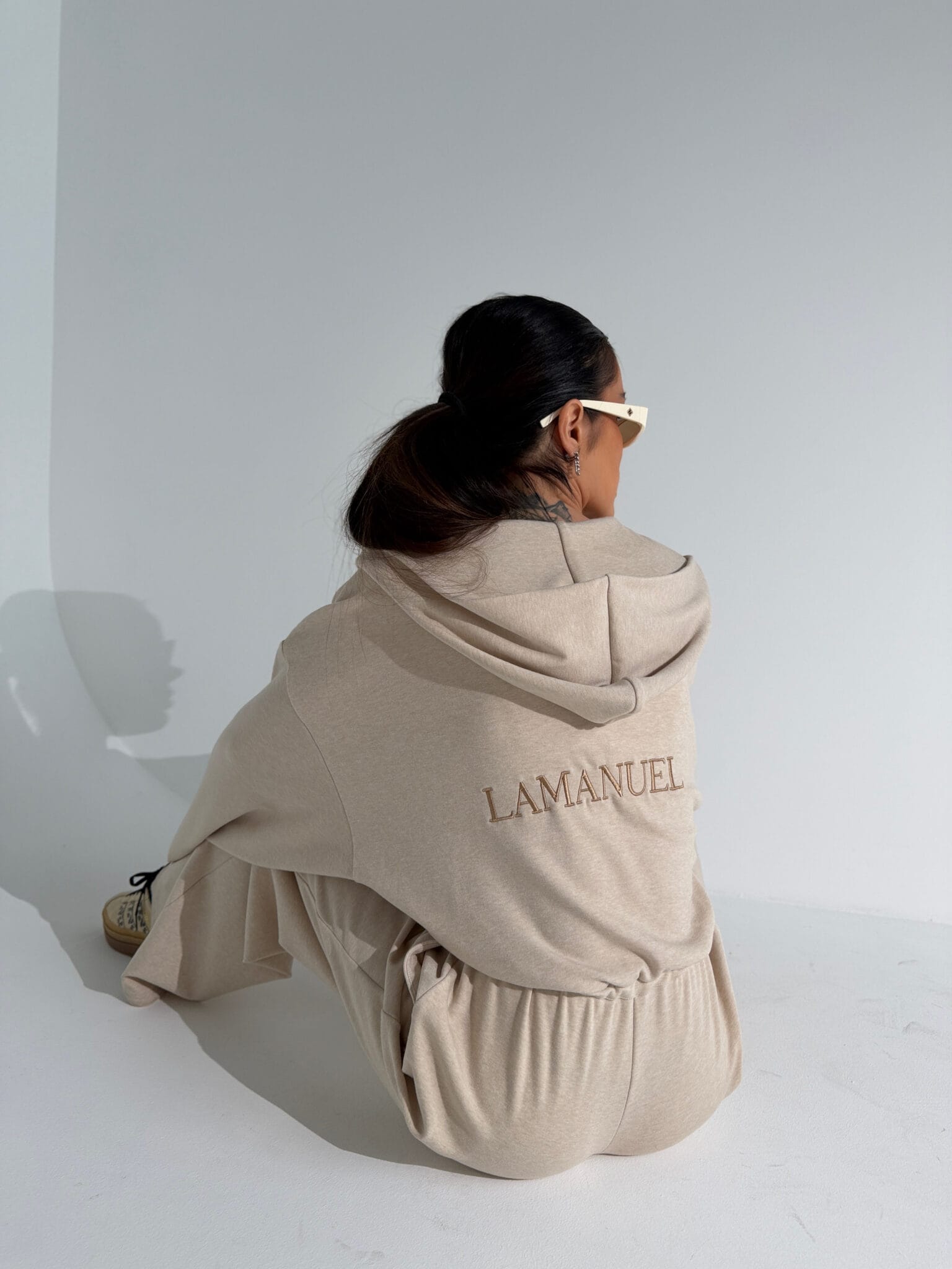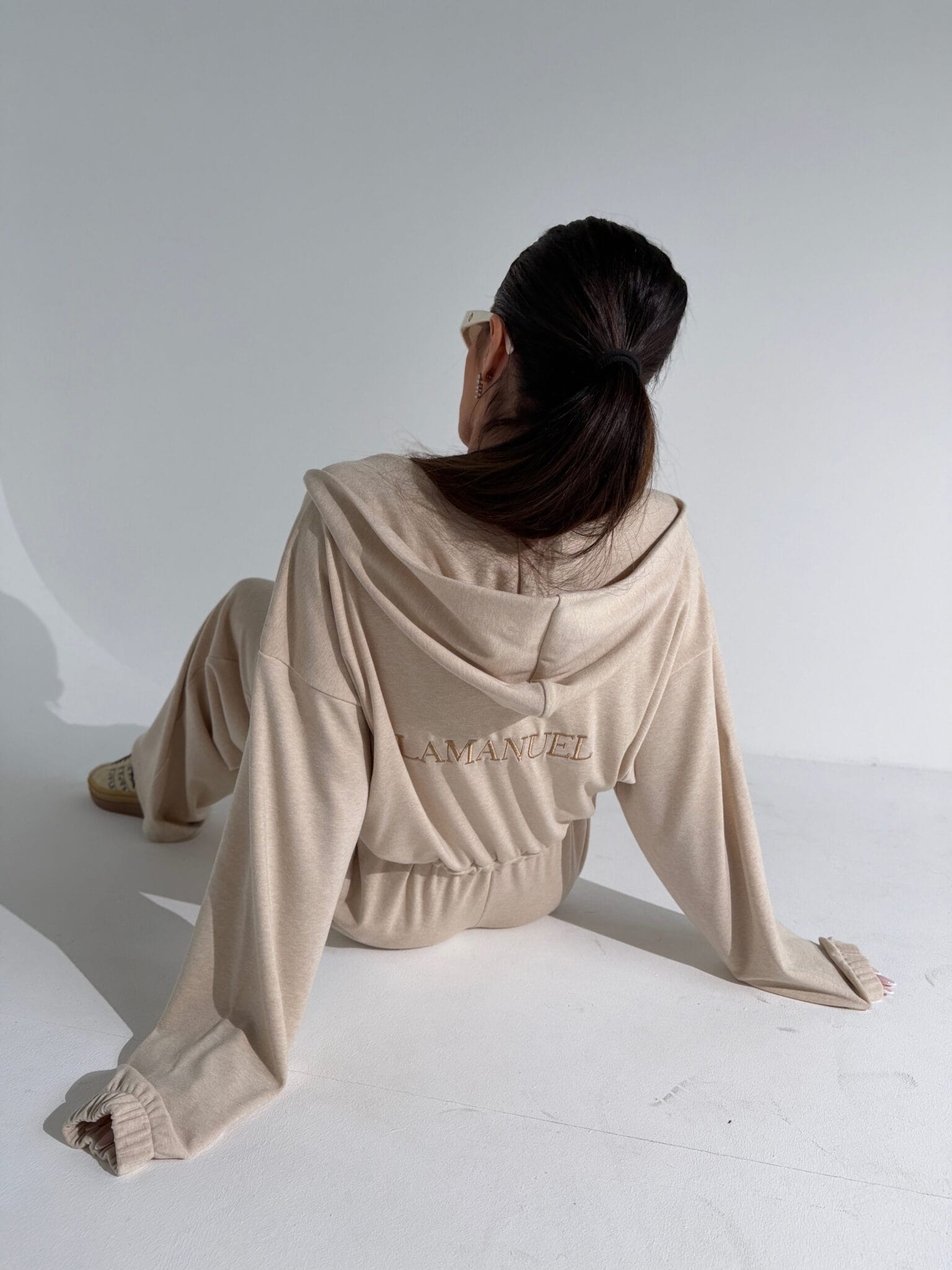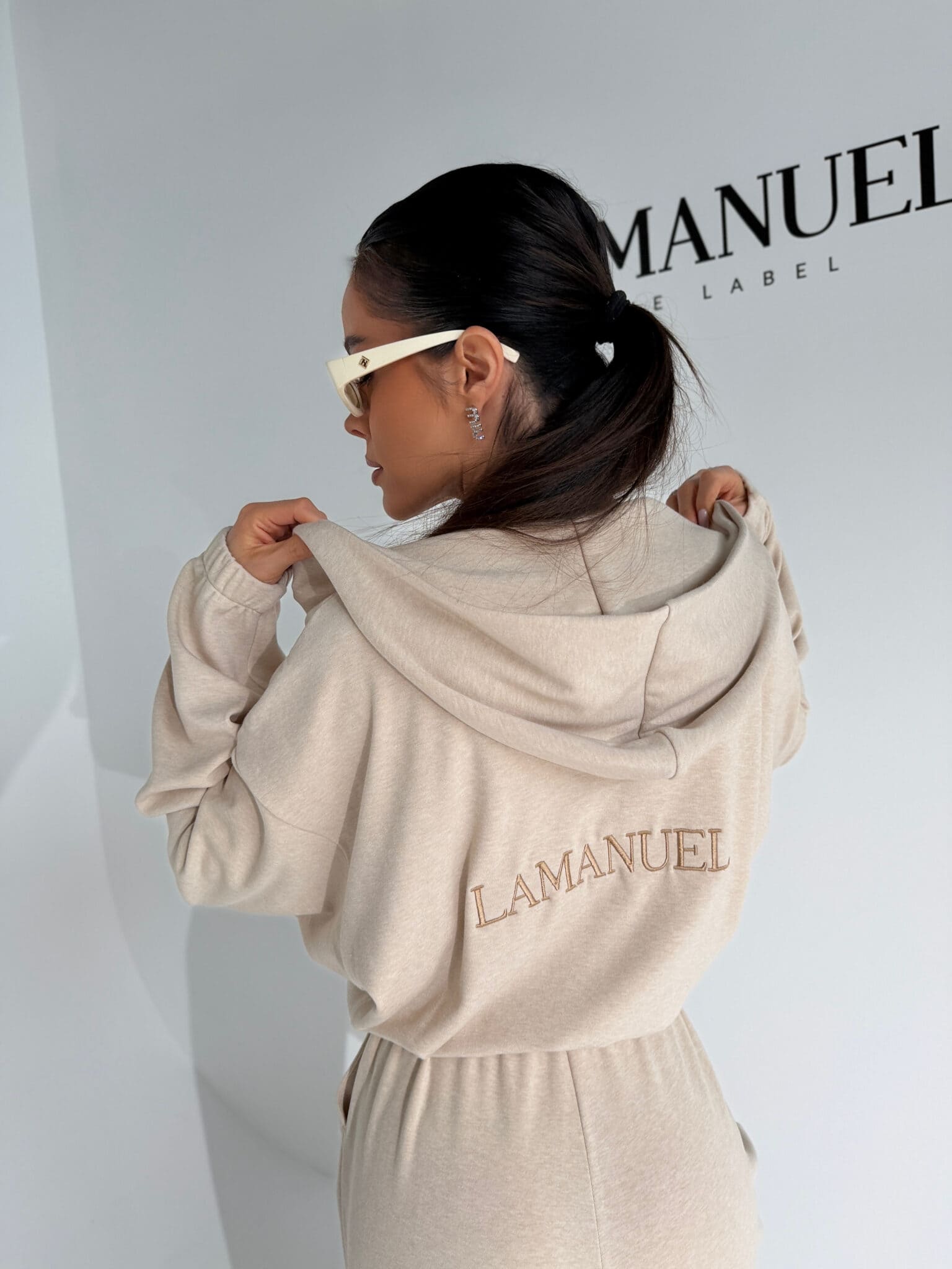 Kombinezon z przyjemnego w dotyku rayonu o lejącej, cięższej strukturze, która pięknie układa się na sylwetce i dodaje całości premium charakteru. Góra zapinana na suwak, z kapturem i długim rękawem zakończonym gumką. W talii elastyczny gumosznurek z możliwością regulacji, który podkreśla proporcje i pozwala dopasować fason do figury. Z przodu i z tyłu wyhaftowane logo lamanuel – subtelne, ale wyraziste. Świetna propozycja dla klientek szukających komfortu w dopracowanej, nowoczesnej formie.Skład: 45% rayon 28% nylon 22% poliester 5% spandex
