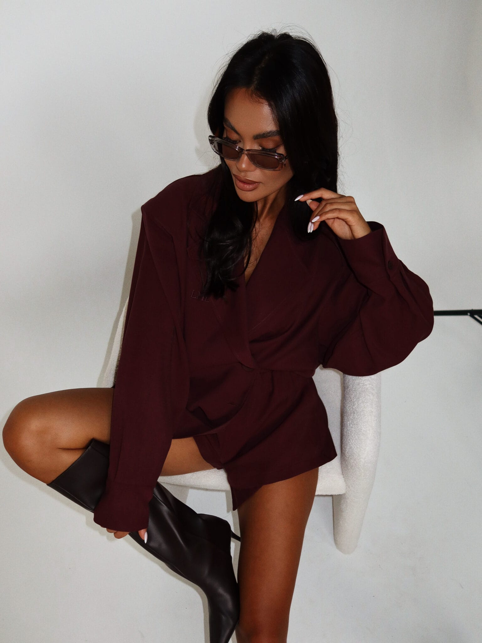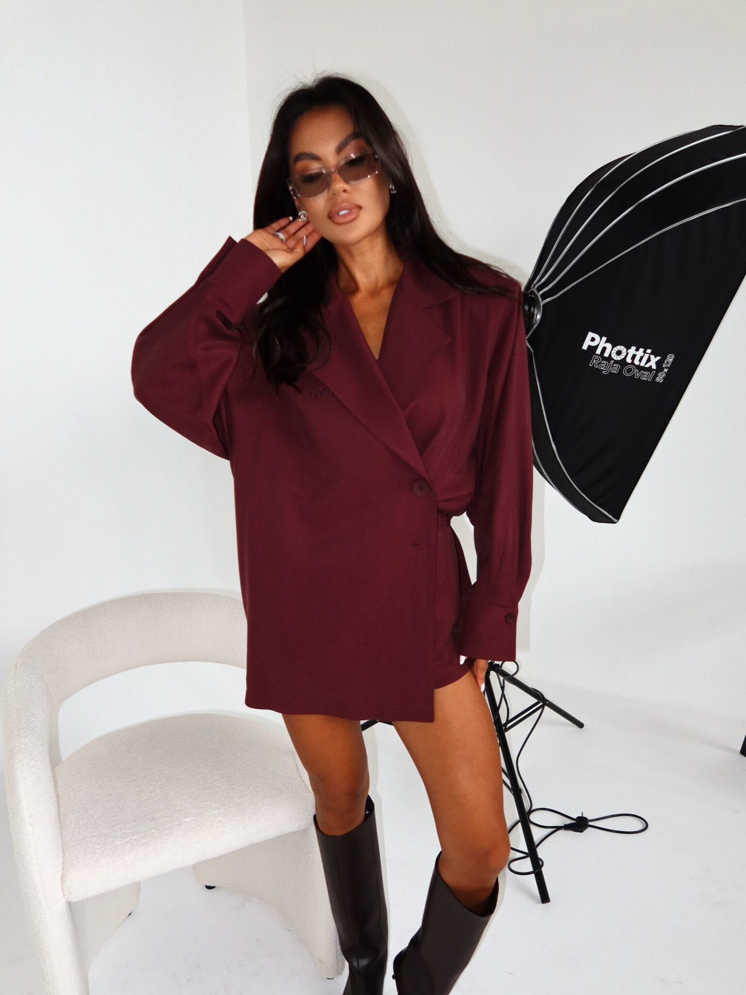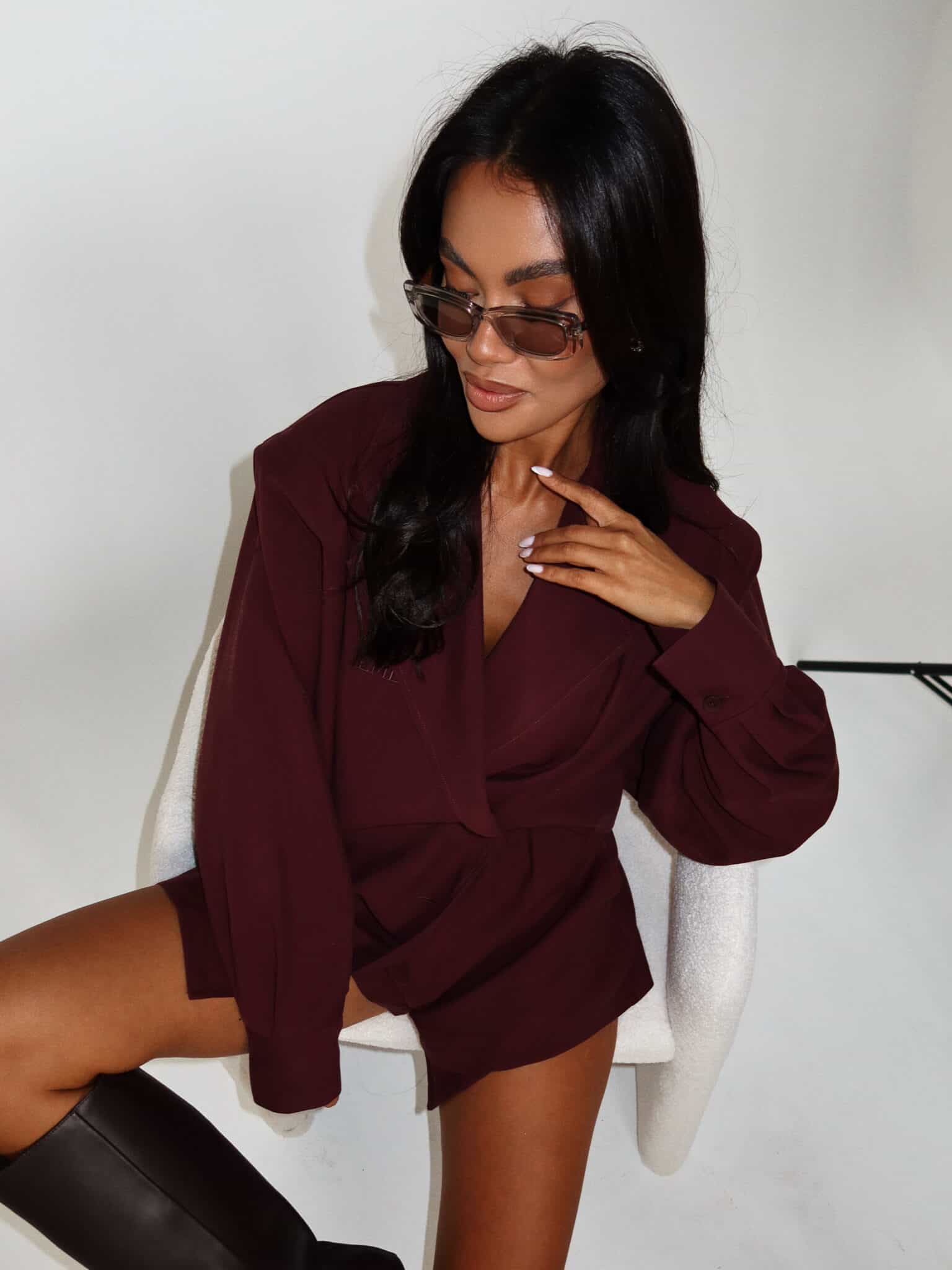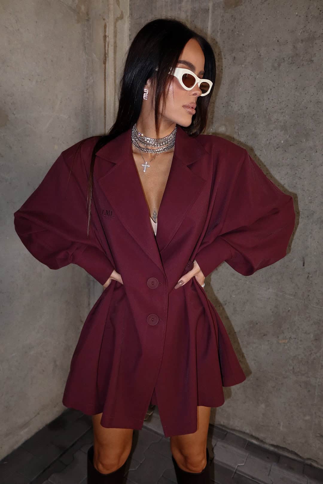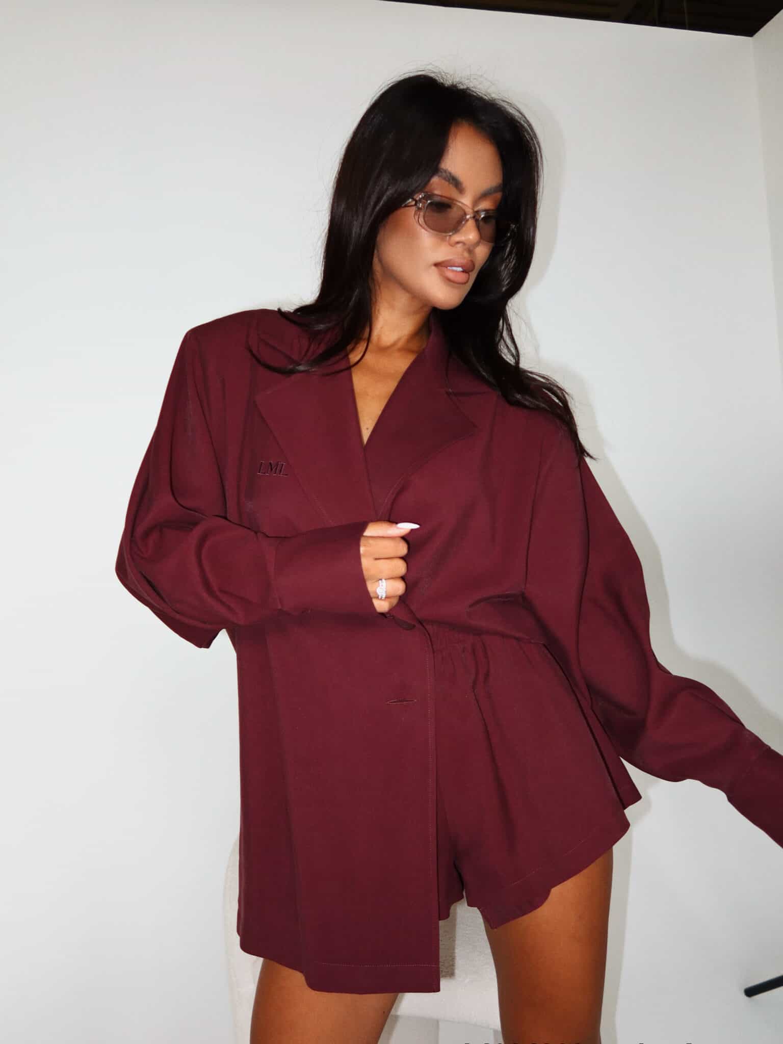 Ten komplet to esencja miejskiej elegancji z modowym pazurem. Oversize’owa koszulo-marynarka z mocno zarysowanymi ramionami została wyposażona w niestandardowe rozmieszczenie guzików, które pozwala Ci bawić się formą – możesz nosić ją luźno rozpiętą, klasycznie zapinaną na środku, albo nonszalancko na skos, tworząc efekt asymetrycznego taliowania. Do tego krótkie spodenki z wysokim stanem, które pięknie podkreślają talię i równoważą objętość góry.Skład: 90% rayon 10% poliester