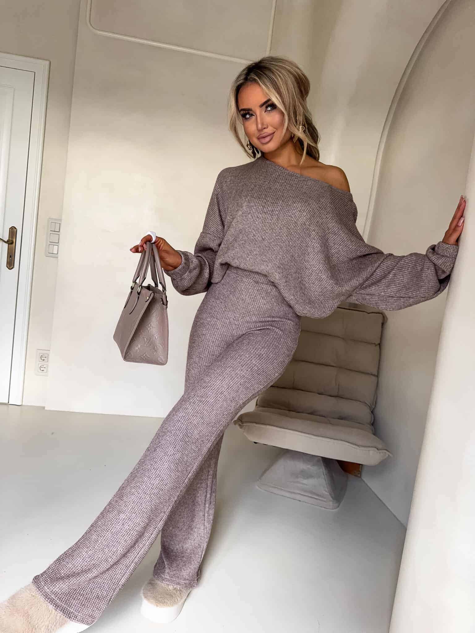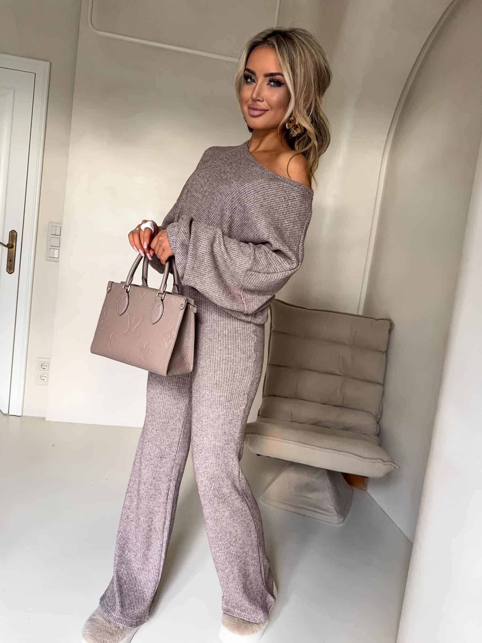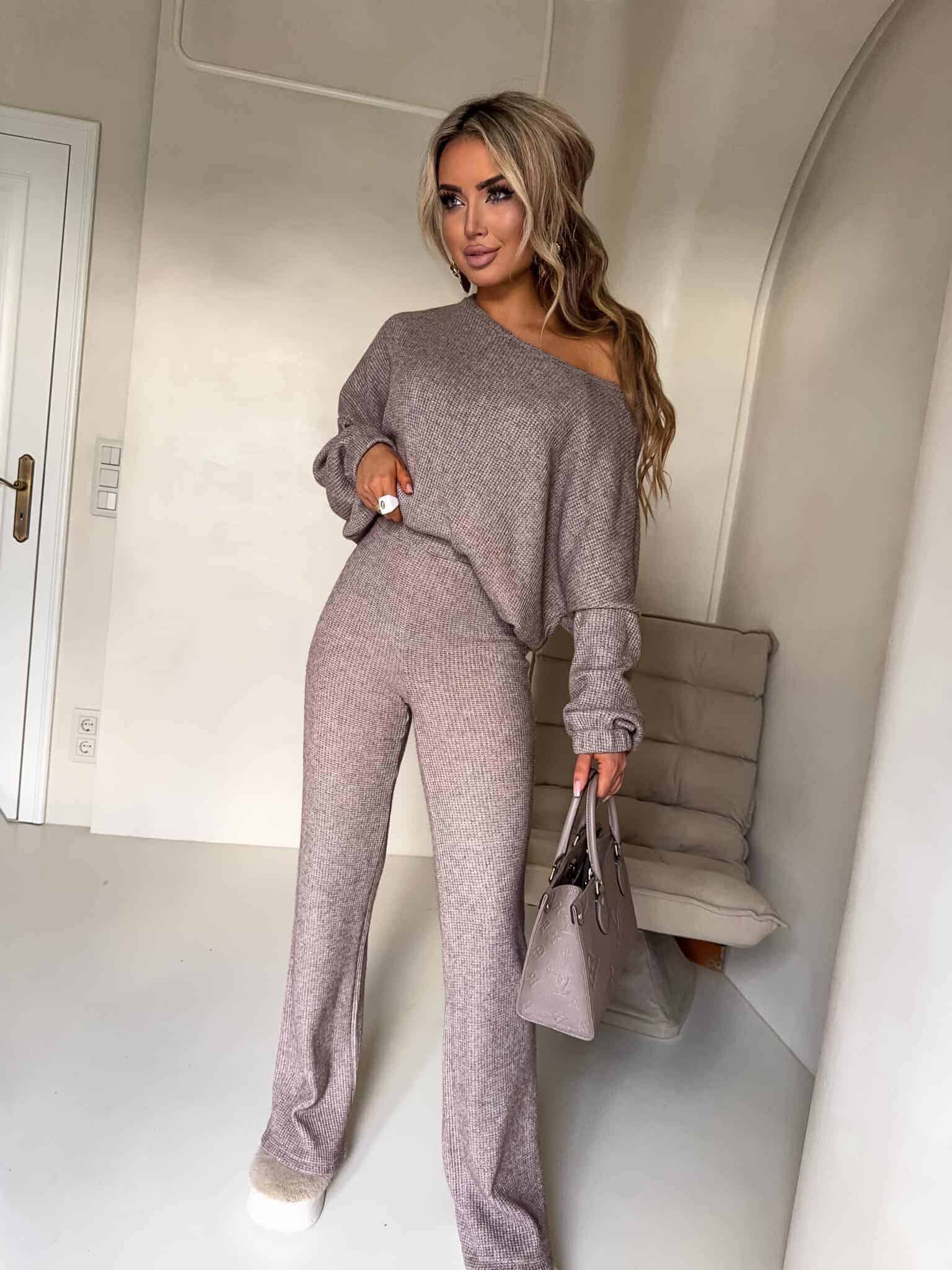 Komplet ANGEL wykonany z najwyższej jakości materiału, bardzo milutkiego. Bluza o prostym, luźnym kroju, z długim rękawem zakończonym gumą. Szerokie spodnie z gumką w pasie.