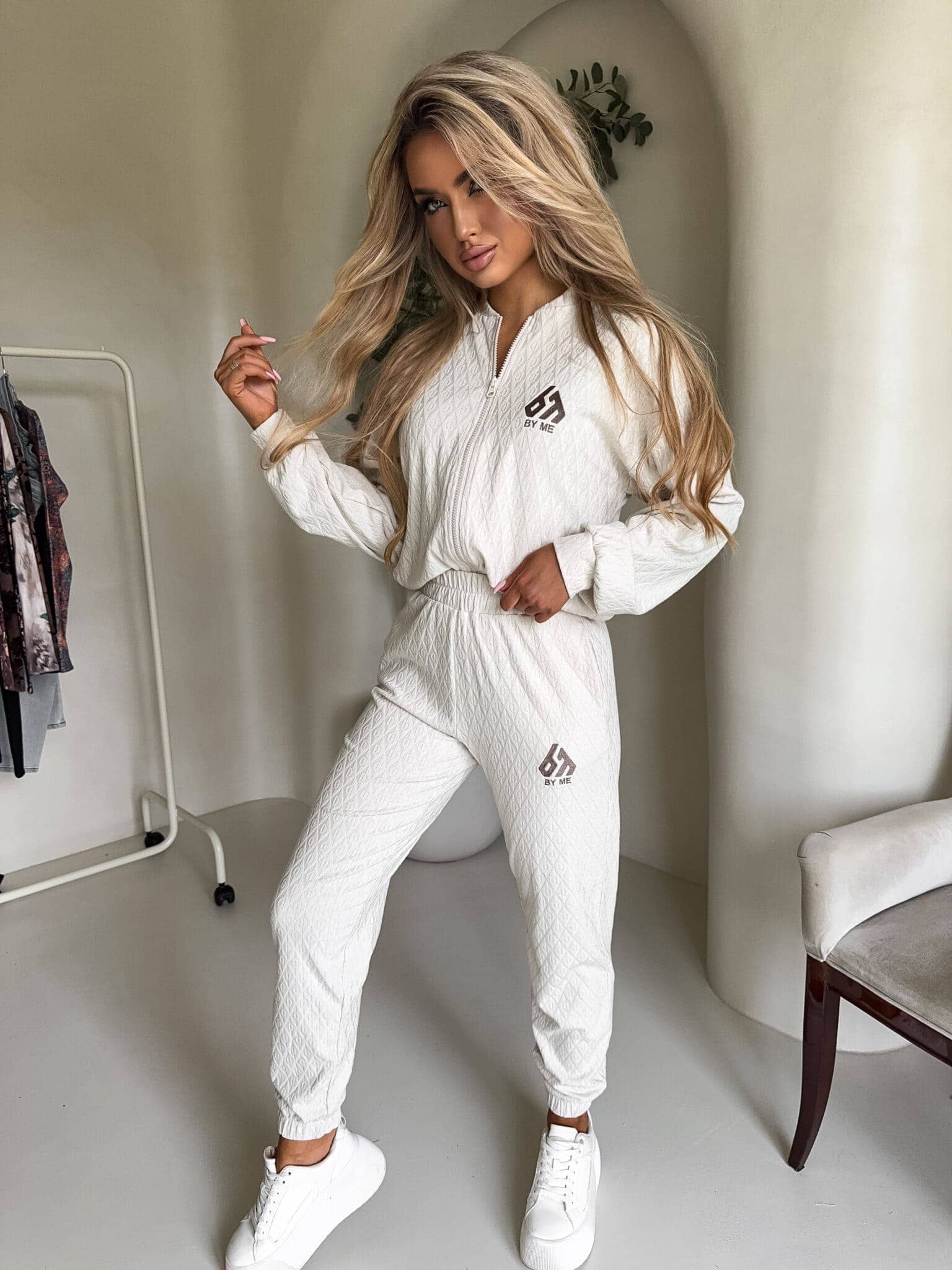 Komplet Artemis składa się z rozpinanej bluzy oraz spodni z elastyczną gumką w pasie i nogawkach, co zapewnia idealne dopasowanie i swobodę ruchów. Bluza wyposażona jest w praktyczny zamek błyskawiczny, a spodnie mają dwie funkcjonalne kieszenie, które pomieszczą niezbędne drobiazgi. Całość wyróżniają subtelne haftowane logowania.